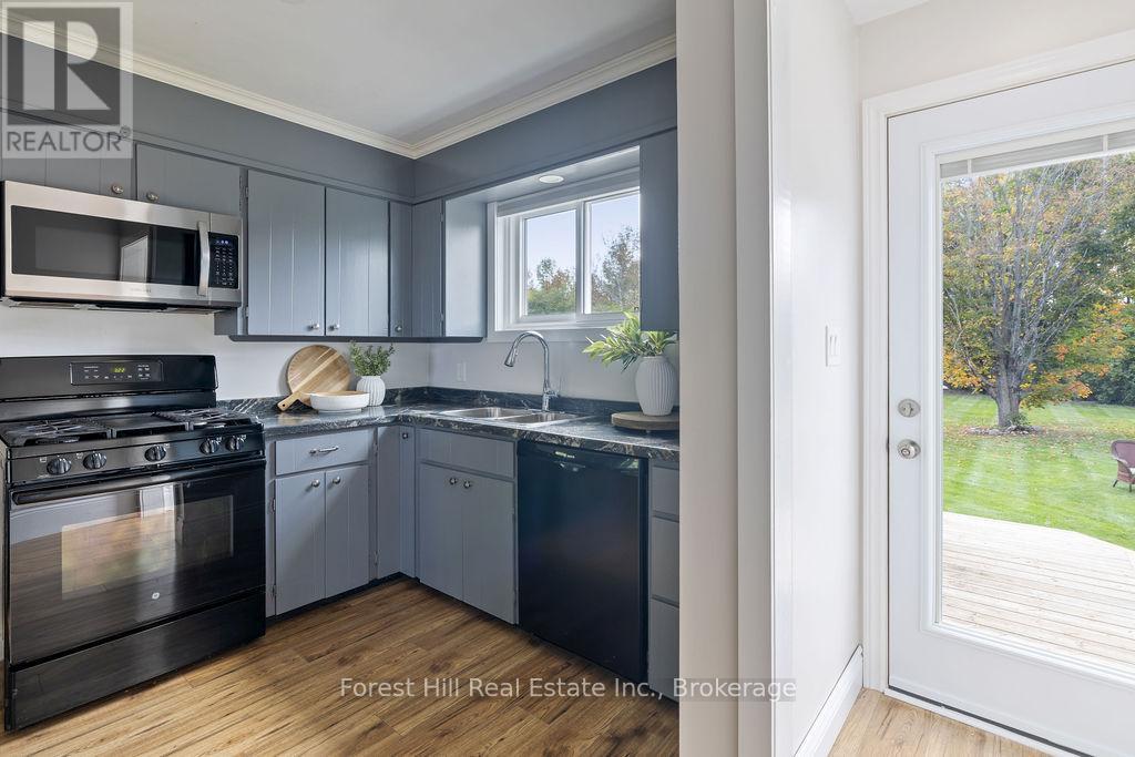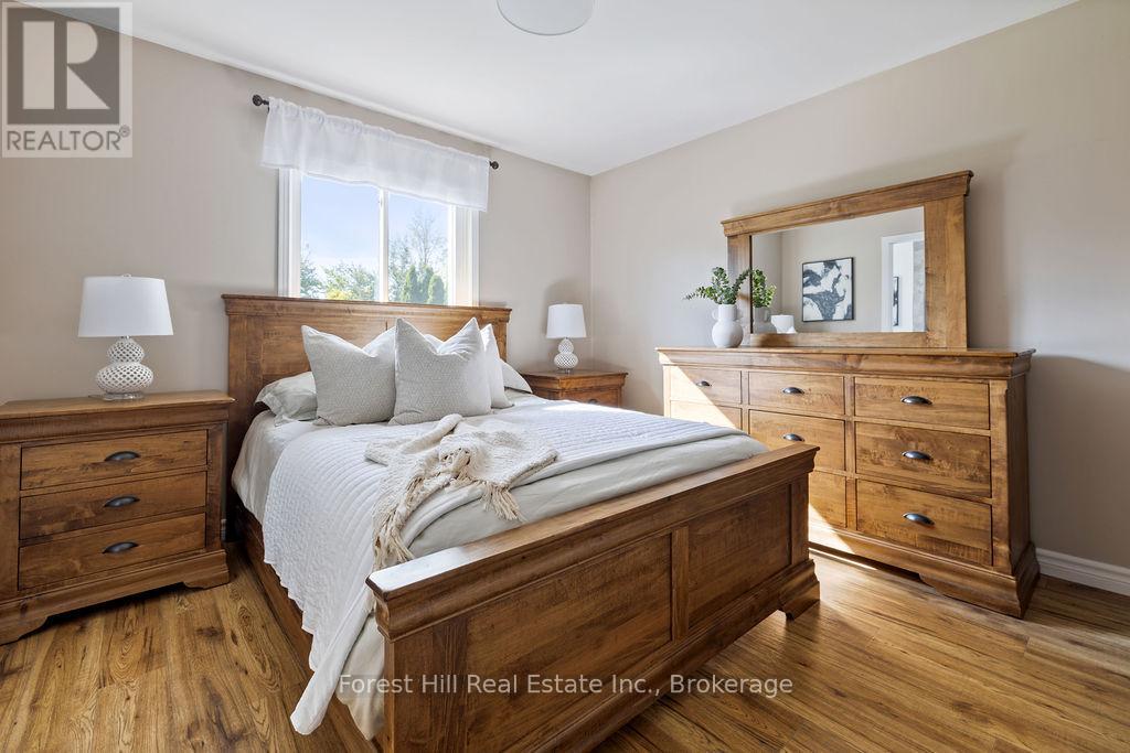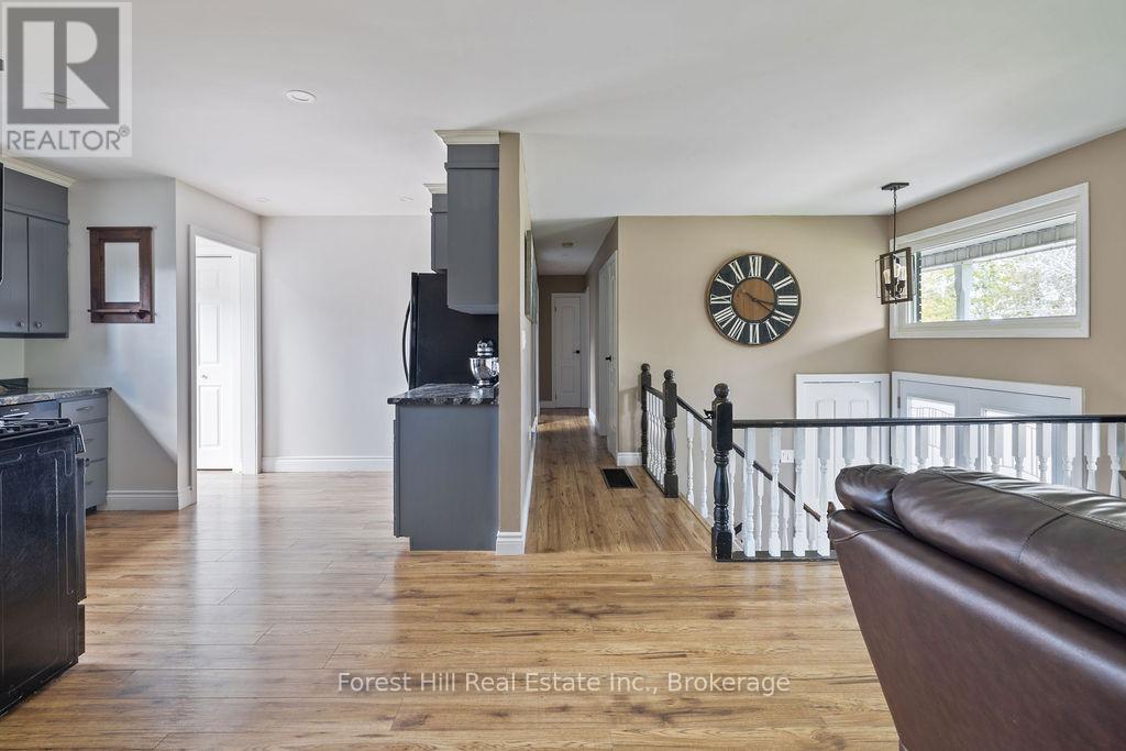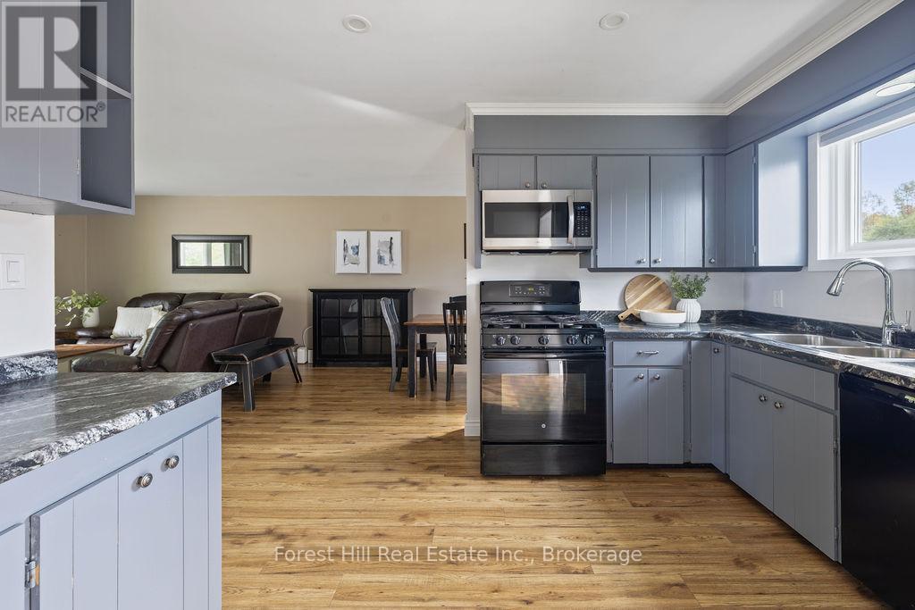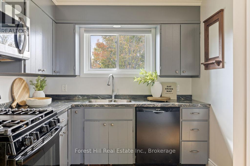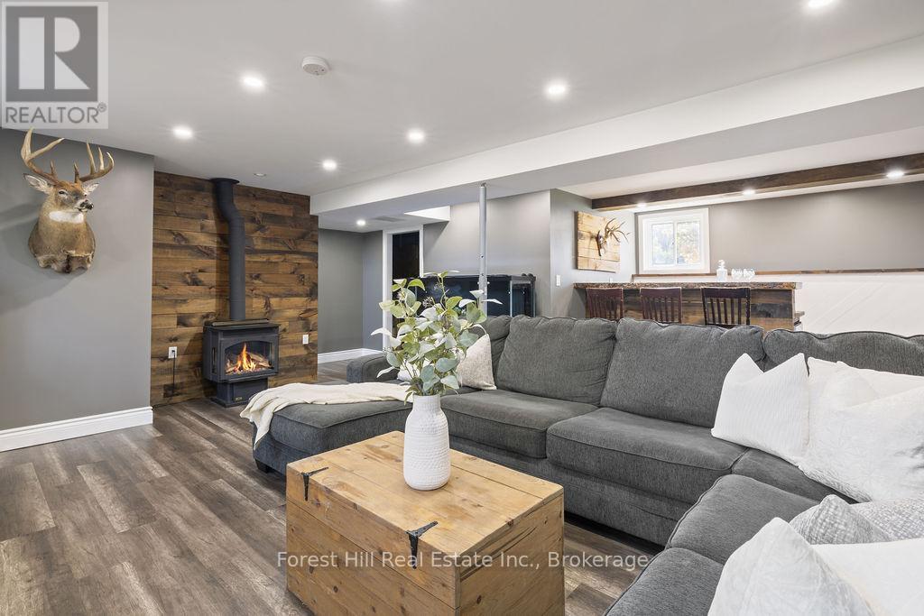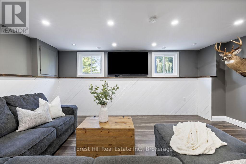 Set on a spacious, professionally landscaped country lot, this meticulously maintained 2,069 sq ft bungalow offers the best of modern comfort in a peaceful, natural setting. Thoughtful updates and quality finishes make it a home that balances style, function, and flexibility. The main floor welcomes you with an inviting layout where large windows frame garden views and natural light fills the living spaces. Three bedrooms and two fully renovated bathrooms provide comfort and convenience, while the kitchen and dining areas flow seamlessly for everyday living and entertaining. A convenient pantry with direct walkout to the backyard adds ease to both meal prep and outdoor dining. The lower level continues the appeal with high ceilings and oversized windows that bring in abundant natural light. This space features a bar, gas fire place and a generous recreation area, perfect for hosting family and friends. A fourth bedroom adds versatility for growing families or guests. Outdoors, the property shines with professionally landscaped gardens, mature trees, and stone walkways. Tiered decks with a natural gas BBQ line create the perfect setting for outdoor dining, gatherings, and relaxation. Recent updates ensure peace of mind for years to come, including a new AC unit (2025), deck and roof (2020) along with windows, doors, hot water tank, and furnace (2017). Located just minutes from Meaford's waterfront, trails, and shops, this home combines rural serenity with the convenience of town amenities. It is an ideal choice for families, downsizers, or anyone seeking a lifestyle rooted in nature and community. (id:64974)