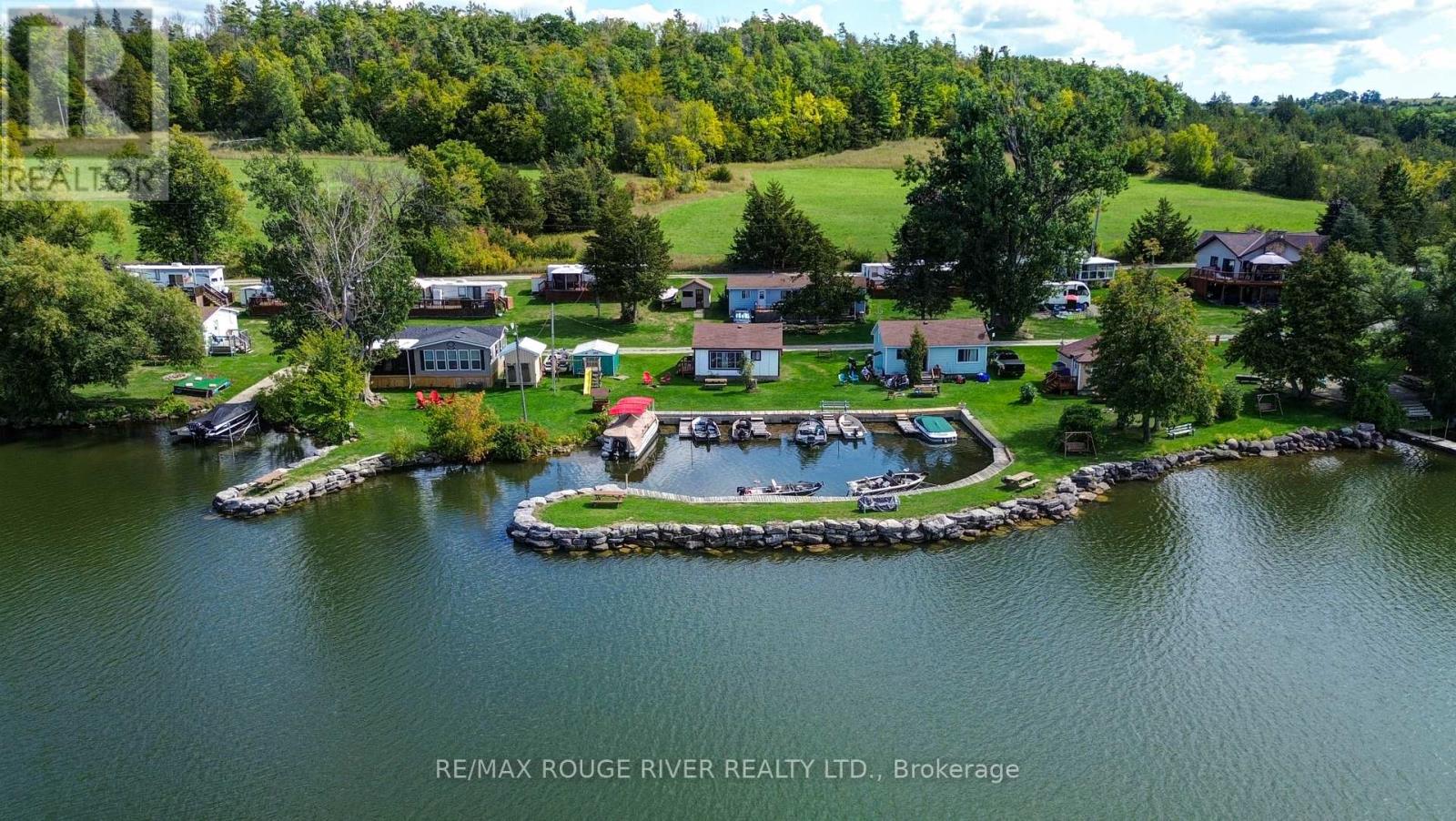 Exceptional Waterfront Resort on the picturesque Rice Lake, boasting over 500 feet of pristine waterfront and a private marina. Suni-Vale Resort offers five charming cottage rentals (1 currently used as storage), ten trailer sites (1 currently used by owner & another was vacant in 2025), a versatile garage/workshop, and a distinctive two-story detached home. The detached home, designed and built in 1978. Its main floor houses a renovated 2-bedroom, 1-bath unit with a spacious deck that provides stunning lake views. The lower level includes an office featuring a separate kitchen, lounge, and a bedroom with an ensuite. The cottages include two units with 3 bedrooms and 1 bath, and three units with 2 bedrooms and 1 bath, all offering captivating views of the lake. The resort also boasts three docking areas, a beach area perfect for swimming, a volleyball court, a fish cleaning hut, welcoming fireplaces, a launch ramp, and abundant parking space. Seize this once-in-a-lifetime opportunity to play, swim, fish, kayak, boat, and unwind on your 3.78 acres of pure bliss with a pebble beach. Whether you already reside or are moving to Northumberland County, it is an exceptional place to call home and run a resort business, featuring captivating rolling hills, and scenic forested trails ideal for hiking, ATV riding, snowmobiling, and cross-country skiing. All this conveniently located just an hour away from Toronto. This resort offers plenty of future potential with the current owner residing in the detached dwelling, allowing for a future rental site and currently only running a 150 season from May long weekend to Thanksgiving & not during the winter months & no online presence, such as website, social media or short term rental sites, offers plenty of opportunity to expand this hidden gem. (id:64974)