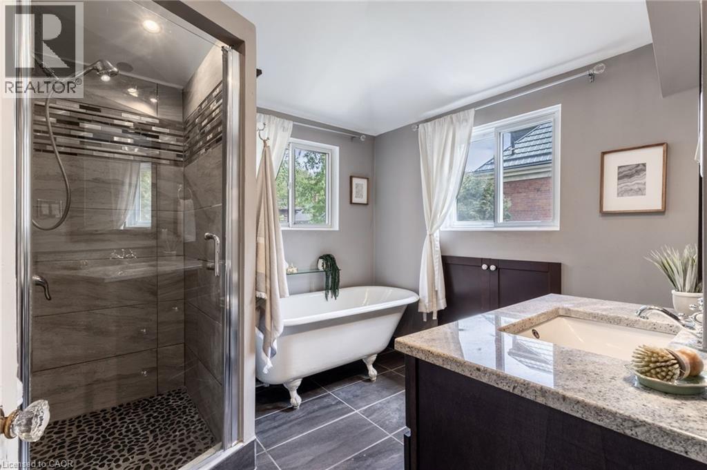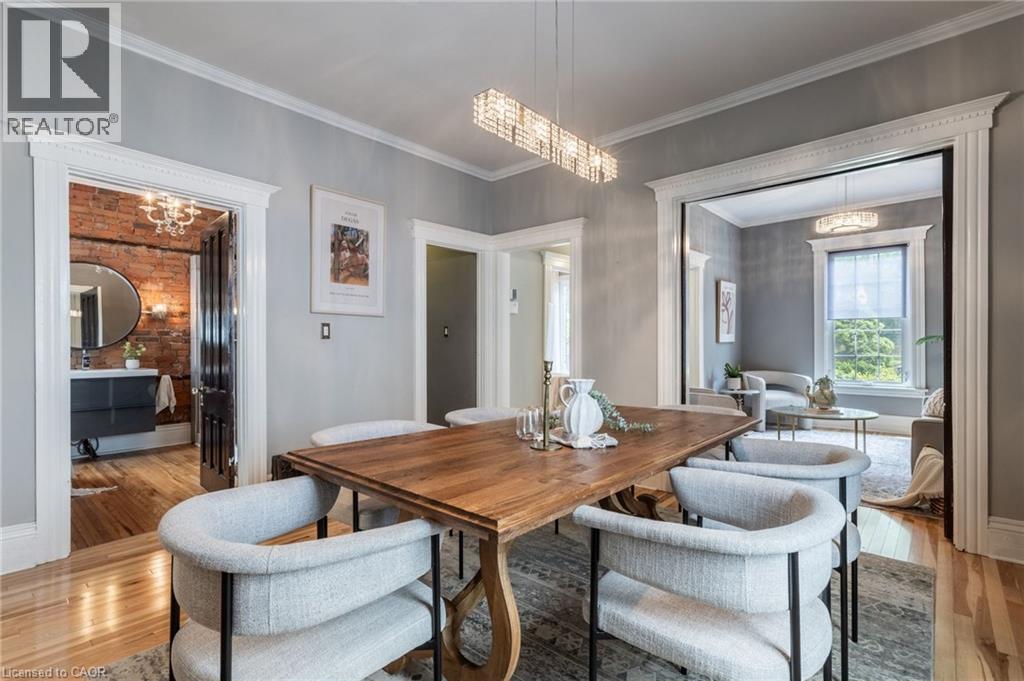 Welcome to 198 Duke Street, a standout property in Hamilton’s sought-after Durand neighbourhood. Set on an impressive 161-foot deep lot, this gorgeous home offers a private, cottage-like retreat while keeping you at the center of vibrant city life. With generous outdoor space, mature landscaping, and classic homes nearby, it combines the comfort of a sizable lot with the energy and convenience of the city, lively streets, and everything the neighbourhood has to offer. The expansive backyard is truly exceptional for a central location, offering a lush oasis with mature trees, a tranquil water feature, and a spacious wood deck. This generous outdoor space provides flexibility rarely found downtown, including rear parking for two vehicles, a new sliding gate, and plenty of room to add a garage or ADU. Inside, this charming 1.5-storey century home balances timeless character with modern comfort, showcasing exposed brick, high baseboards, an ornate fireplace mantle, pocket doors, and a mix of hickory and oak flooring. Contemporary updates include refreshed cabinetry, stainless steel appliances, stylish tilework, glass-enclosed showers, and upgraded lighting. The bright main floor features a welcoming living and dining area, a bedroom/office with a large closet, a spacious kitchen with ample storage, a large 4-piece bathroom, and laundry. The second level offers two additional bedrooms with generous closets and a second 4-piece bathroom. Leave the car at home in this walkable neighbourhood! With enhanced public transit options, close proximity to shops and services, and the energy of an active urban setting — all while enjoying the privacy of an unusually deep lot. Walk to Locke Street, Hess Village, GO Transit, St. Joseph’s Hospital, parks, and more. A rare opportunity to enjoy a spacious lot, central location, and the best of urban living in one of Hamilton’s most desirable neighbourhoods! (id:64974)