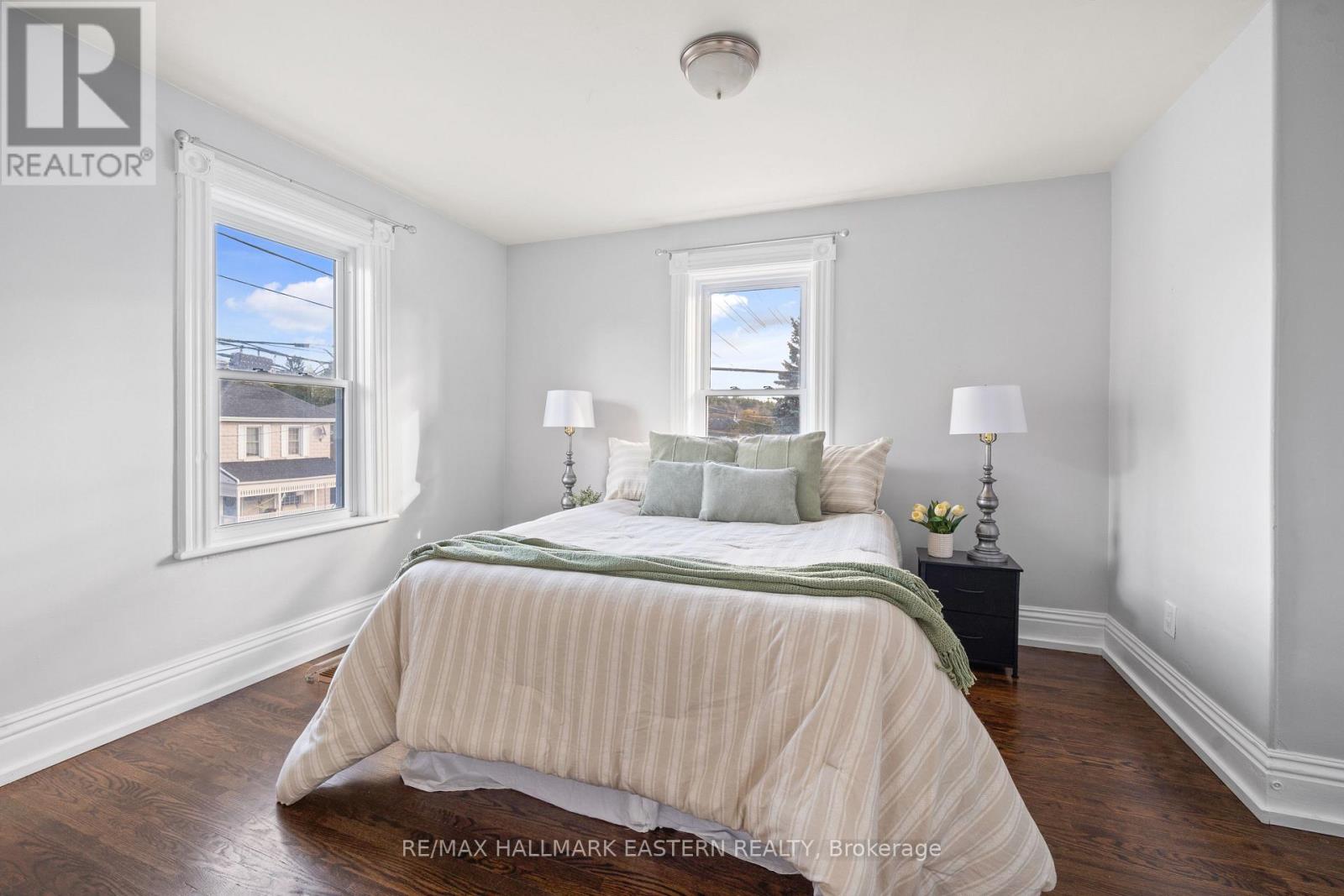 This charming 2-bedroom, 2-storey all-brick century home in Peterborough's desirable East City blends timeless character with everyday comfort. Ideal for young couples, single parents, commuters, or remote professionals, it offers an affordable lifestyle while Peterborough has easy access to Highway 407, you can enjoy the charm and a connected community. The bright main level features a functional layout filled with natural light, while upstairs offers two well sized bedrooms. The welcoming covered front porch overlooks the garden, providing a peaceful place to relax privately or greet neighbours as they pass by. Gardeners will love the large south facing fenced yard with expansive green space and well established, low maintenance plantings, including roses, a magnolia tree, lilacs, and hydrangeas. This sun-filled outdoor space is perfect for gardening, entertaining, or hosting summer BBQs, with flexibility for future additions. The kitchen opens to a cozy back deck, ideal for enjoying your morning coffee outdoors. Located just minutes from Ashburham Memorial Park, Harold Town Conservation Area, and the Rotary Greenway Trail, outdoor enthusiasts will enjoy excellent access to hiking and cycling. Conveniently close to Trent University, Trent-Severn Waterway, and a short drive to the Kawartha Lakes, this home offers the perfect balance of nature, convenience, and small-town living. Floor plans and video tours are available for your convenience through the BROCHURE button on realtor.ca. Book your private viewing today! (id:64974)