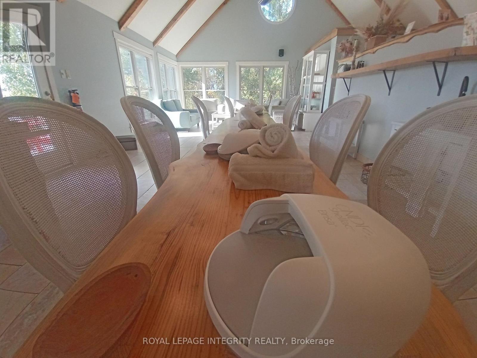 A stunning, fully equipped day spa facility is available for sublease on the beautiful Strathmere events venue estate in South Ottawa. Perfect for a growing beauty business or an entrepreneur seeking a ready-to-operate space with no start-up costs, this turn-key opportunity offers everything needed to begin operating immediately. The 1,700 sq. ft. second-floor spa features four private treatment rooms, a private washroom, a storage area, and a bright open-concept retail space with vaulted ceilings. All existing furniture and equipment are included at no additional cost, including manicure and pedicure stations, massage tables, and aesthetics equipment. A cozy client lounge area and private outdoor patio provide a relaxing atmosphere, while ample free on-site parking ensures convenience for guests. Set within a tranquil country estate just minutes from the city, the location also offers access to a charming café and day spa on the ground floor, where clients can enjoy food and refreshments before or after their treatments. The sublease runs until the end of 2028 with an option to extend, at a monthly rent of $10,000 inclusive of utilities and operating costs, plus HST. This is a rare and truly turn-key spa opportunity in one of Ottawa's most picturesque and desirable settings. (id:64974)