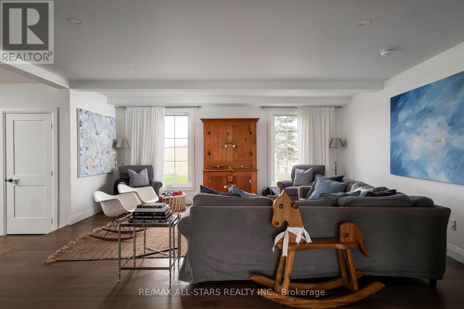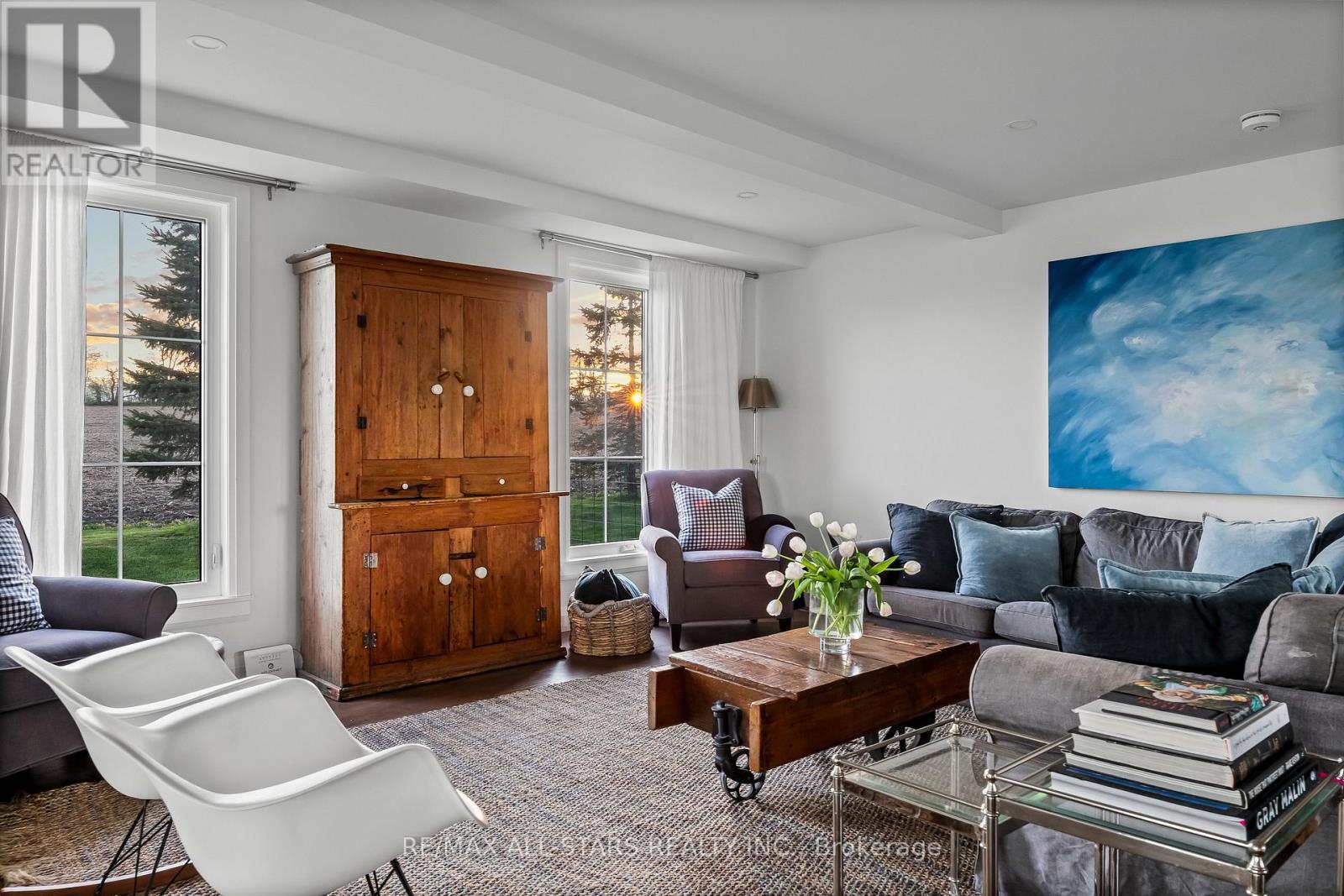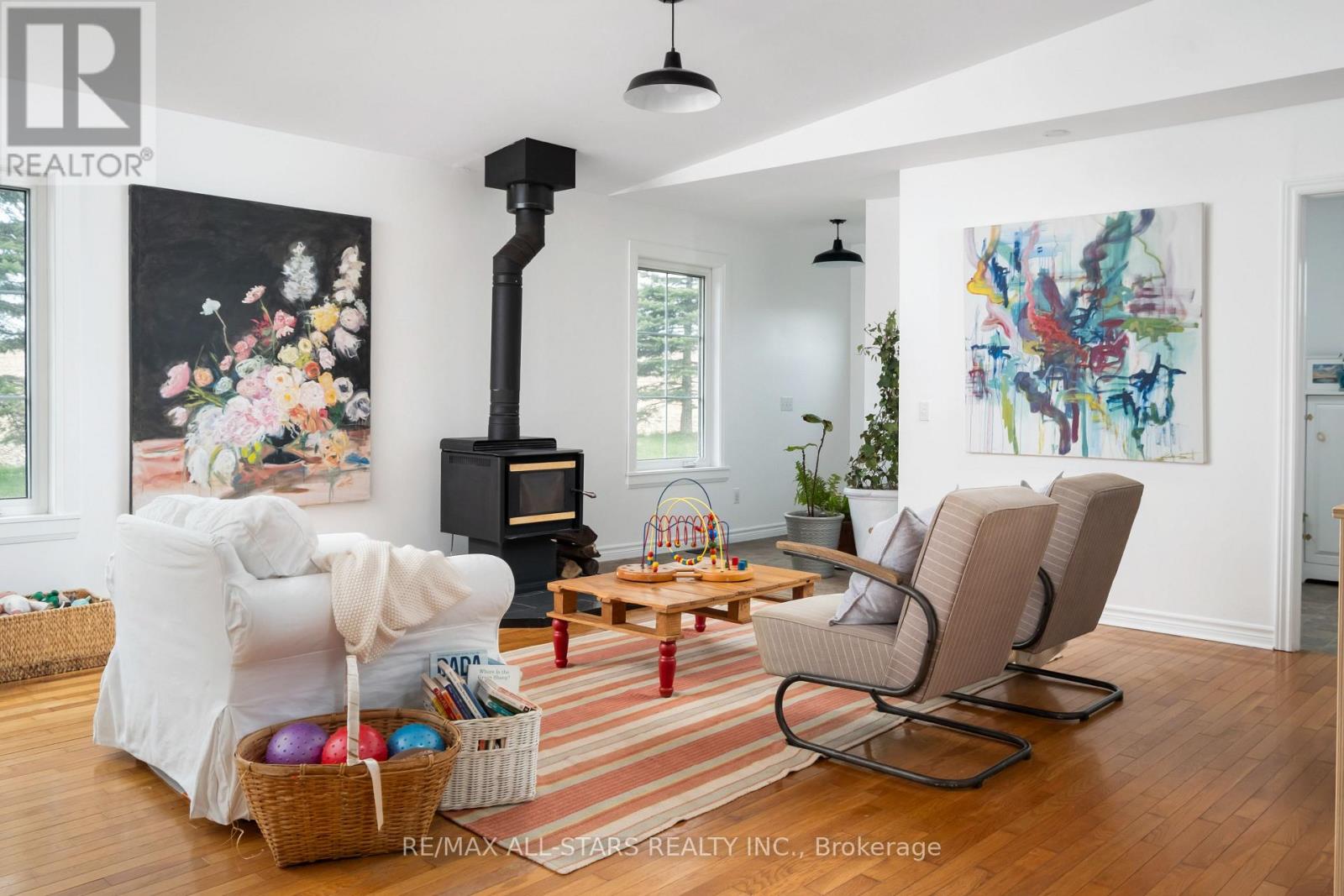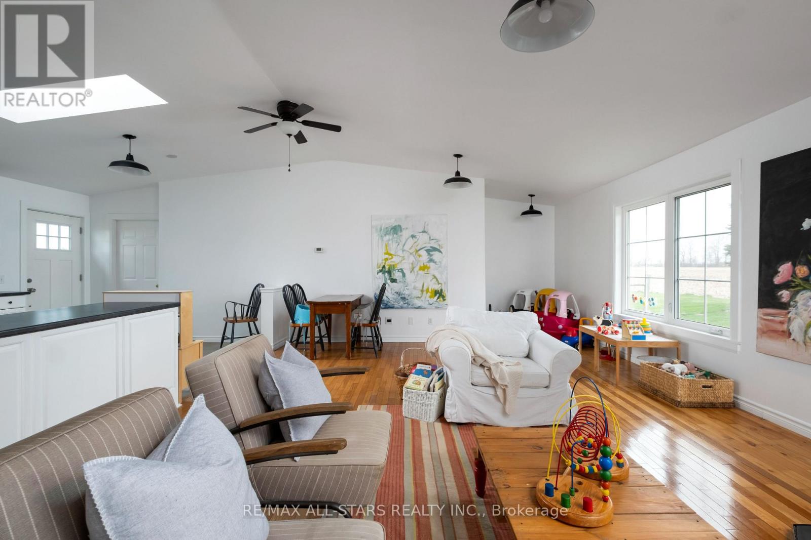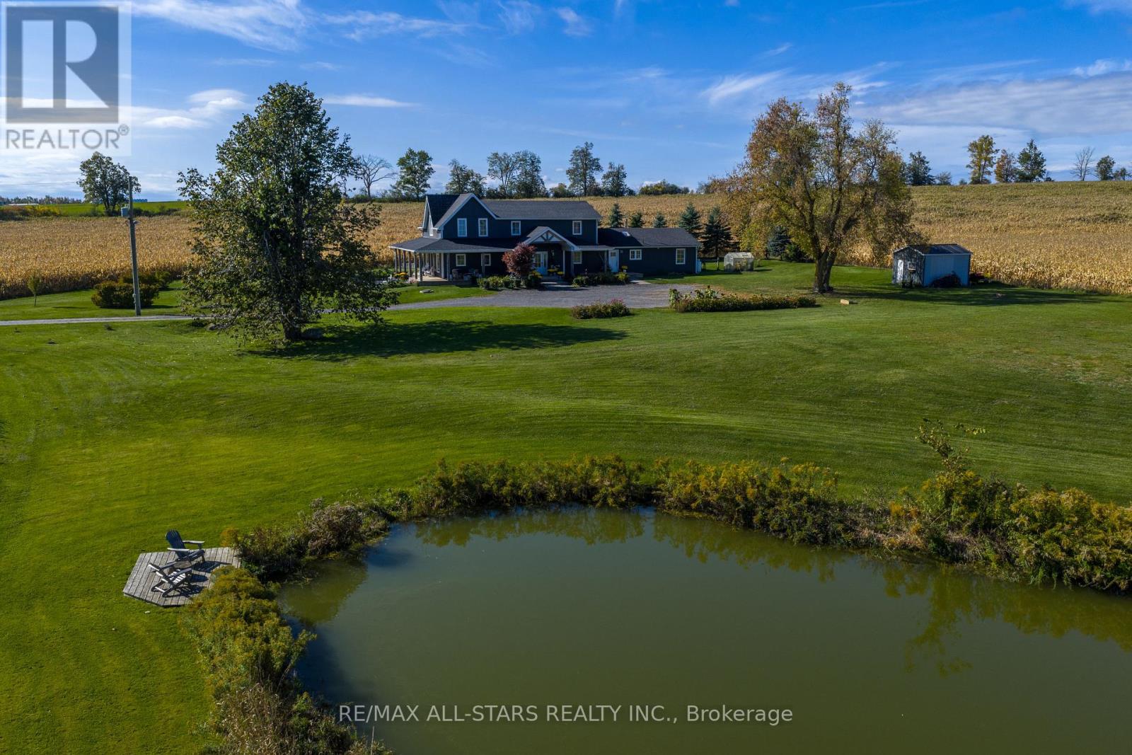 Beautifully Renovated Farmhouse on 1.91 Acres Featuring a Self-Contained Apartment and Sweeping Countryside Views! Set down a romantic laneway & completely hidden in the summer months, this modern farmhouse feels like a discovered treasure-quiet, relaxing, & immersed in views of cornfields, a neighbouring pond & distant barns. Every room is bathed in white, highlighting the rich wide-plank hardwood floors & the home's elevated farmhouse design. The kitchen features stainless steel appliances & quartz counters, while all bathrooms are beautifully finished with quality tile & quartz vanities. With 3,620 S.F. of total living space, the multigenerational layout offers a highly functional footprint for family living andentertaining. A heated-tile mudroom welcomes you in, leading to a secondary, fully separate mudroom-perfect for kids' lockers, sports gear, or a dog-wash room. From here, one expansive living space flows to the open-concept dining area & kitchen, with a wall of windows overlooking a picturesque pond, wraparound porch & perennial gardens. Multiple main-floor walkouts & oversized windows draw in natural light & frame a panoramic sweep of farmland that gently slopes toward a grove of trees. It's the kind of setting where the view becomes the entertainment-birds crossing the sky & the weather shifting across open fields. A cozy den adds versatility, functioning beautifully as a library or home office. Upstairs, 3 bright bedrooms share a spacious 4-pc bathroom, while the primary suite offers its own serene 3-pc bath & walk-in closet. Thoughtfully designed for flexibility, the home also includes a 1-bed apartment with full unfinished basement. As family needs evolve, this layout adapts with ease-ideal for grown kids, aging parents, or supplemental rental income. A peaceful backdrop, a beautifully finished interior & a layout that invites gathering and connection-this is a rare country property that blends modern comfort with the timeless beauty of rural living. (id:64974)