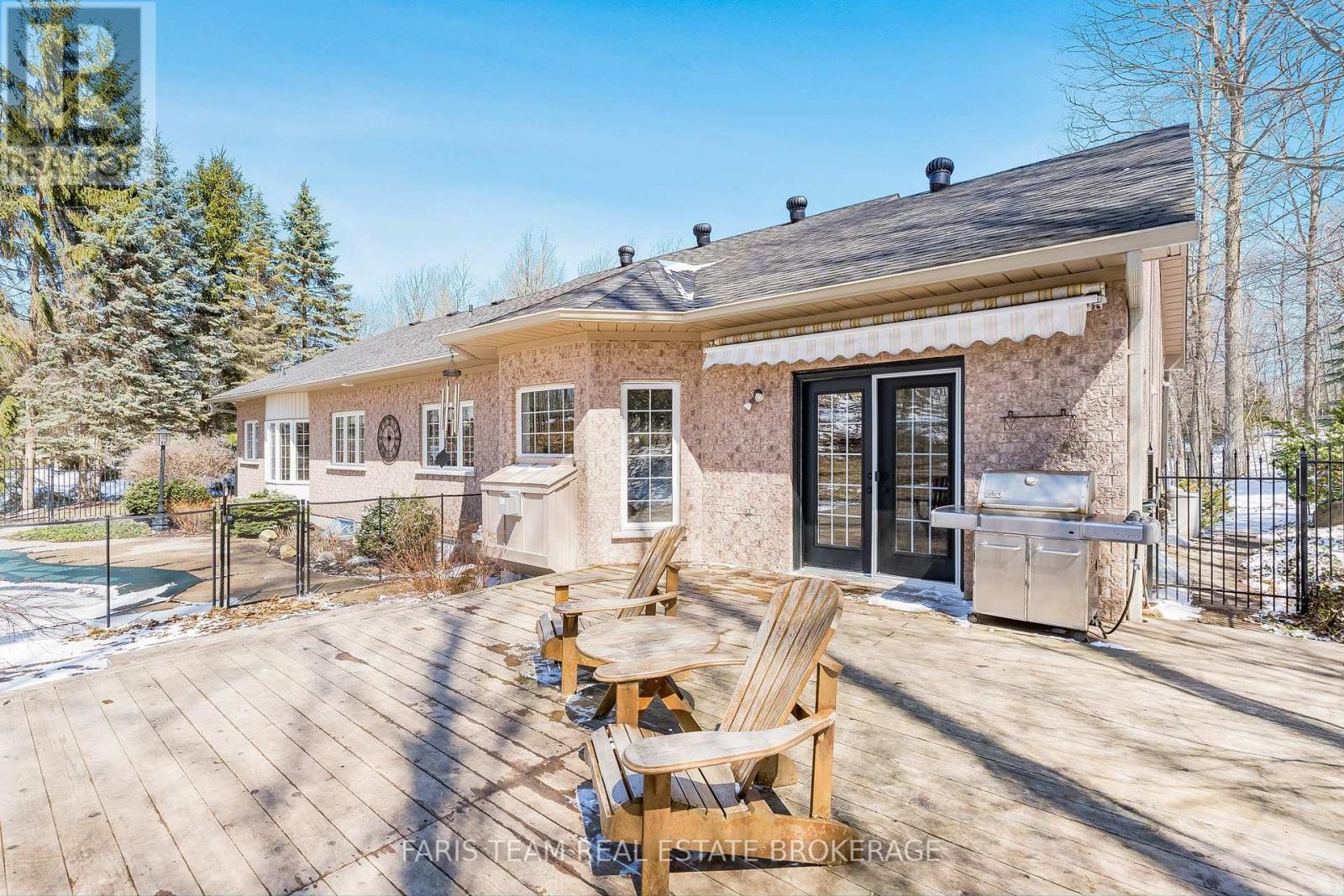 Top 5 Reasons You Will Love This Home: 1) Beautifully renovated home set within a prestigious estate neighbourhood, ideally positioned on a sprawling one-acre lot with tranquil greenspace stretching behind, offering a rare balance of privacy and natural beauty while creating a peaceful retreat in an established community 2) Appreciate the upgraded kitchen showcasing quality craftsmanship with elegant quartz countertops, a timeless neutral backsplash, and a large centre island perfect for gathering, meal preparation, and casual dining, all complemented by thoughtfully designed cabinetry and functional storage 3) Fully fenced backyard oasis featuring a sparkling saltwater pool and a spacious 20'x27' deck ideal for lounging or entertaining, complemented by a charming gazebo and remote-controlled outdoor lighting, all beautifully surrounded by lush gardens, mature trees, and exceptional privacy, creating a serene and inviting outdoor retreat 4) Sprawling newly finished basement offering exceptional additional living space, complete with a guest bedroom and a stylish full bathroom featuring quartz countertops, along with ample room to create a home gym, hobby area, additional bedrooms, or flexible living spaces to suit your lifestyle 5) Gracefully set just minutes to Highway 400 and the beautiful shores of Innisfil Beach, offering quick commuting access while enjoying nearby waterfront recreation, scenic views, and relaxing lakeside escapes. 2,188 above grade sq.ft. plus a finished basement. *Please note some images have been virtually staged to show the potential of the home. (id:64974)