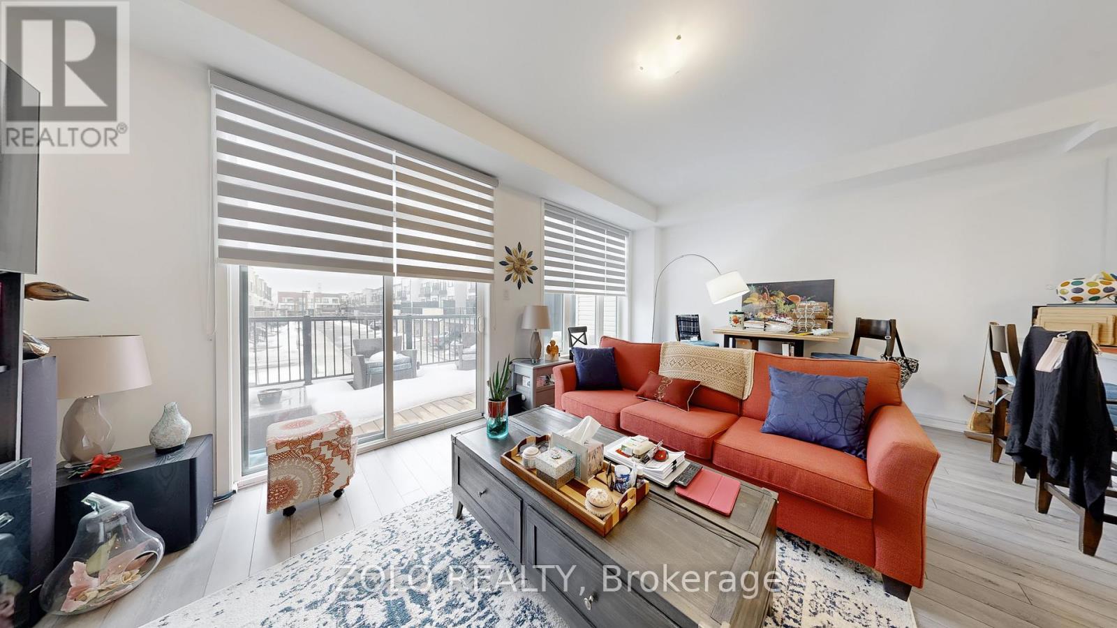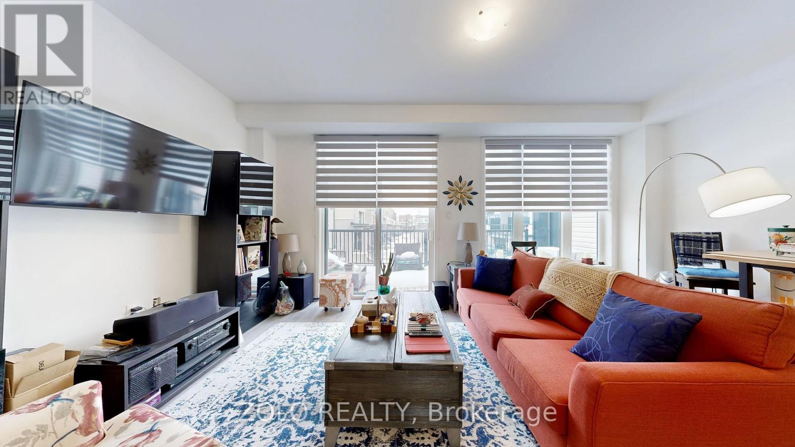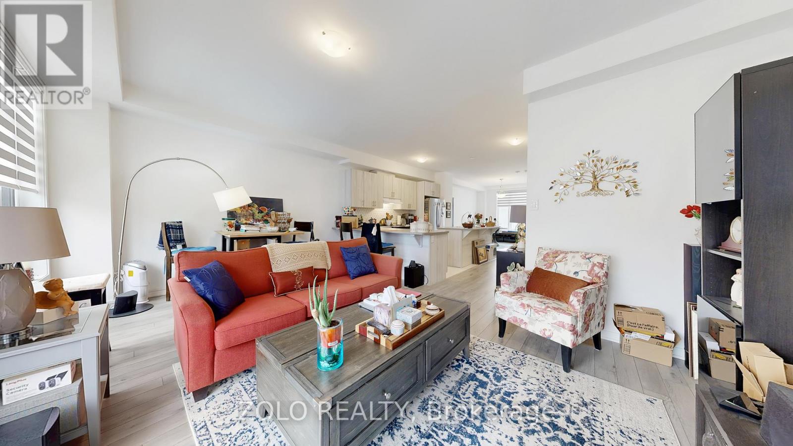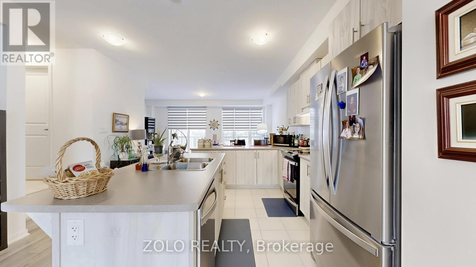 Welcome to this beautifully built 2024 freehold townhouse, offering modern design, quality finishes, and approximately 1,800 sq ft of well-designed living space. This home features 3 spacious bedrooms, 3 bathrooms, and a double car garage, making it ideal for families or professionals seeking comfort and convenience. The bright open-concept main floor showcases 9-foot ceilings, hardwood flooring, and large windows that fill the home with natural light. The modern kitchen includes stainless steel appliances, a double sink, and an extended breakfast bar, perfect for everyday living and entertaining. Step out from the great room to enjoy your private terrace, ideal for relaxing or enjoying your morning coffee. The primary bedroom retreat offers a large ensuite bathroom, generous closet space including a walk-in closet, and a comfortable layout designed for relaxation. Two additional bedrooms, a full bathroom, and convenient upper-level laundry complete the upper floor. Additional features include a double car garage and an unfinished basement providing ample storage space. Home is under Tarion Warranted. Located close to schools, parks, shopping, transit, and major amenities, this home offers modern living in a desirable and rapidly growing neighborhood. (id:64974)
