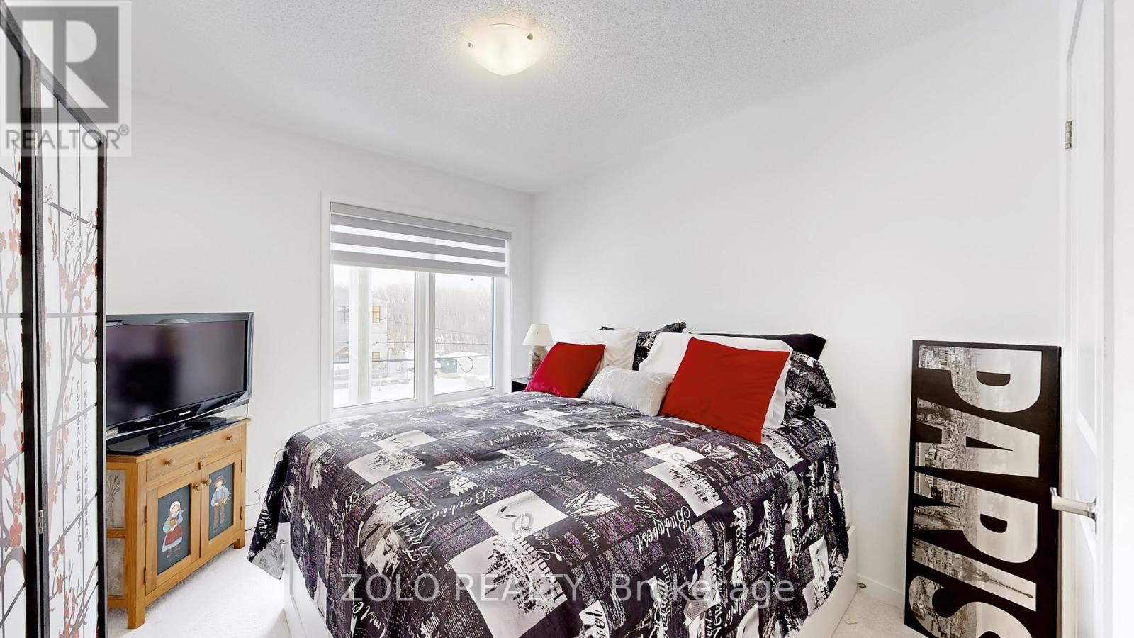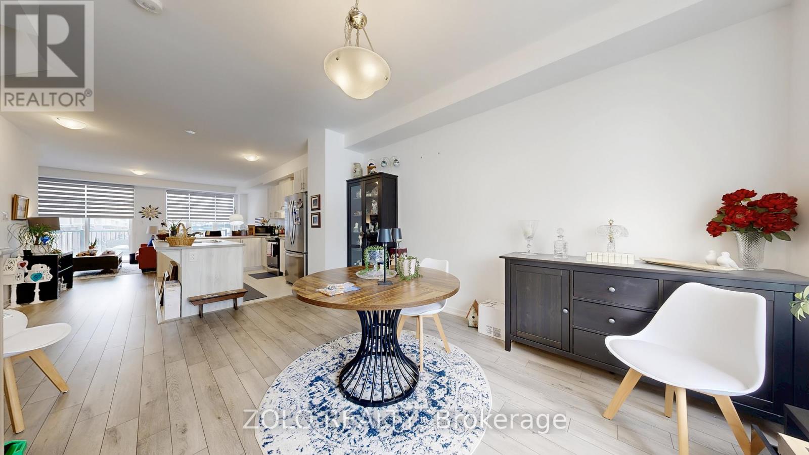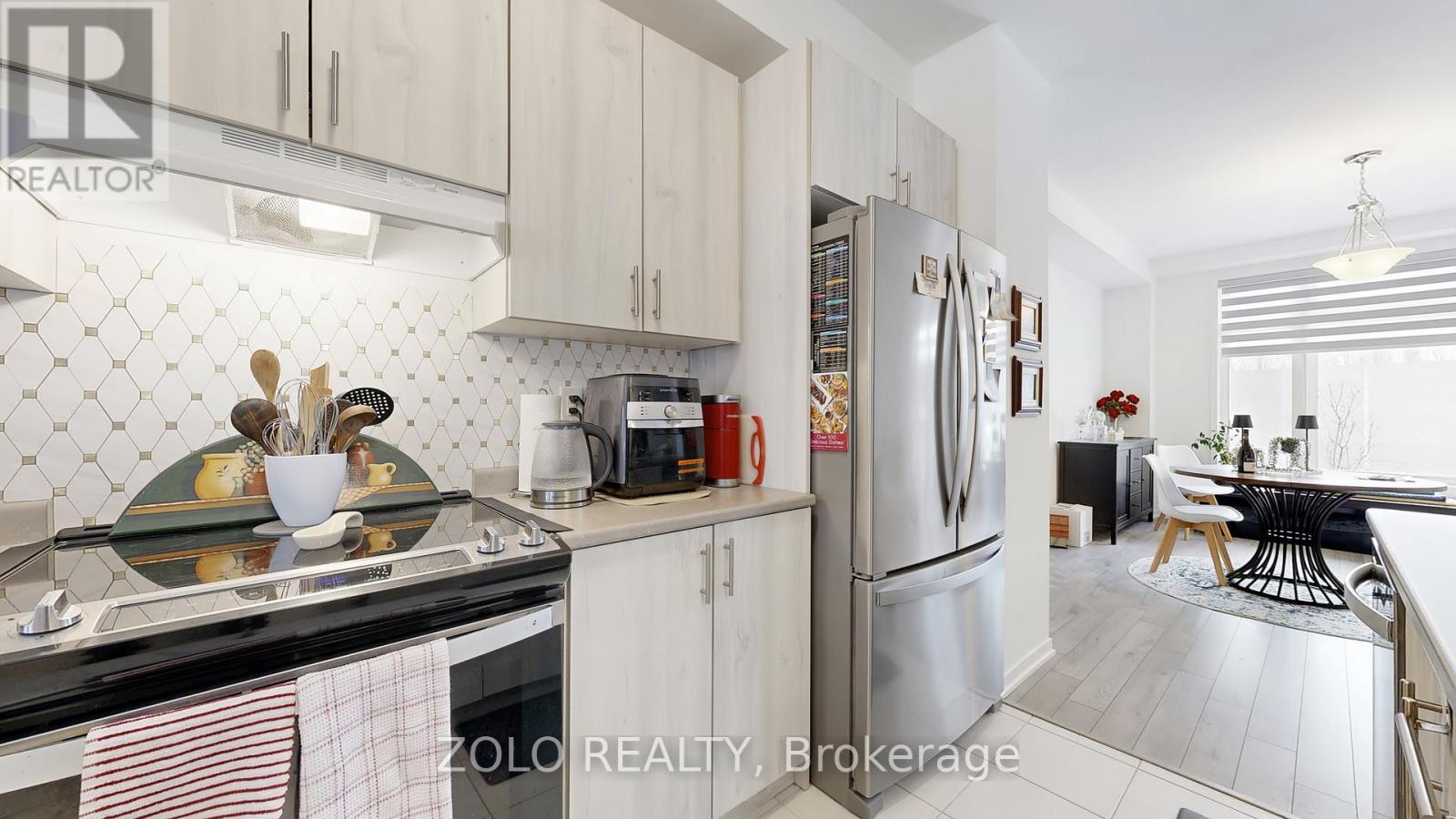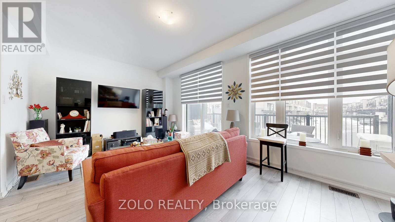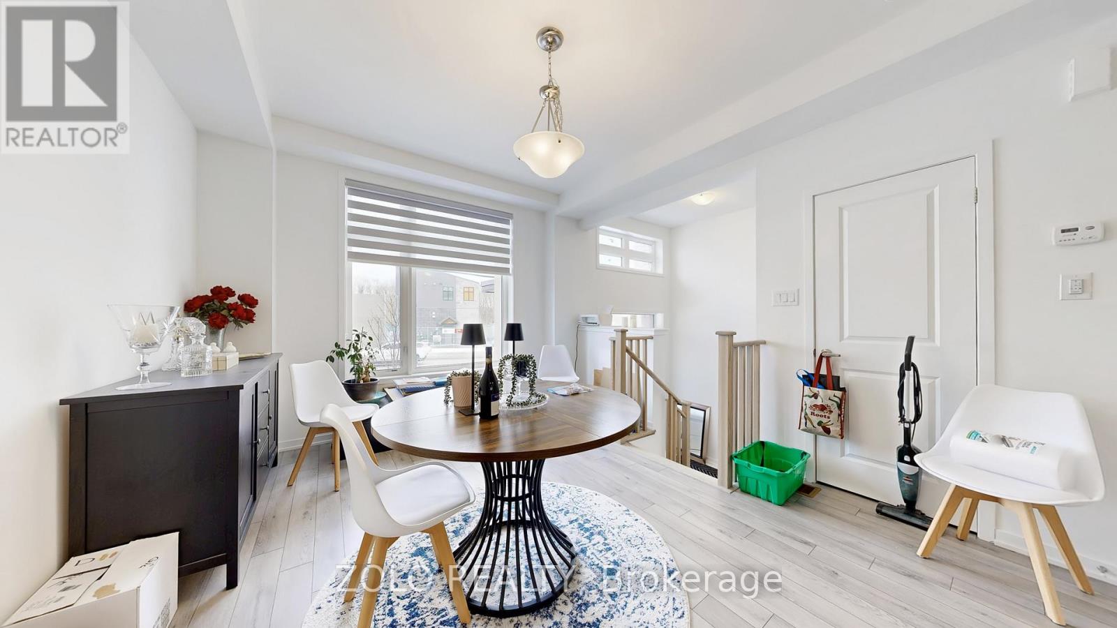 Welcome to this beautifully built 2024 freehold townhouse, offering modern design, quality finishes, and approximately 1,800 sq ft of well-designed living space. This home features 3 spacious bedrooms, 3 bathrooms, and a double car garage, making it ideal for families or professionals seeking comfort and convenience. The bright open-concept main floor showcases 9-foot ceilings, hardwood flooring, and large windows that fill the home with natural light. The modern kitchen includes stainless steel appliances, a double sink, and an extended breakfast bar, perfect for everyday living and entertaining. Step out from the great room to enjoy your private terrace, ideal for relaxing or enjoying your morning coffee. The primary bedroom retreat offers a large ensuite bathroom, generous closet space including a walk-in closet, and a comfortable layout designed for relaxation. Two additional bedrooms, a full bathroom, and convenient upper-level laundry complete the upper floor. Additional features include a double car garage and an unfinished basement providing ample storage space. Home is under Tarion Warranted. Located close to schools, parks, shopping, transit, and major amenities, this home offers modern living in a desirable and rapidly growing neighborhood. (id:64974)