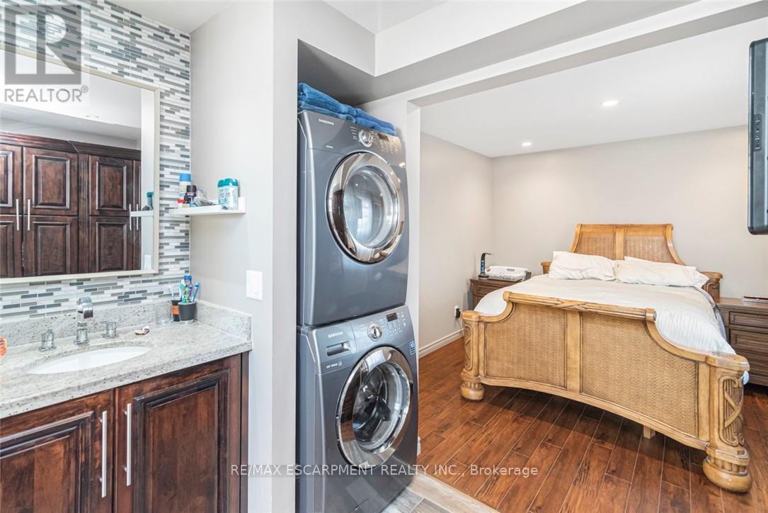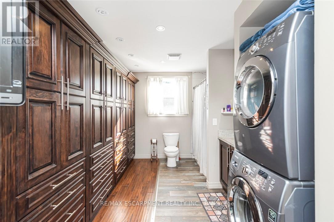 Completely restored from the outside walls. Current owners spent hundreds of thousands on restoring this property for their retirement but plans have changed and it is now available. Updates include spray foam insulation, dry wall doors trim, windows, electrical, plumbing, heating ducks, furnace, gas piping, central air, siding, down spouts, sump pump, weeping tile, concrete retaining wall with rod iron fencing, front yard garden wall porch/deck and new concrete double driveway with 5 car parking. This home is loaded with valuable convenient upgrades like both gas and electrical connections to all stoves and clothes dryers. Private corner lot,3+1 bedrooms,3 1/2 bathrooms with large main floor primary bedroom with luxurious large built in clothes closet,4 peace ensuite bathroom and laundry facilities. Perfect for anyone who would like to avoid stairs. Fully finished basement with fully functioning in law suite complete with one bedroom, living room, dining room, kitchen with five appliances, large bathroom with laundry and separate private entrance. High quality materials and workmanship shows fantastic. Located in the Rosedale Community one of Hamilton's "hidden gems" A vibrant family orientated neighbourhood located beneath the escarpment in the King Forest area directly across the street from the Kings Forest Golf Course. Tucked beneath the escarpment with only 4 points to enter traffic is minimal with lots of local activities and amenities like golf course, community center, hockey arena, municipal swimming pool, parks, forest, green space, creek, walking and bike trails, and shopping. This is a fabulous healthy active community, a lovely place to live and raise a family. With easy access to hospitals, schools, The Redhill Expressway, the QEW, the escarpment and the downtown core. This home is loaded with valuable high quality improvements, located in a wonderful community. A must see to appreciate the workmanship and design. (id:64974)