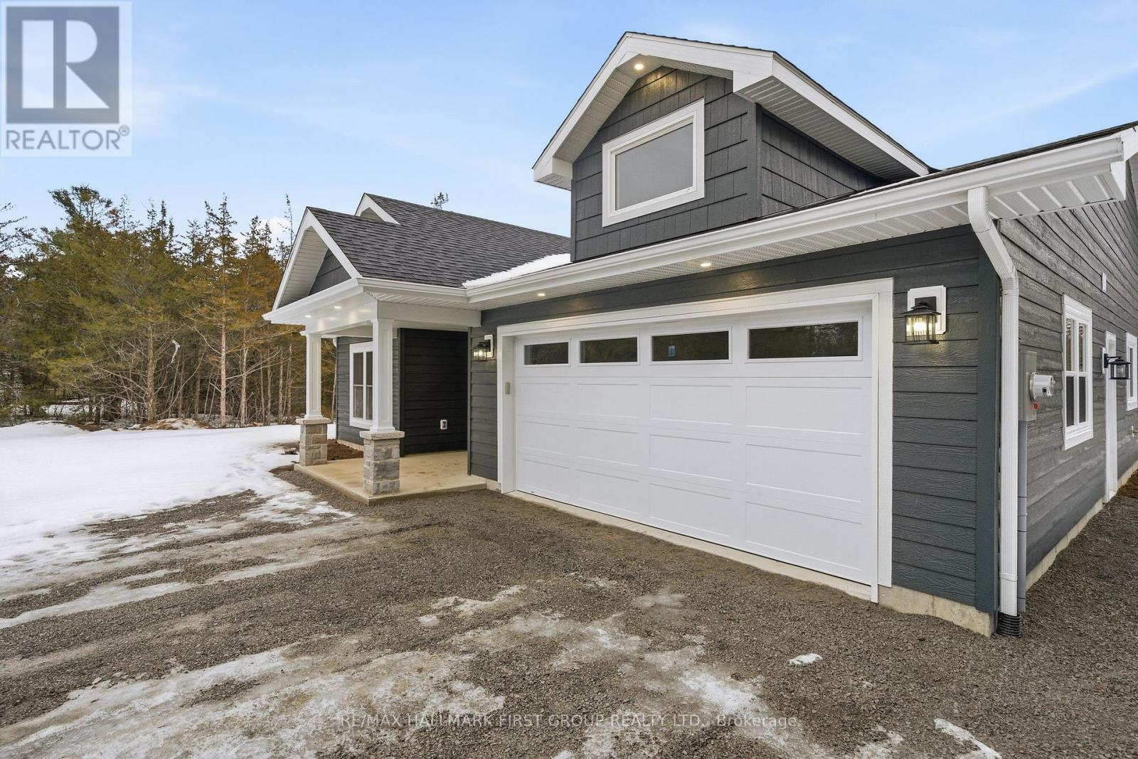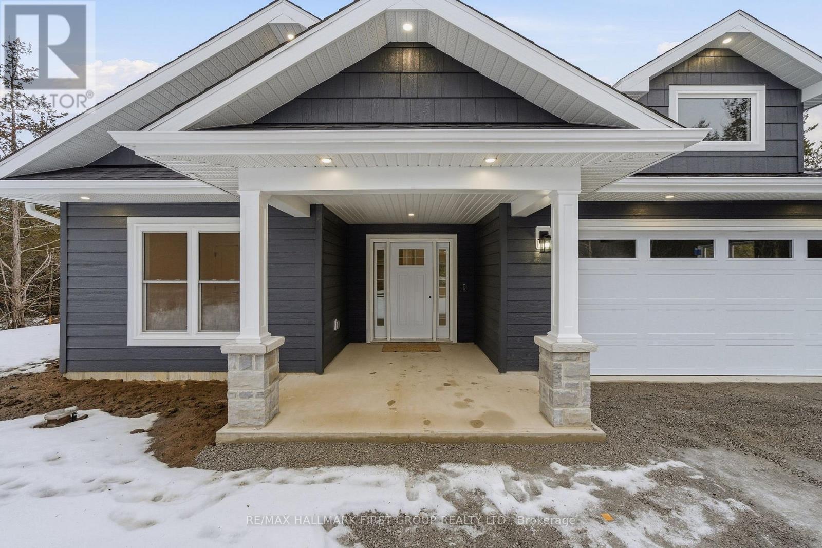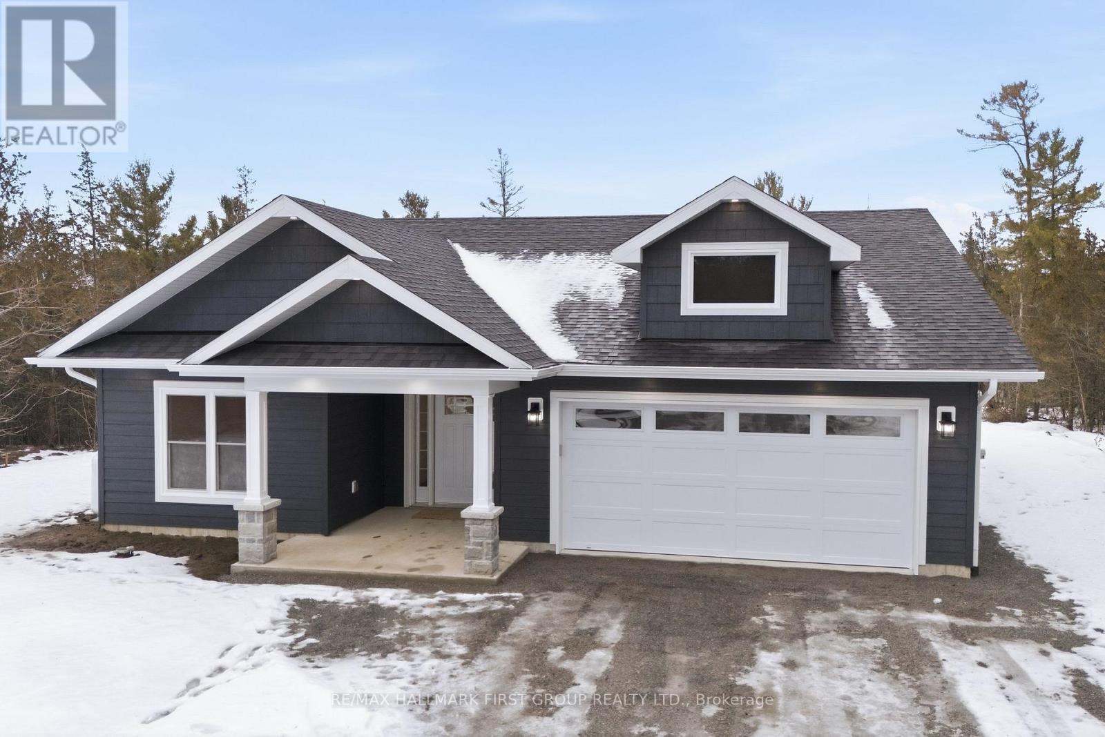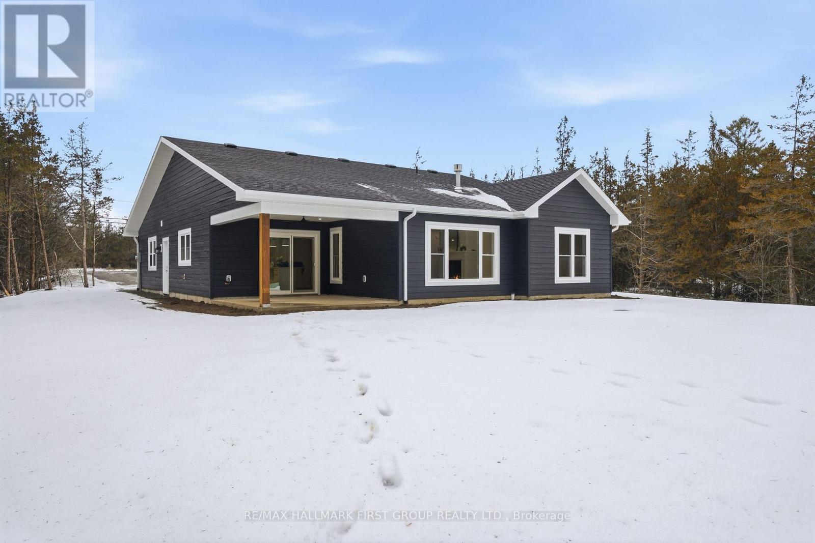 BRAND NEW and move-in ready, this stunning 3-bedroom, 2-bath bungalow is waiting for its lucky new owner! Nestled on a peaceful 1.3-acre country lot with trees lining the perimeter, this cozy yet spacious one-level home welcomes you with a bright entry from the large covered veranda. The open-concept layout features big windows offering beautiful views of the private yard, a living area with cathedral ceilings, and a cozy propane fireplace. Perfect for gatherings, the dining space has plenty of room to entertain, while the modern kitchen dazzles with quartz countertops, a large island and pantry, high-end cabinetry, and elegant hardware. Patio doors open to a covered back patio with wood ceilings, pot lighting, and a ceiling fan-ideal for BBQs and outdoor get-togethers. The primary suite boasts a walk-in closet and a 3-piece ensuite with a custom tile and glass shower. Two more bedrooms, a main 4-piece bath, main-level laundry/utility room, and access to the insulated double-car garage complete the layout. The home offers ample driveway parking, efficient in-floor radiant heating powered by a propane boiler, and two heat pumps offer option for heat and cooling for year-round comfort. Comes with Tarion New Home Warranty-just unpack and enjoy! Immediate possession available. Book your tour today! (id:64974)