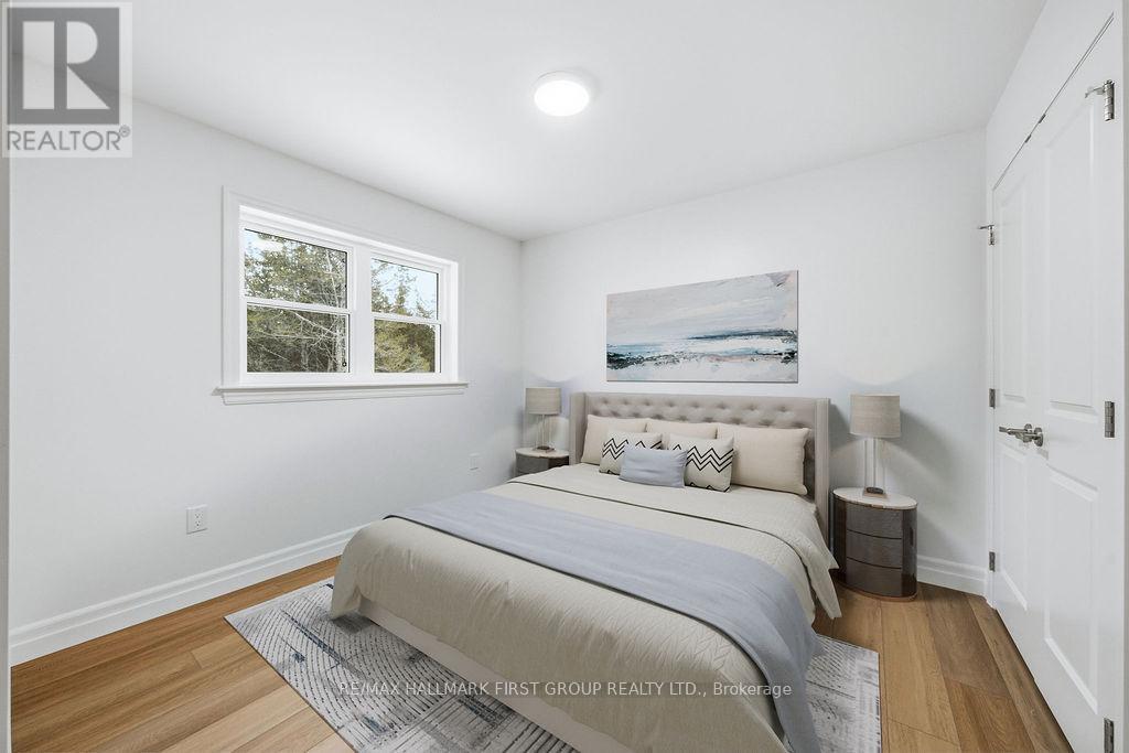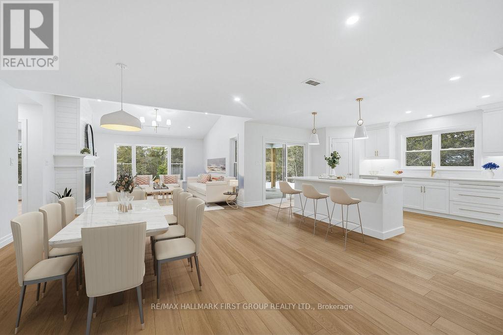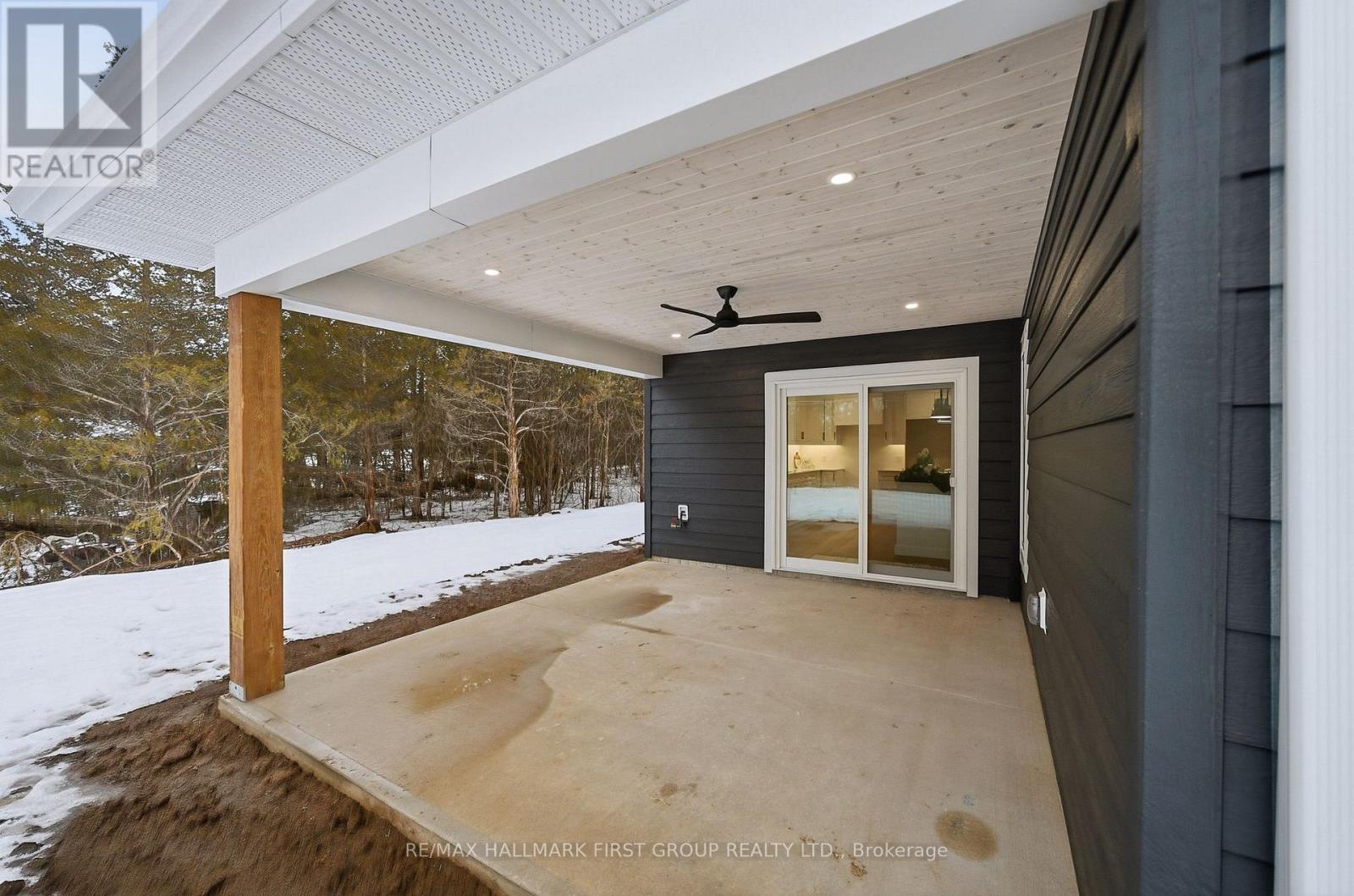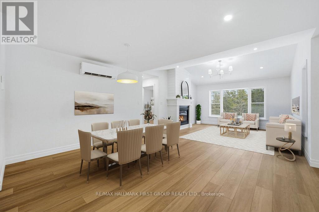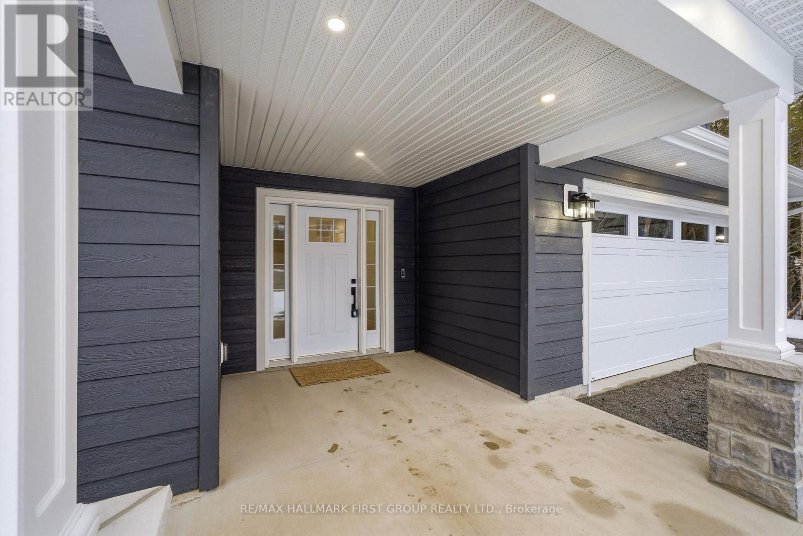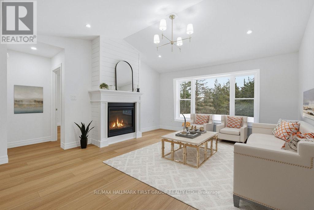 BRAND NEW and move-in ready, this stunning 3-bedroom, 2-bath bungalow is waiting for its lucky new owner! Nestled on a peaceful 1.3-acre country lot with trees lining the perimeter, this cozy yet spacious one-level home welcomes you with a bright entry from the large covered veranda. The open-concept layout features big windows offering beautiful views of the private yard, a living area with cathedral ceilings, and a cozy propane fireplace. Perfect for gatherings, the dining space has plenty of room to entertain, while the modern kitchen dazzles with quartz countertops, a large island and pantry, high-end cabinetry, and elegant hardware. Patio doors open to a covered back patio with wood ceilings, pot lighting, and a ceiling fan-ideal for BBQs and outdoor get-togethers. The primary suite boasts a walk-in closet and a 3-piece ensuite with a custom tile and glass shower. Two more bedrooms, a main 4-piece bath, main-level laundry/utility room, and access to the insulated double-car garage complete the layout. The home offers ample driveway parking, efficient in-floor radiant heating powered by a propane boiler, and two heat pumps offer option for heat and cooling for year-round comfort. Comes with Tarion New Home Warranty-just unpack and enjoy! Immediate possession available. Book your tour today! (id:64974)