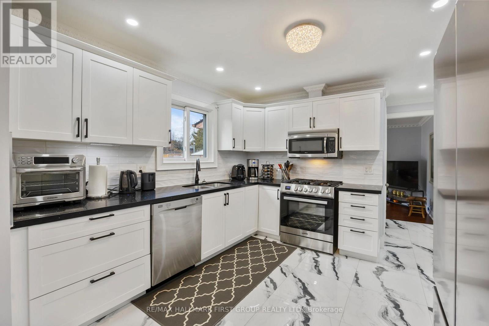 Discover this beautifully updated home in Pickering's highly desirable Dunbarton community. This inviting property features 3+2 bedrooms and 4 bathrooms, offering a versatile layout ideal for families and guests. Enjoy bright, spacious living areas, a comfortable primary bedroom retreat, and a finished lower level perfect for additional living or entertainment space. The private, expansive, backyard provides a great setting for relaxing or hosting friends and family. Close to parks, great schools, shopping, and transit, this is a fantastic opportunity to own in one of Pickering's most established and desirable neighbourhoods. 50 x 155 Ft. Lot * Renovated *New Kitchen with Quartz Counters * New Primary Bedroom Ensuite * Pot Lights * Hardwood Floors on Main *Spacious Family Room with Gas Fireplace * Kitchen and Basement feature new flooring * New Doors * Freshly Painted * New Railing and Front Landing *Close to 401, Shopping, Schools and more * Roof (4yrs) * Furnace (6yrs) * Newer Windows * Tremendous investment opportunity *Current A+ tenant willing to stay, but will vacate *Great investment opportunity! (id:64974)