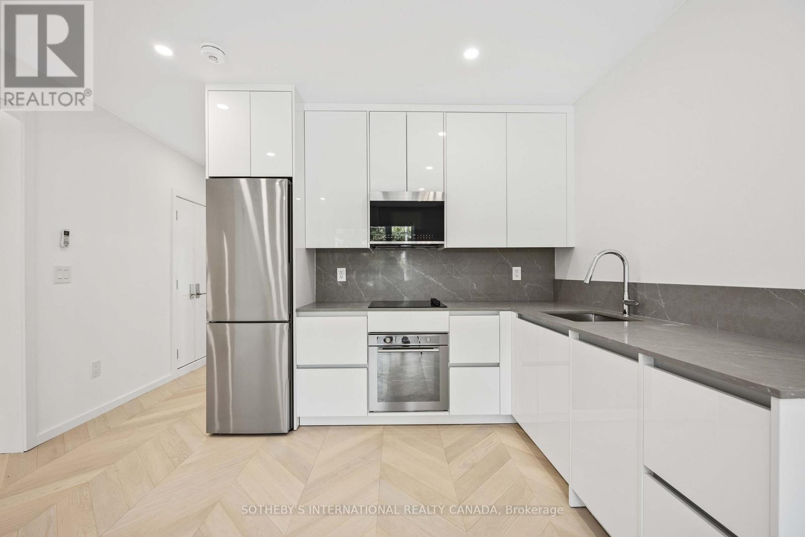 Step into the epitome of Luxury with this bright, renovated suite, exuding elegance with top-of-the line finishes. The timeless herringbone flooring flows seamlessly throughout, leading to a custom kitchen boasting built-in stainless steel appliances for a pleasurable cooking experience. The spacious primary bedroom comes with a built-in closet/wardrobe. With the convenience of an in-unit washer and dryer, daily chores become effortless. The stunning bathroom features a walk-in shower for the ultimate relaxation. This suite is a must see, offering a perfect blend of style and functionality for a truly exceptional living experience. Located in the beautiful Lawrence Park, steps to shopping, restaurants and entertainment as well as parks and Tennis Courts. Quick access to TTC. Two A/C wall units - one in bedroom and one in the living/dining space. (id:64974)