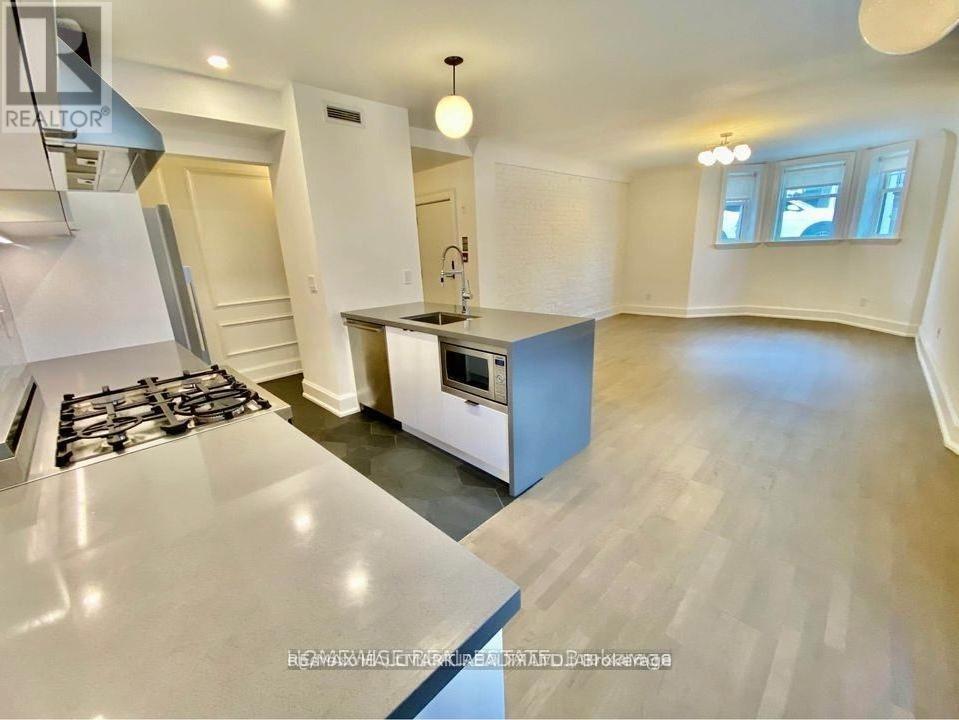 Experience sophisticated urban living in this stunning raised lower level 3-bedroom, 2-bath garden suite on College Street, perfectly situated in the vibrant heart of Little Italy. This beautifully renovated approximately 1,300 sq. ft. suite blends historic charm with modern elegance, showcasing exposed brick walls, coved ceilings, heated engineered hardwood floors, solid wood doors and moldings, designer matte black hardware, double glazed windows, designer lighting throughout and access to garden from the rear entrance. The gourmet kitchen is fully equipped with a gas stove, sleek appliances, and an island with a breakfast bar - ideal for both daily living and effortless entertaining. Enjoy a bright spacious living room, private double apartment entrance, and ensuite laundry, all complemented by a serene shared courtyard with a BBQ at the back which can be accessed through the rear door - perfect for relaxing summer evenings. Set within an intimate, meticulously restored complex, this exceptional home places you steps from Ossington, Trinity Bellwoods, and an array of cafes, boutiques, and top-tier restaurants, offering the very best of Toronto right at your doorstep. Heat and water is included in the rent. Street permit parking is readily available through the City of Toronto. (id:64974)