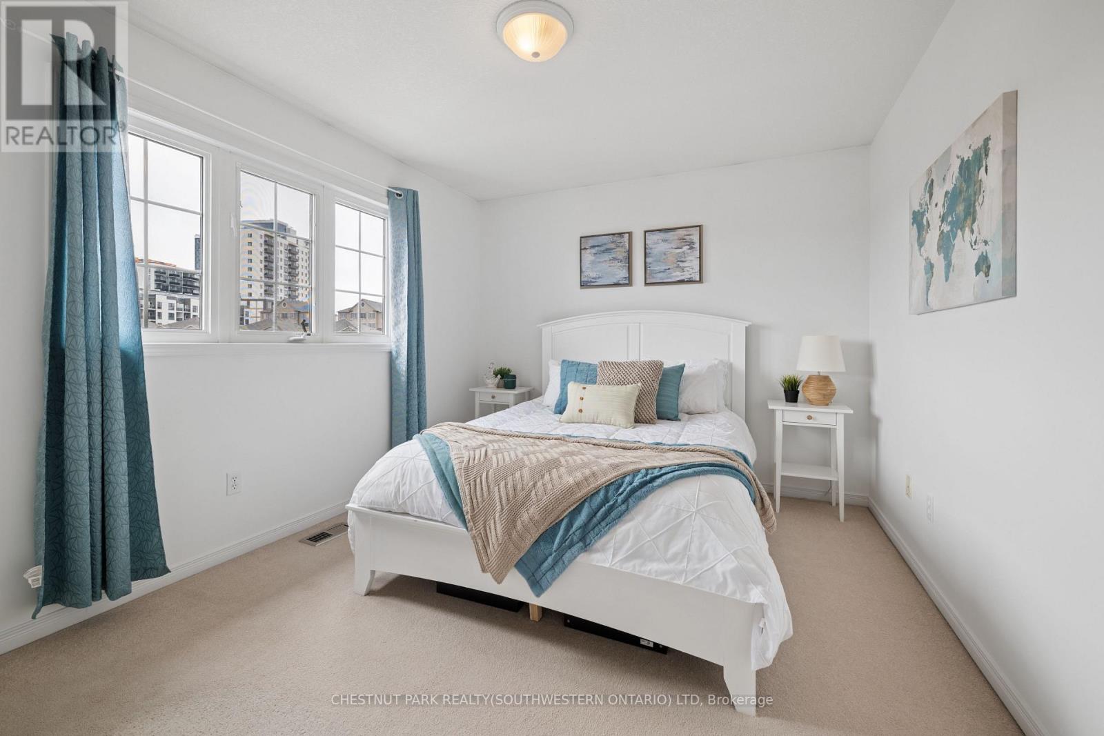 Welcome to effortless, maintenance free living in this beautifully updated two storey townhouse offering nearly 1,500 sqft of thoughtfully designed space. With 3 bedrooms, 2 bathrooms, and truly move in ready, this is the kind of space that works whether you are getting into the market, simplifying your lifestyle, or adding to your portfolio. The main level features a spacious living room ideal for both relaxing and entertaining, enhanced by new flooring throughout the living and dining areas (2026). The well appointed eat in kitchen offers ample cabinetry and workspace, along with a brand new dishwasher (2026). A convenient two piece powder room, dedicated laundry and utility room, and additional storage add to the functionality of this level. Upstairs, you will find 3 generously sized bedrooms, each with abundant closet space, along with a well designed 4 piece bathroom to support everyday family living. Step outside to your private deck, perfect for outdoor dining or unwinding, complete with additional storage below and the added benefit of no rear neighbours. Low maintenance living in Kitchener's west end, with schools nearby and a park located in the heart of the community. Your assigned parking space is ideally positioned directly in front of the unit, with ample visitor parking throughout the complex. (id:64974)