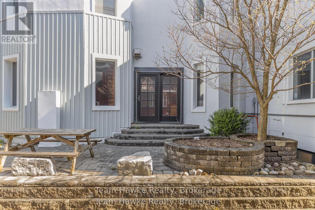 Tucked away at the rear of this downtown Midland building, this commercial unit offers a unique layout and finishings that set it apart. The space is well-suited for creative offices, boutique services, or wellness-based businesses looking for something a little different. One of the standout features is the walk-out to a private stone patio, perfect for staff breaks, client meetings, or creating a welcoming outdoor experience. Functional, flexible, and full of character, this unit combines privacy with access, all in a central downtown location with ample on-site parking. NOTE: Various layouts available. (id:64974)