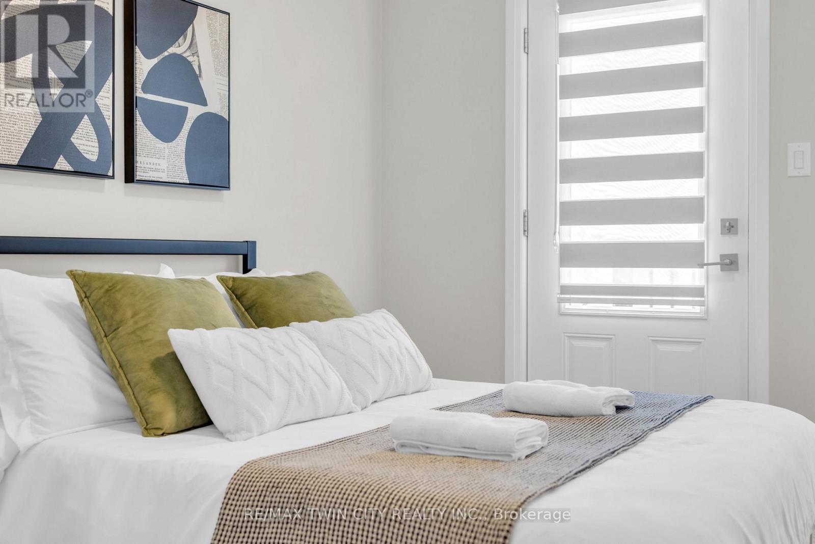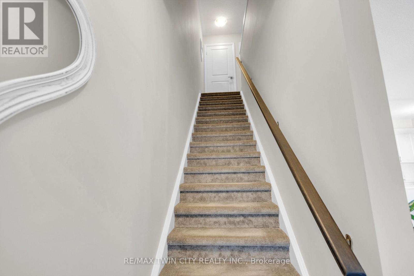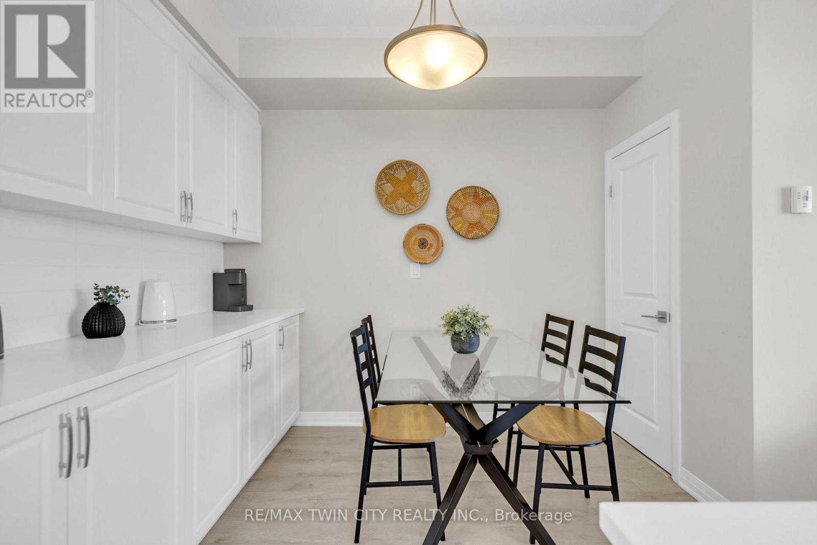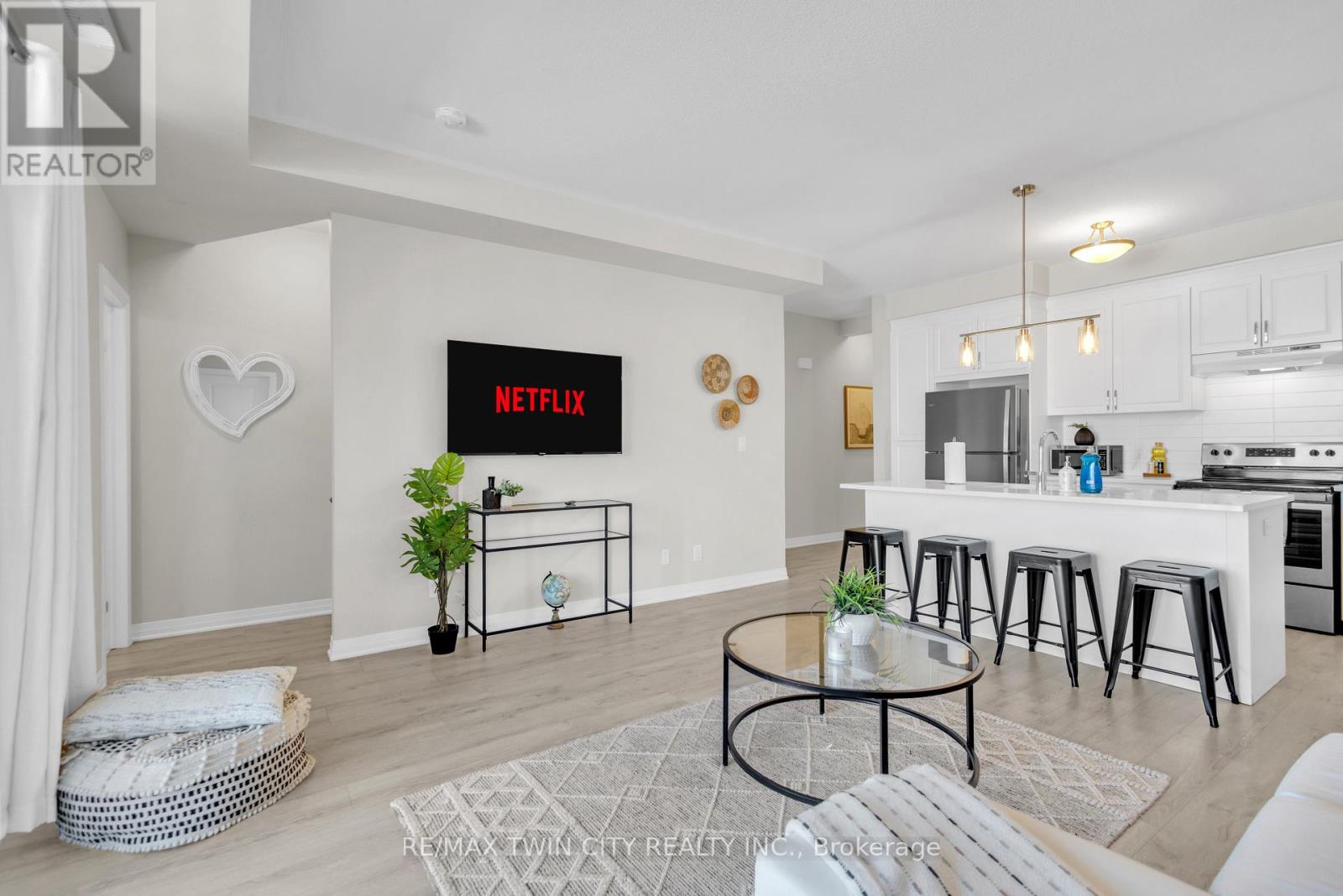 Welcome to 1F-155 Thomas Slee Drive, an exceptional and meticulously maintained stacked townhouse nestled in the heart of the highly desirable Doon Community. This modern, move-in-ready, only a few years young contemporary style home offers an outstanding opportunity for first time Home buyers or investors. Step inside and be greeted by a thoughtfully designed main level. The spacious, chef-inspired kitchen features stainless steel appliances, an abundance of cabinetry, elegant quartz countertops and a large center island that serves as the heart of the home. The bright and expansive living area, filled with natural light offers direct access to an oversized balcony. This private outdoor retreat is perfect for morning coffee, evening relaxation or simply soaking in the peaceful views. A convenient powder room completes this level. The upper level offers a well-planned layout designed for comfort and privacy. You'll find 2 generously sized bedrooms, each with its own private balcony, creating rare and inviting personal outdoor spaces. The primary bedroom is a true retreat, complete with a walk-in closet and a stylish 3-piece ensuite bathroom. A modern main bath and a conveniently located laundry room complete the upper floor. This beautiful townhouse showcases modern finishes, excellent natural light and a smart, efficient layout throughout with very low maintenance fee. Additional highlights include one assigned parking space, along with multiple first-come, first-served parking spots, offering convenience and flexibility for parking. Located in a prime Doon location, this home is just steps away from Groh Park, Groh Public School, scenic walking trails, and offers quick access to Highway 401, along with nearby restaurants, shopping and everyday amenities. Enjoy a vibrant community setting while staying connected to everything you need. An exceptional home in an unbeatable location, don't miss this opportunity. Book your private showing today! (id:64974)