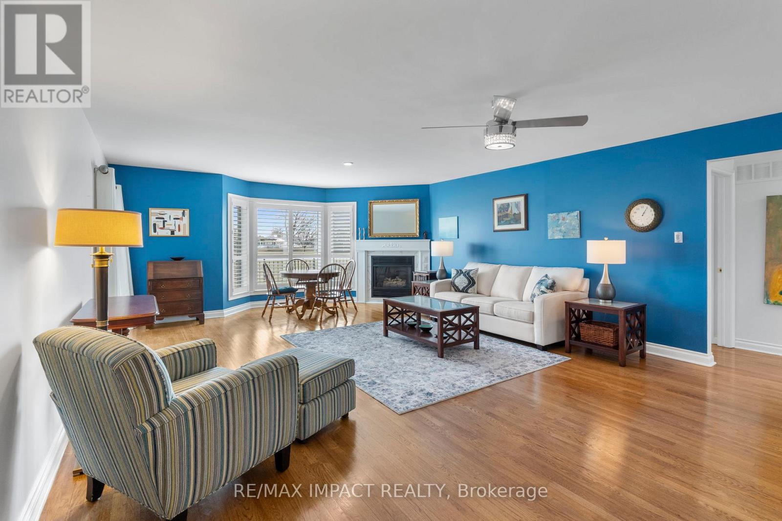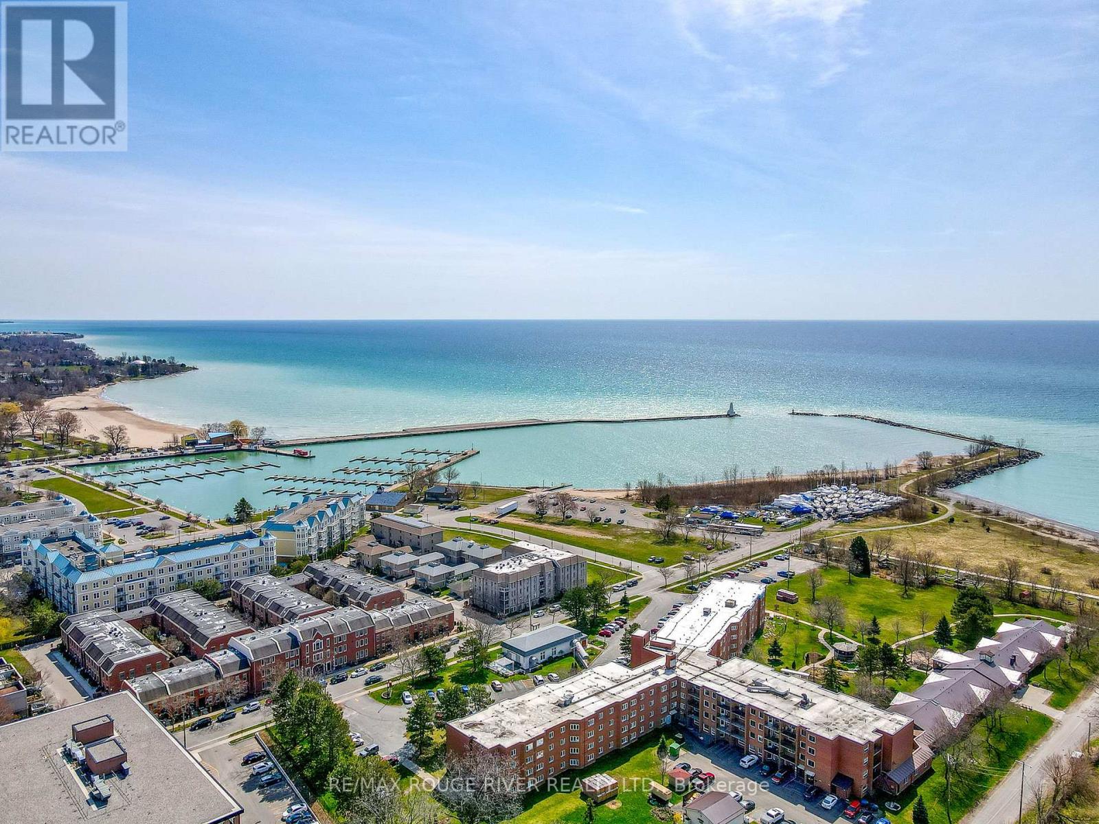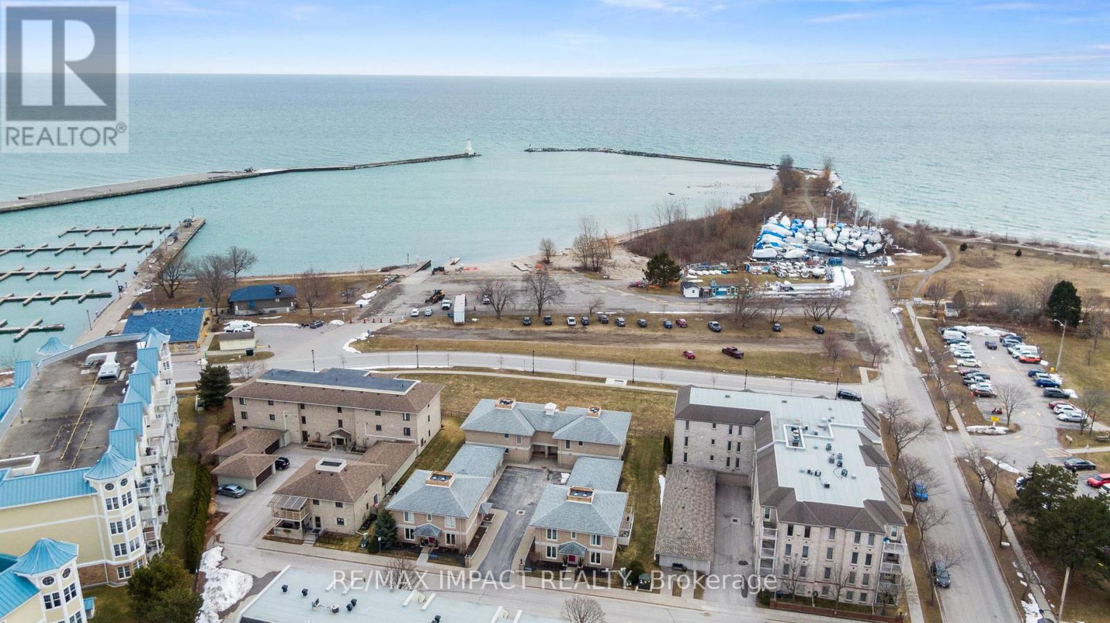 Enjoy the good life with stunning views of Lake Ontario, the Cobourg Marina, and Yacht Club from this private, ground floor condo ideally set back for both tranquility and scenery. This spacious 2 bedroom, 2 bathroom suite offers an exceptional waterfront lifestyle. The bright and expansive living room is perfectly positioned to capture beautiful lake views and features a cozy gas fireplace ideal for relaxing or entertaining. The well designed layout includes a generous primary bedroom with a private ensuite bath, a second bedroom and full bath for guests, and an inviting eat in kitchen. The large combined living and dining area provides ample space for hosting family and friends. Step outside to your private deck, where you can unwind on warm summer evenings while taking in the peaceful waterfront setting. Enjoy leisurely walks along the nearby boardwalk and beach, all just moments from your door. A rare and valuable bonus is the detached single car garage with additional storage space. This is a wonderful opportunity to experience comfortable, low-maintenance living in one of Cobourg's most desirable waterfront locations. (id:64974)