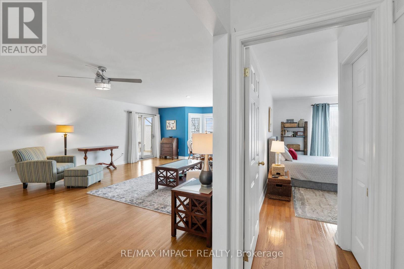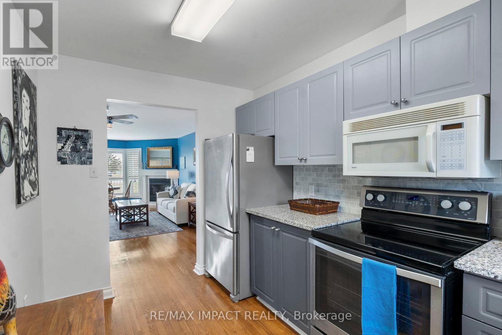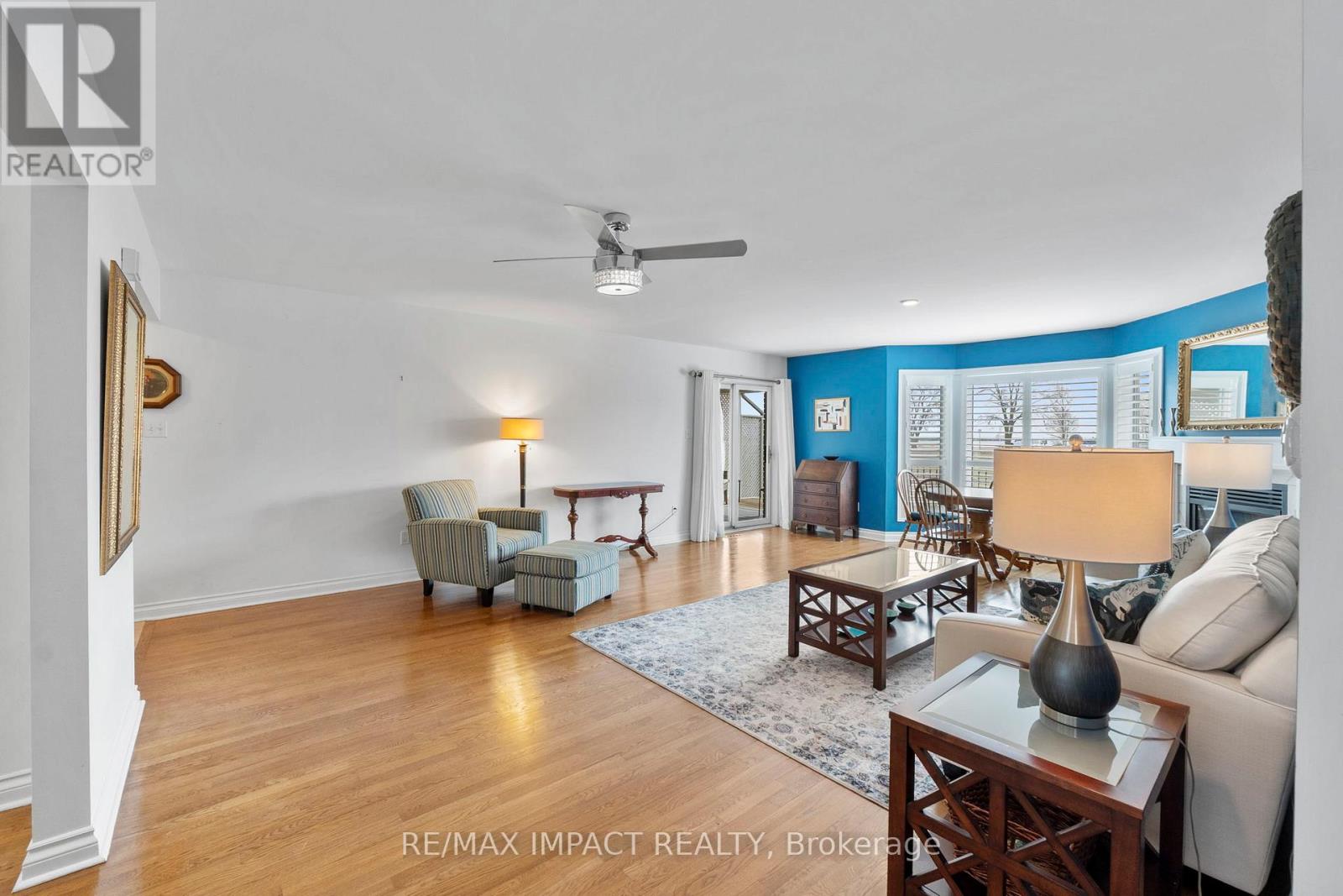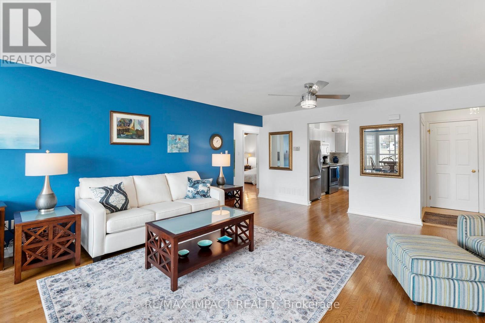Enjoy the good life with stunning views of Lake Ontario, the Cobourg Marina, and Yacht Club from this private, ground floor condo ideally set back for both tranquility and scenery. This spacious 2 bedroom, 2 bathroom suite offers an exceptional waterfront lifestyle. The bright and expansive living room is perfectly positioned to capture beautiful lake views and features a cozy gas fireplace ideal for relaxing or entertaining. The well designed layout includes a generous primary bedroom with a private ensuite bath, a second bedroom and full bath for guests, and an inviting eat in kitchen. The large combined living and dining area provides ample space for hosting family and friends. Step outside to your private deck, where you can unwind on warm summer evenings while taking in the peaceful waterfront setting. Enjoy leisurely walks along the nearby boardwalk and beach, all just moments from your door. A rare and valuable bonus is the detached single car garage with additional storage space. This is a wonderful opportunity to experience comfortable, low-maintenance living in one of Cobourg's most desirable waterfront locations. (id:64974)