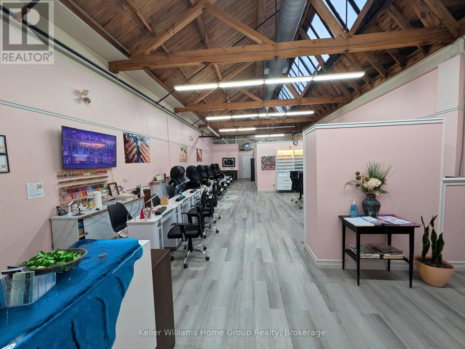 Excellent Sublease Opportunity in the heart of downtown Fergus! This bright and inviting commercial condominium is located within the highly desirable Fergus Marketplace-home to a variety of unique local shops. Situated in the iconic former Beatty Brothers building along the beautiful Grand River, this space benefits from strong foot traffic, excellent visibility, and ample on-site parking. The unit features soaring cathedral ceilings, skylights that fill the space with natural light, and an accessible bathroom, making it ideal for a wide range of business uses. The character of the historic stone-clad building, combined with modern updates, creates a warm and professional environment for both clients and staff. Perfect for entrepreneurs or established businesses looking to expand into a vibrant and growing community. Enjoy the convenience of a central location within walking distance to shops, restaurants, and services. A rare opportunity to secure a premium commercial space in one of Fergus's most recognized buildings.$3400/month includes base rent and TMI (id:64974)