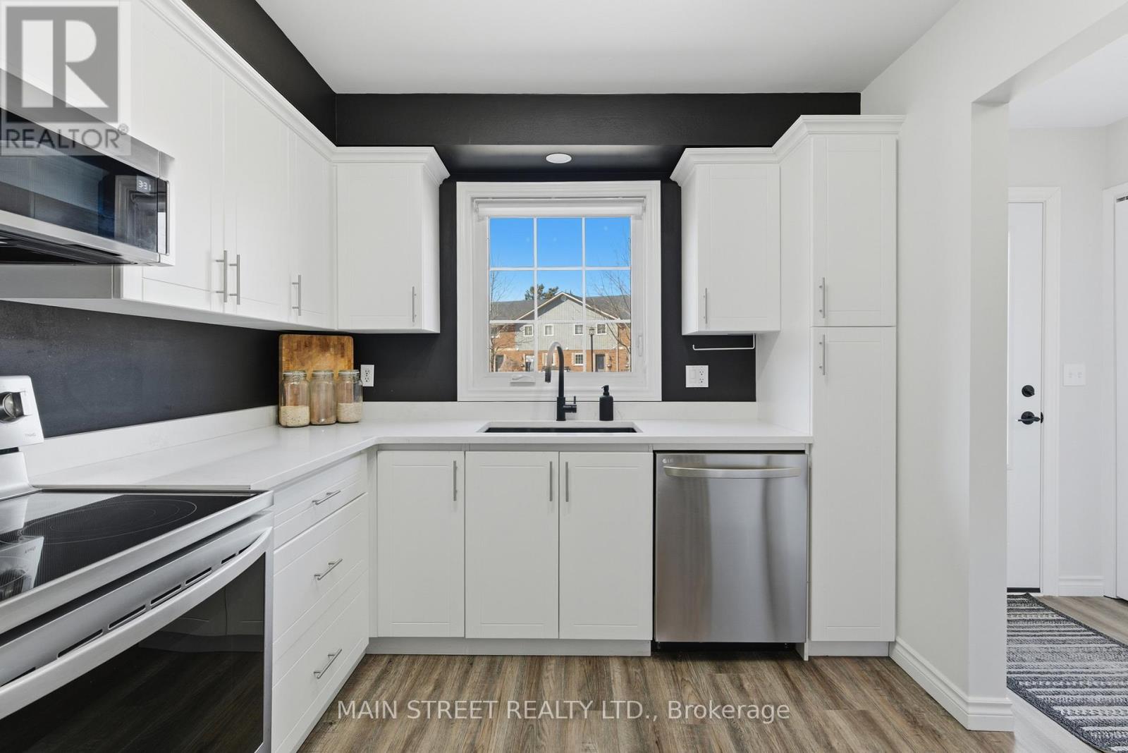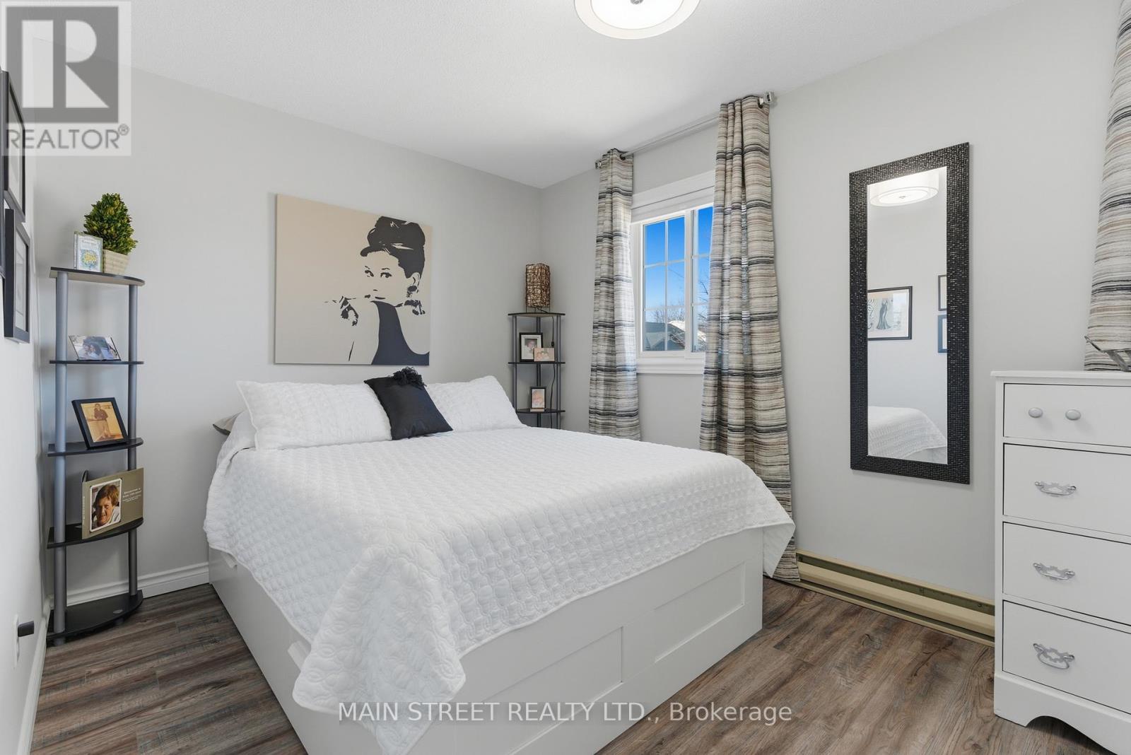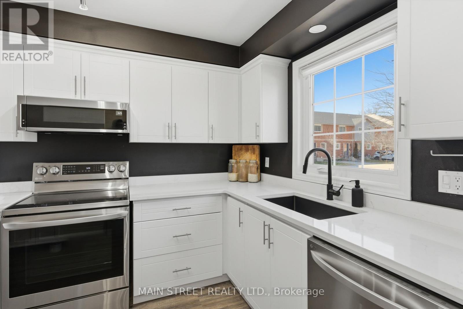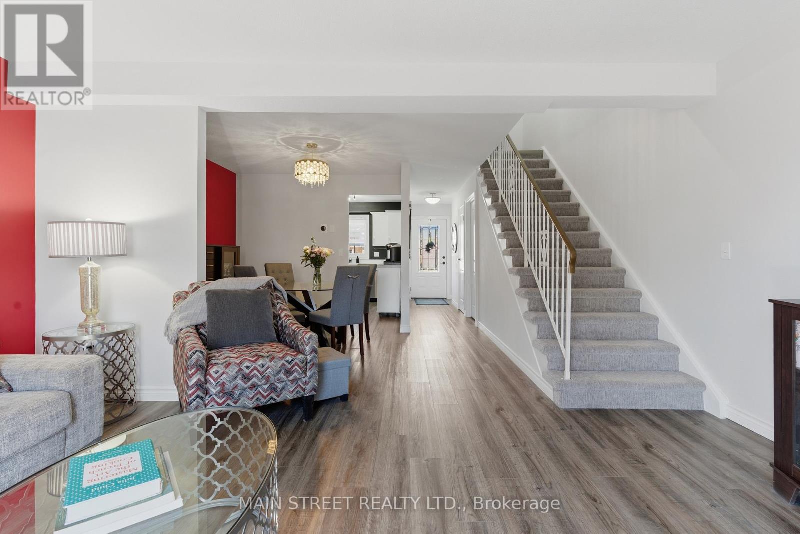 Turnkey, Extensively Updated 2-Bedroom Condo Townhome with Private Parking. Welcome to a home that offers something today's buyers are actively searching for: affordability, peace of mind, and the feeling that everything has already been done. This bright and beautifully maintained 2-bedroom, 2-bathroom condo townhome has been extensively updated throughout, offering a true turnkey opportunity. From the moment you step inside, you'll notice the seamless flow of new flooring throughout the entire home, complemented by updated doors, modern hardware, and stylish light fixtures that create a clean, contemporary feel. The modern and tastefully renovated kitchen is a standout feature, complete with new cabinetry, stone countertops, stainless steel appliances, and updated fixtures-designed for both everyday ease and entertaining. The main level offers a functional and inviting layout, featuring a spacious living area open to a dedicated dining space, and a convenient 2-piece powder room for guests. Upstairs, the home continues to impress with two well-sized bedrooms, including a large primary bedroom with a double closet and cozy fireplace, adding warmth and character. The second bedroom is freshly painted with ample storage-ideal for a home office, guest room, or growing family. The 4-piece bathroom has been updated with a modern vanity and fixtures, maintaining a clean, refreshed look. The partially finished basement provides valuable additional space with two separate rooms currently used as a home gym and flex space. Whether you need a home office, guest area, or additional living space, this level offers versatility and easily adaptable for your current lifestyle. Step outside to your private, fenced patio with mature maple tree, creating a quiet outdoor retreat-perfect for morning coffee or unwinding at the end of the day. Close to all amenities: shopping, public & catholic schools, hospital, Niagara College, highways, parks and trails. Just move in! (id:64974)
