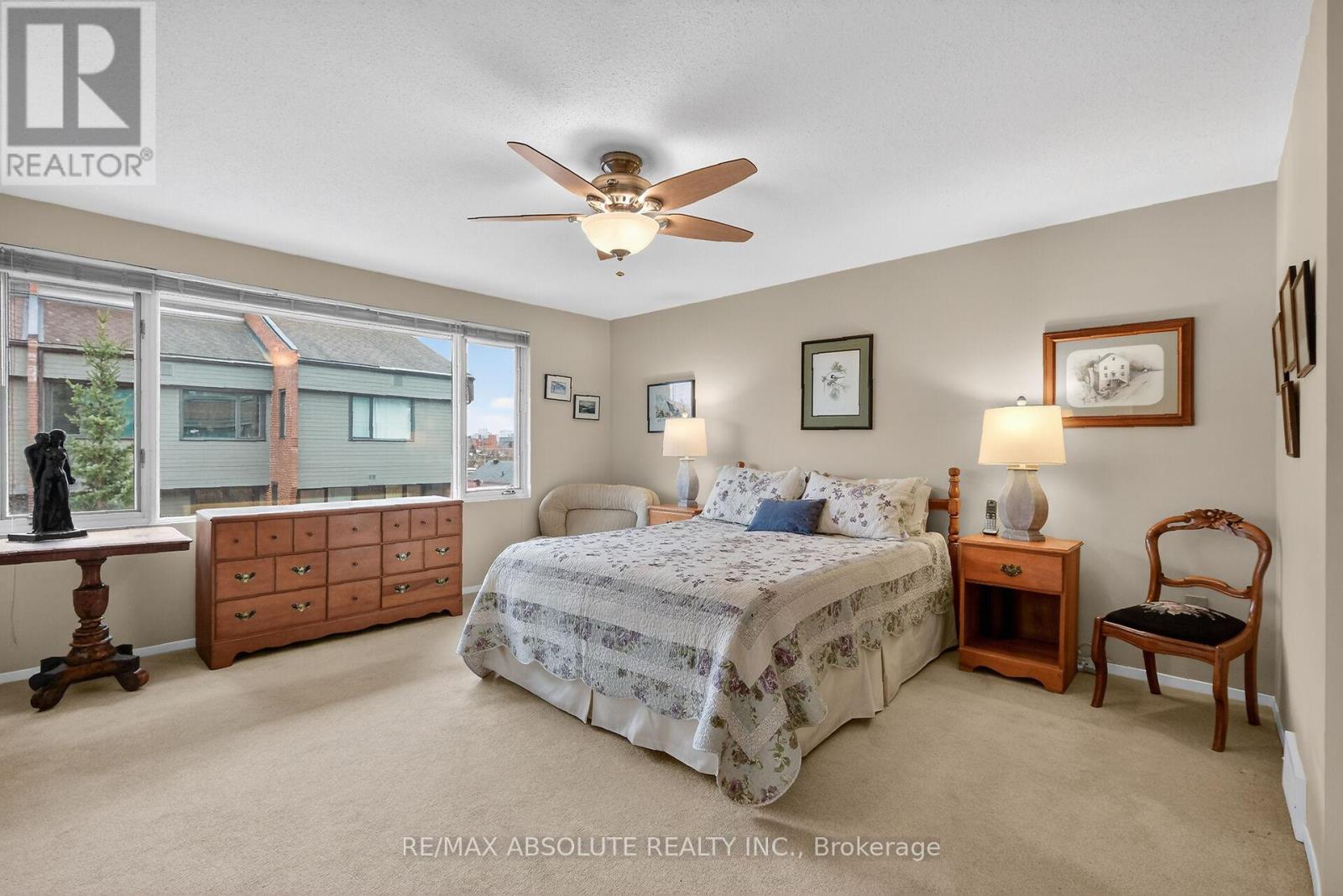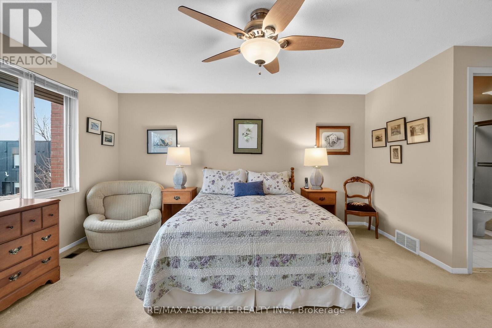 Welcome to this beautifully maintained 3-storey executive condo townhouse in sought-after New Edinburgh, offering a functional layout and versatile living spaces. The main level features a bright foyer with coat closet and 2pc bath, leading to a well-appointed kitchen with ample countertops, ample cabinetry, and a granite breakfast bar with seating for four. The open-concept dining and living area is ideal for entertaining, highlighted by a cozy gas fireplace, large sun-filled windows, and patio door access to a private, fenced rear garden. The second level offers two generous bedrooms, including a primary retreat with a wall of closets with built-in organizers and a private ensuite with granite counters, tub/shower, vanity, and toilet. A second spacious bedroom and full 4pc family bath with granite counters, tub/shower, vanity & toilet complete this level. The third floor loft provides incredible flexibility as a family room, home office, or third bedroom, with ceiling fan & patio door access to an upper deck. The lower level offers abundant storage, laundry area, utility room with natural gas furnace, hot water tank, and central air. A spacious lower foyer provides direct access to underground parking for two vehicles owned by this unit. Ideally located near parks, top schools including Ashbury and Elmwood, transit, and all amenities. Self-managed condo with only 11 units. BBQ included .Move-in condition, lovingly maintained by long-time owners. 24 hours irrevocable on all offers. (id:64974)