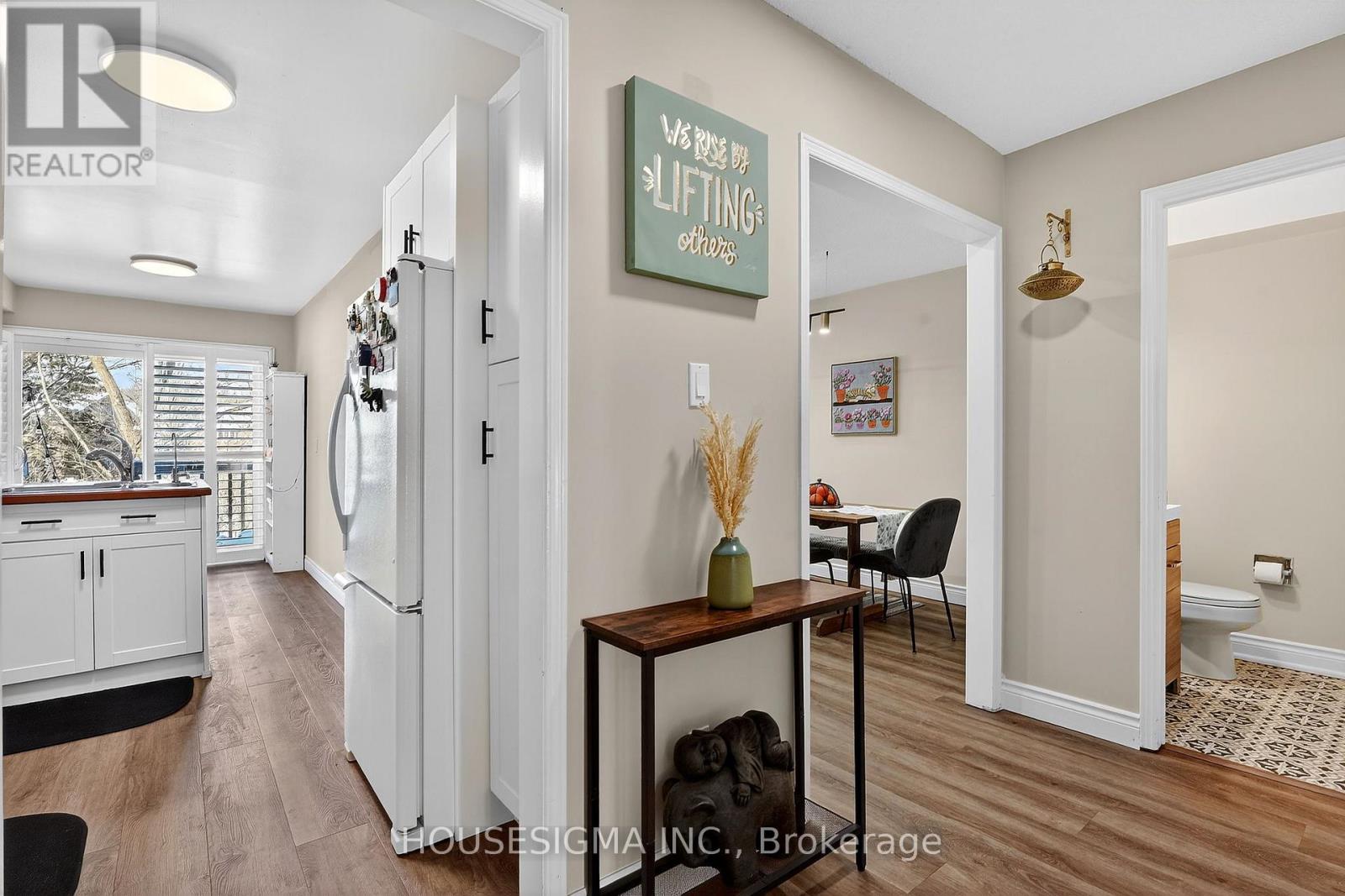 Welcome to this beautifully designed 3 bedroom, 4 bathroom condo townhouse, perfectly situated in one of Dundas' most desirable communities. One of the largest layouts in the entire complex, this home offers exceptional space, thoughtful design, and a serene natural setting that's hard to find. Backing onto a lush ravine and just steps from scenic trails, this property blends convenience with tranquility. Local schools, parks, and everyday amenities are all close by, making it an ideal choice for families and professionals alike. Inside, you'll find a large, open-concept living and dining area, perfect for gatherings or quiet evenings at home. A charming wood-burning fireplace anchors the space, adding warmth and character. The well designed eat in kitchen features a breakfast bar, generous dining area, and a walkout to the upper deck-ideal for morning coffee or outdoor dining with a view. Upstairs, the spacious primary suite offers a peaceful retreat with a walk-in closet, sitting area, and a four piece ensuite. The additional two bedrooms are well sized, each with ample closet space, making them perfect for family, guests, or a home office. The very large finished basement adds exceptional living space with a walkout to a second deck, built-in bar, laundry area, 4-piece bathroom, and separate mechanical room-perfect for entertaining, extended family, or a flexible recreation zone. Recent updates add comfort and peace of mind, including: Furnace & heat pump (2025), Main floor flooring (2023), Main floor pot lights (2023), Water softener (2024). With its generous layout, natural surroundings, and modern updates, this Dundas townhouse delivers the perfect blend of space, style, and low maintenance living. (id:64974)