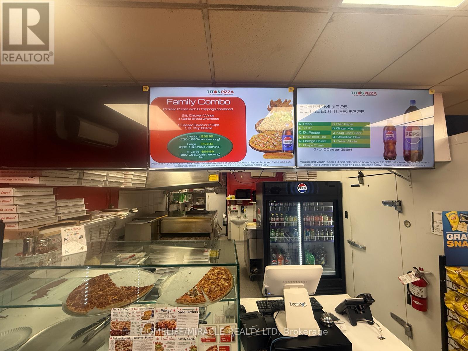 TITO'S PIZZA Business in Brantford is For Sale. Located at the busy intersection of Brantwood Park Rd/Dunsdon St. Surrounded by Fully Residential Neighborhood. Close to Schools, Highway, Offices, Banks, Major Big Box Store and Much More. Business with so much opportunity to grow the business even more. Monthly Sales: Approx.$32,000-$34,000 Rent: $1665/m including TMI & HST, Lease Term: Existing 9 + 5 Years Option to renew , Royalty: $900/m. (id:64974)