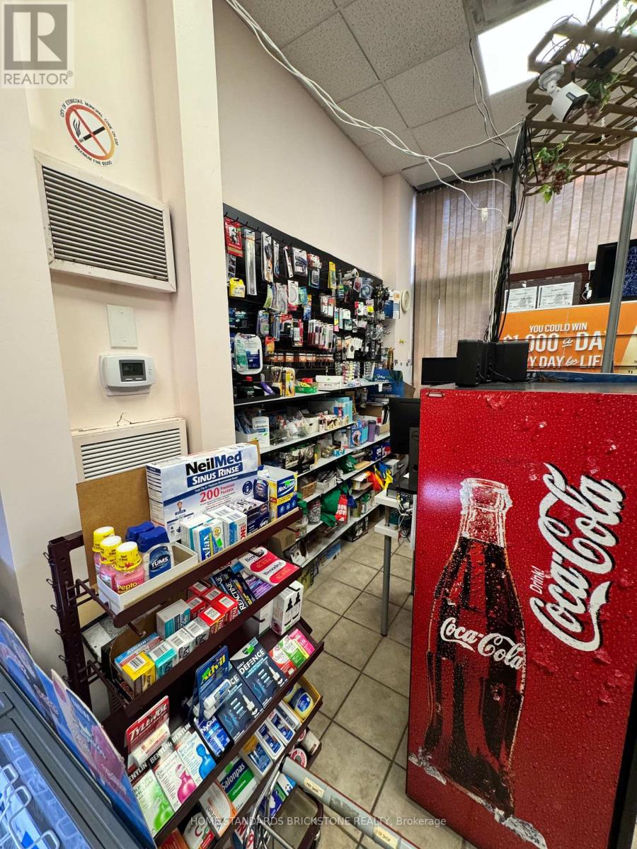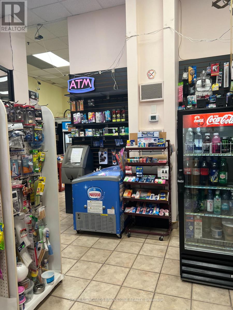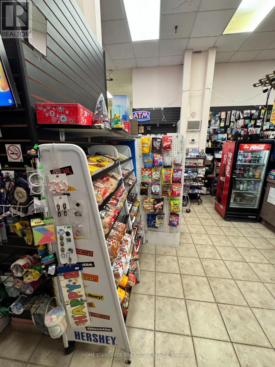 Don't Miss This Golden Opportunity! Nestled inside a luxurious condominium near Lake Ontario, this Tuck Shop coupled with a Dry Cleaning Depot and Lotto enjoys the peace of mind of round-the-clock building security, both staffed and system protected. Surrounded by an upscale neighbourhood with a loyal, high-end clientele, it further benefits from a guaranteed customer base of residents within the building, ensuring stable sales and consistent income. Very Easy Operation - Short business hours, approximately 260 hours per month compared to the typical 420 hours of a standard convenience store, the business opens 5.5 days a week and closes on all statutory holidays, offering an excellent work-life balance. Very attractive Rent Structure and Minimal Expense: Current Rent: $0/month (TMI included)Other Fixed Expense: $539/month. Fresh Coffee and Sandwich stand available (extra income). Perfect size - 1,100 Sq.Ft. total area - with the potential to introduce Beer and Wine sales, this business holds tremendous growth potential and is set for even greater success under proactive management. (id:64974)