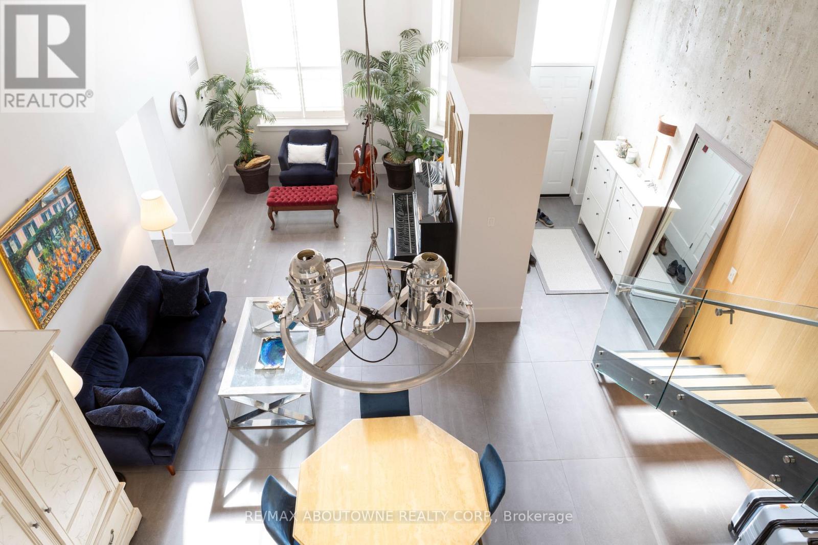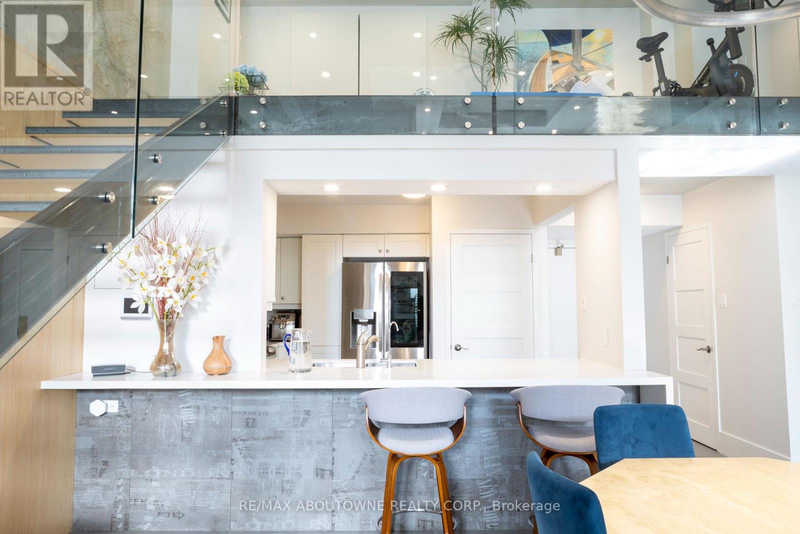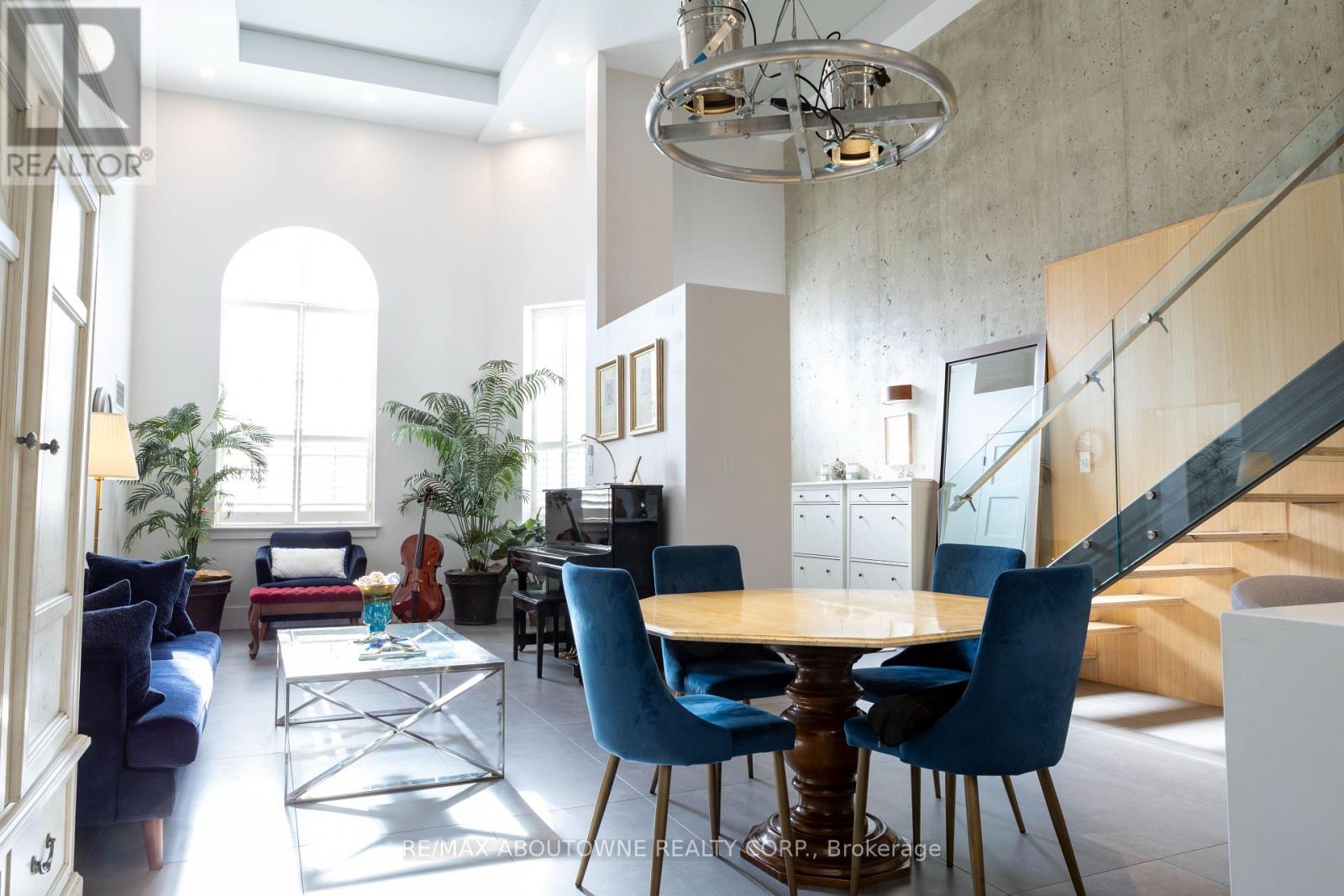 Experience sophisticated urban living in the heart of Downtown Oakville. Perfectly positioned just steps from the lake, boutique shops, cafés, and restaurants, this stunning 2-bedroom, 2-bath loft townhome offers the ultimate blend of style, comfort, and location. Designed with a sleek urban aesthetic, the home features soaring loft-style ceilings and an abundance of natural light that fills the open-concept living space. A striking open steel staircase with modern glass panels serves as a dramatic architectural focal point, complemented by stylish concrete, wood, and steel accents throughout.The modern white kitchen is both elegant and functional, showcasing quartz countertops, stainless steel appliances, and ample cabinetry-perfect for everyday living or entertaining. The spacious living and dining area flows effortlessly beneath the impressive ceiling height, creating an airy and contemporary atmosphere. Upstairs, a unique second-floor loft overlooks the main living area, offering a flexible space ideal for a gym, reading lounge, or office area. Both bedrooms are well-appointed, and the townhome has been freshly painted, making it completely move-in ready. Additional features include locker, underground parking, a rough-in for an electric vehicle charger, and exceptional building convenience. With its unbeatable location just steps from world class restaurants, the waterfront, vibrant shops, and dining, this home truly offers the best of Old Oakville living. A rare opportunity to own a stylish, loft-inspired residence in one of Oakville's most sought-after locations. (id:64974)