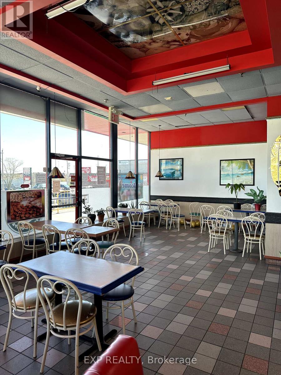 Prime Ajax corner restaurant opportunity. Approx. 2,600 sq. ft. with seating for 100+ guests, three separate entrances, patio, and excellent corner-unit visibility with signage exposure on multiple sides. Currently operating multiple restaurant concepts under one roof, offering diversified revenue potential or flexibility for rebranding. Low rent with favourable lease terms. Seller is highly motivated and open to serious offers. Ideal for owner-operators or investors in one of Durham Region's busiest commercial corridors. (id:64974)