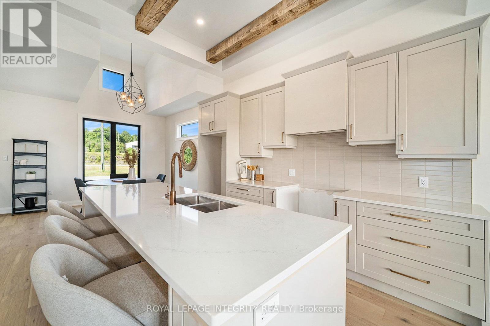 Stunning Custom-Built Bungalow with Walk-Out Basement overlooking Upper Rideau Lake. Welcome to your dream lakeside retreat! This brand-new custom bungalow offers refined living overlooking the waters of Upper Rideau Lake and the Big Rideau. Thoughtfully designed with top-quality finishes throughout, this home features rich hardwood flooring on the main level, a built-in coffee bar for effortless mornings, and three walkouts that showcase breathtaking lake views from nearly every angle.The open-concept layout combines luxury and comfort, ideal for entertaining or simply relaxing in natures tranquility. The fully finished walk-out basement adds exceptional living space, complete with elegant luxury vinyl flooring and seamless access to the tranquil back yard. Located just minutes from the charming village of Westport, Ontario, you'll enjoy boutique shopping, dining, and a vibrant community all while immersed in the natural beauty of the Rideau Lakes region. Whether you're looking for a full-time residence or a luxurious seasonal getaway, this rare offering blends modern craftsmanship with the best of lakeside living. Annual Homeowner Association Fees of $60 per month includes private road maintenance, road snow removal, common area grass cutting, insurance for private road/common areas. Landscaping and finishing will be complete before occupancy. Comes with a 7 Tarion Warranty and Pre Delivery Inspection.** Taxes not yet assessed. 24 hour irrevocable on offer. (id:64974)