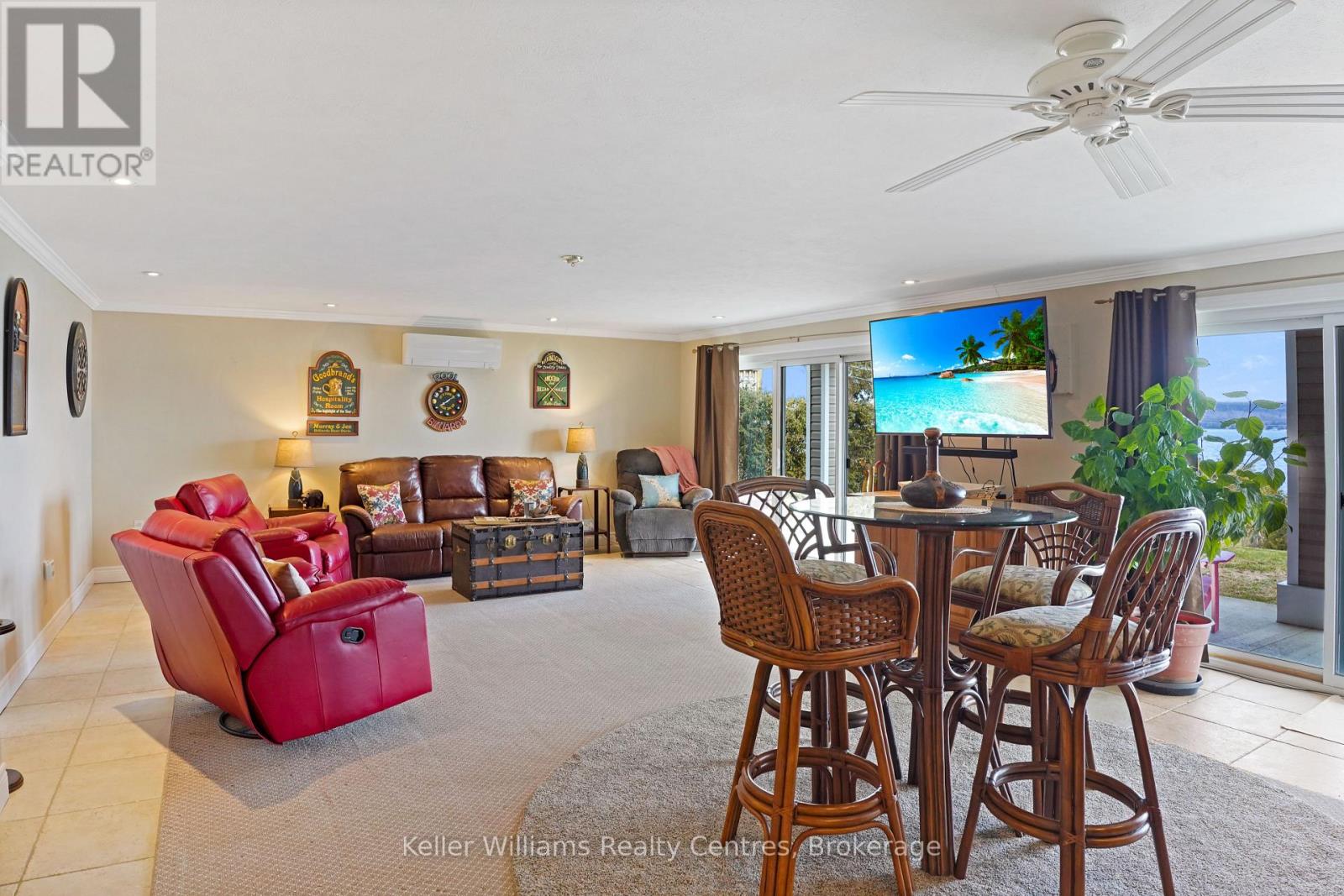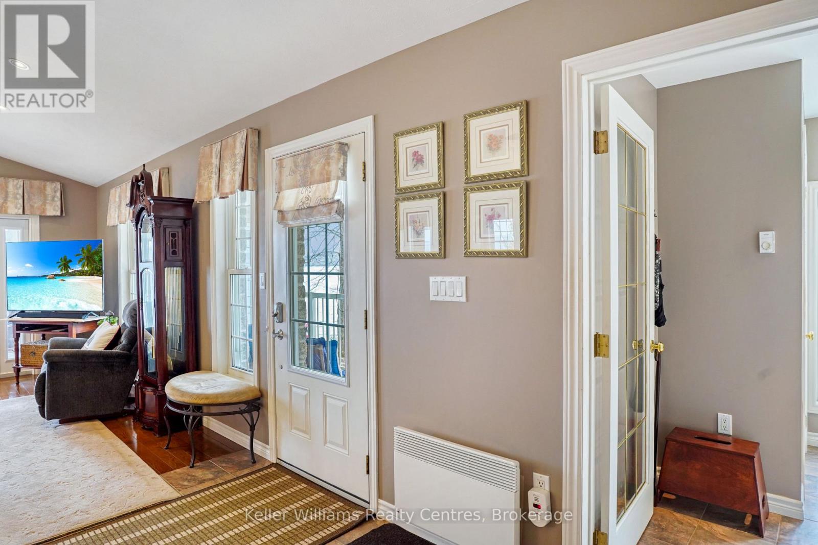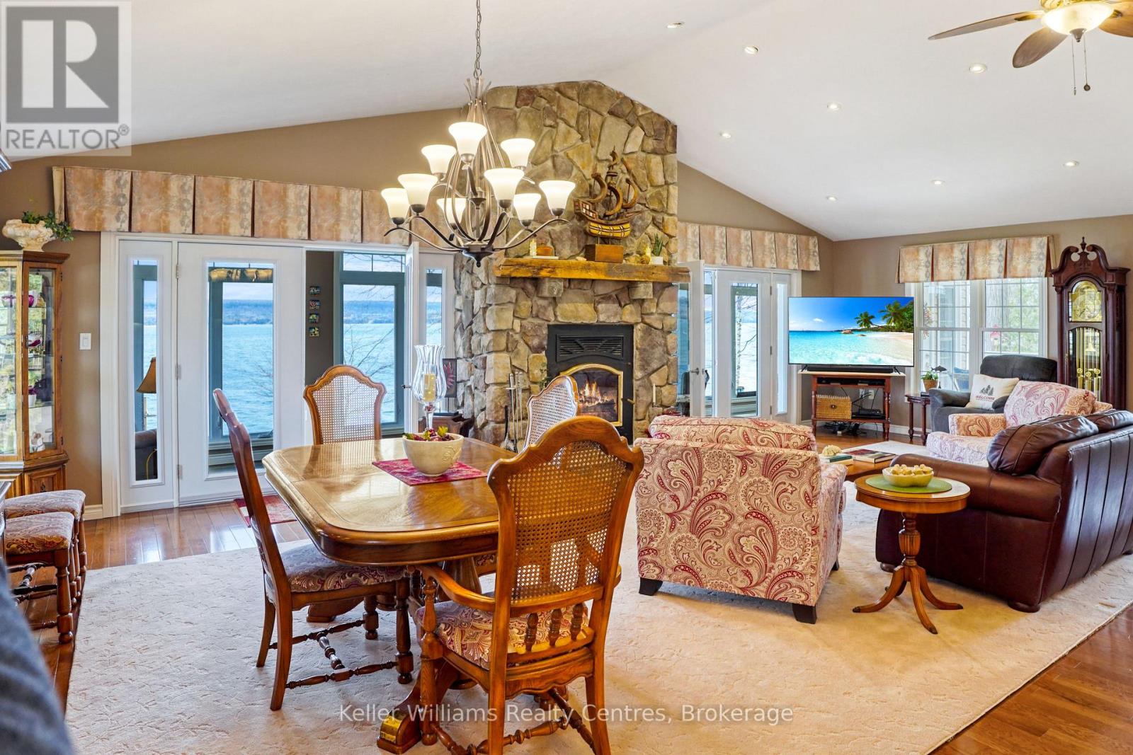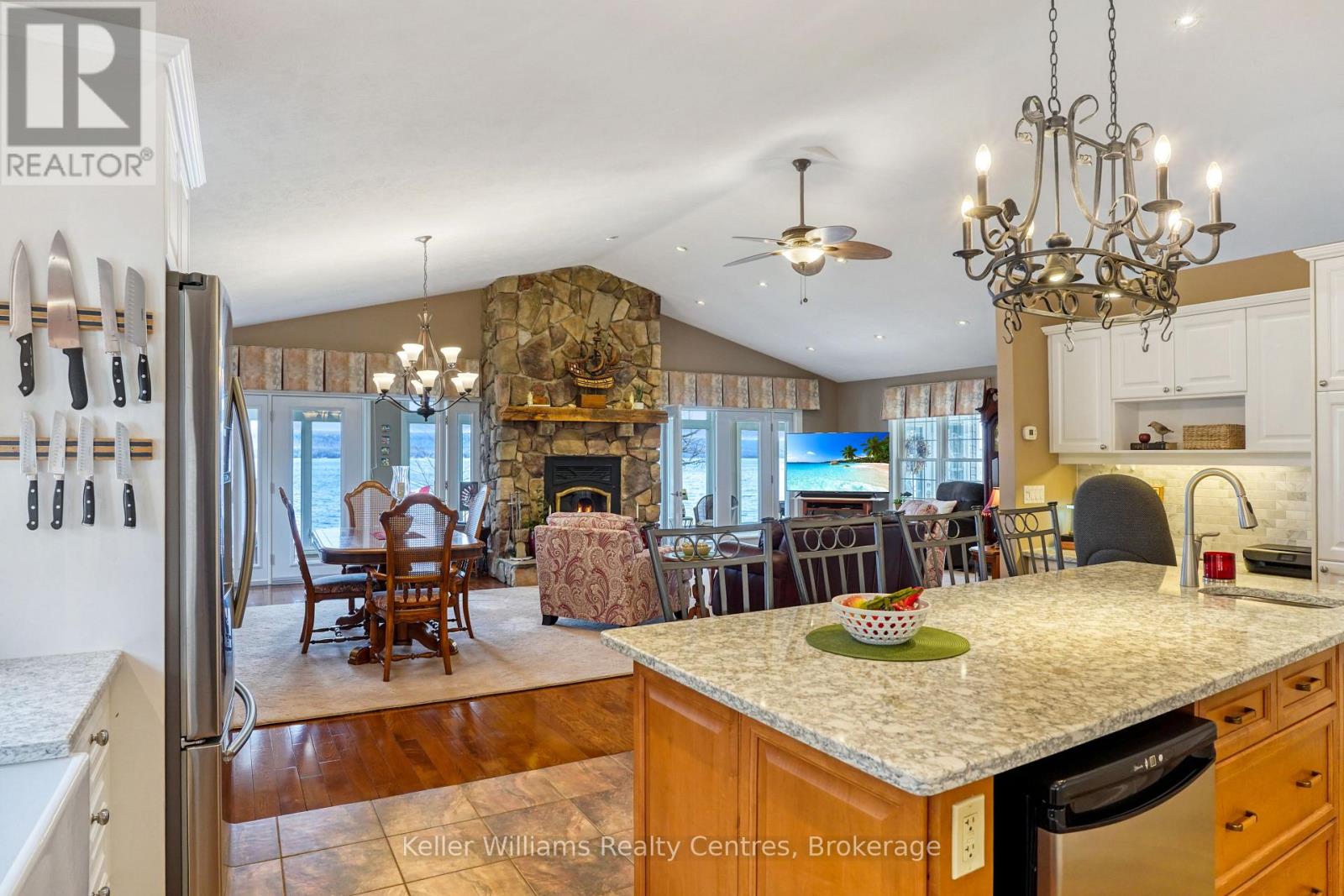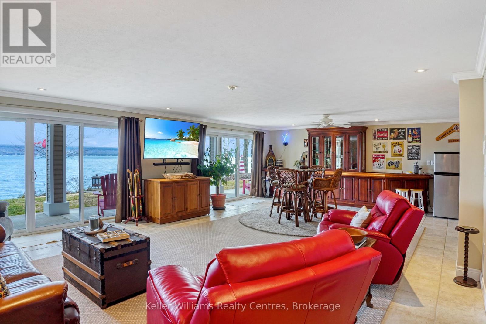 Pristine Waterfront Sanctuary on Colpoy's Bay Experience the pinnacle of Bruce Peninsula living with this custom-built legacy home, offered for the first time by its original owners. Boasting 125ft of premium shoreline on Colpoy's Bay, this property is a rare masterclass in waterfront design, created for family memories and effortless entertaining. The Waterfront & Grounds with a stunning landscaped lot features a gentle slope to the water's edge, providing easy access for swimming or docking your boat. Enjoy unparalleled views from multiple vantage points, including two water access points, expansive waterside decks, and a dedicated viewing deck. The lush gardens offer several private sitting areas to soak in the serene Georgian Bay atmosphere. Main Level Luxury: The open-concept interior is designed to keep the water in sight from almost every room. Chef's Kitchen: Features soaring cathedral ceilings, quartz counters, and a large central island. Sunroom: A bright 3-season retreat with panoramic views and double-door access. Primary Suite: An expansive retreat with double doors leading to a courtyard and the triple detached workshop. Flexibility: A large laundry room offers potential as an extra bedroom, complemented by a 4pc bath and 2pc powder room. The central living area is anchored by a cozy fireplace for cool lakeside evenings. Lower-Level Entertainment: The walk-out lower level is a dedicated hub for guests, featuring a large family room with a custom bar and direct access to the waterside patio. Two oversized bedrooms, a 3pc bath, and a massive storage room complete this functional space. Prime Location Located in a premier retirement and recreation enclave, you are just 7 minutes from Wiarton, offering quick access to hospitals, banks, groceries, and shops. Discover the perfect blend of privacy, custom craftsmanship, and breathtaking waterfront enjoyment on the Bruce Peninsula. (id:64974)