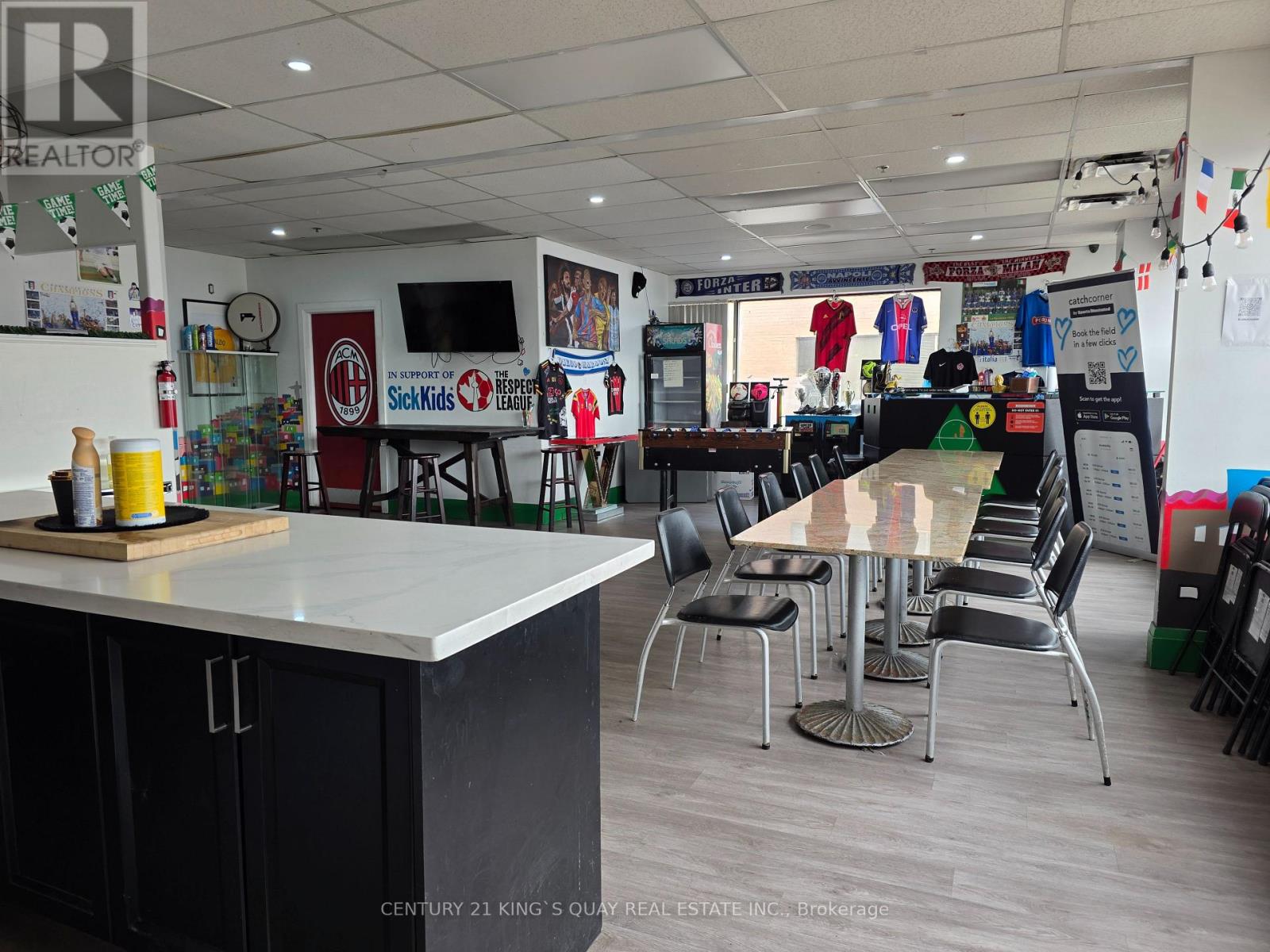 GTA Soccer Club and Events Facility for sale. Indoor Soccer Business utilizing 7,410 square feet. Established in 2012 and running successfully for over 14 years now. Solidly established steady clients! // 120x40 Indoor Soccer Training Turf Space, that rents for $185 plus GST per hour with additional venue and party space that can generate additional hourly rentals! OPEN 7 days a week! Very Easy To Operate. Needs only ONE Employee that Opens, Maintains & Closes the business. // The Premises boasts High End Established Clubs Contracts & Private Day Time Clientele. Prime Time Evenings Hourly Bookings Open Late. Popular for Birthday Parties & Private Events. 1 man easy turnkey operation. Open 7 Days a Week. 2nd Floor is a Fitness Club subleased for $2,700 monthly additional income. // Winter is the Predominant Busy Business Schedule. Potential for Day Care / Camps & other additional business activities! Professional Business Valuation Report including future projected income growth prepared by Palm Financial Solutions Inc. available upon request to qualified buyer. (id:64974)
