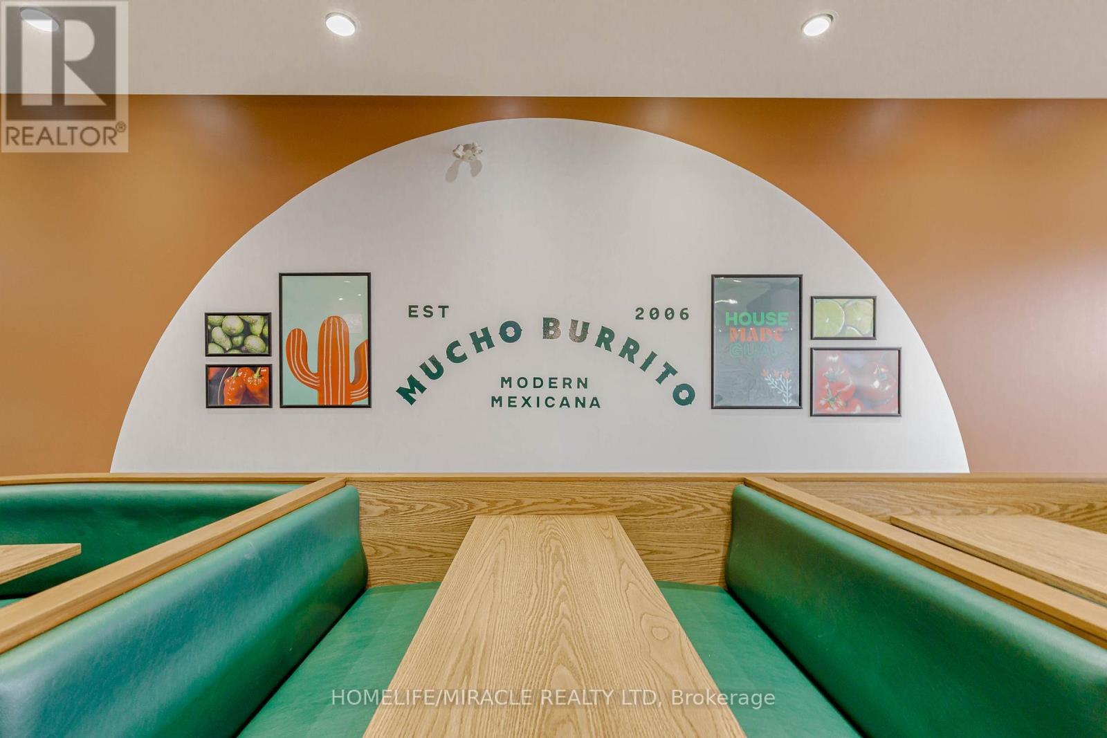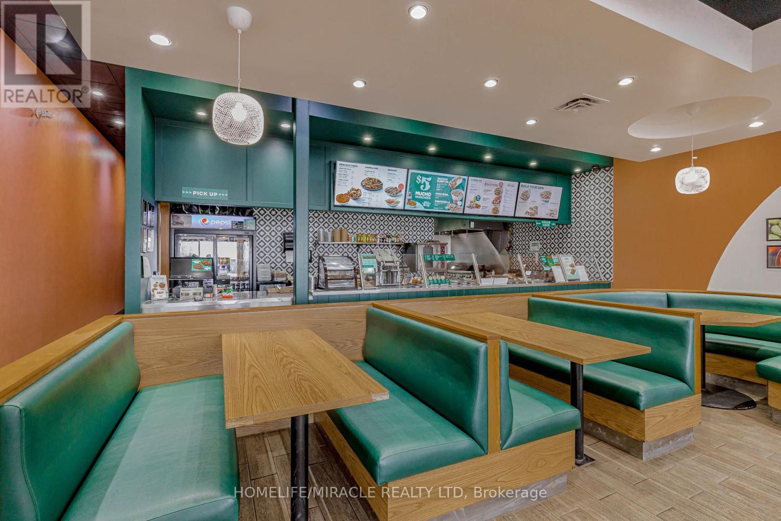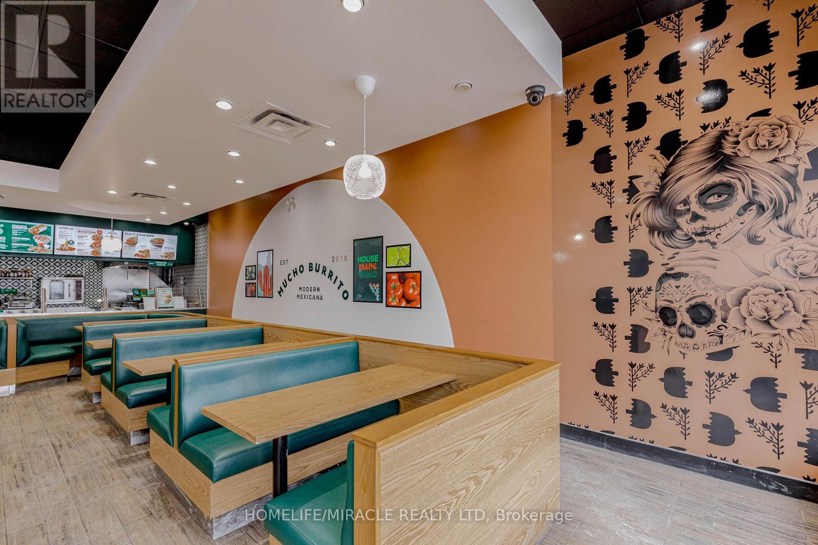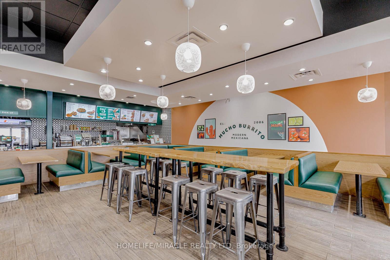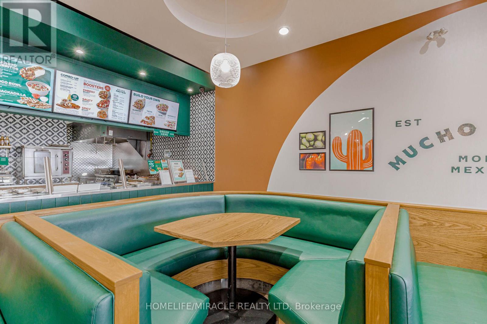 Mucho Burrito for Sale in Ajax, ON. Located at the busy intersection of Bayly St W / Harwood Ave S, surrounded by fully residential neighbourhoods. Close to schools, highways, offices, banks, and major big-box stores. Operating since 2014 with strong sales and growth potential. Avg. Monthly Sales: $53,650, Rent: $8721.71/m incl. TMI. Lease Term: Existing till May 2026 + 5 + 5 years option to renew, Royalty: 6%, Advertising: 4%, 68 seating with Turnkey operation. (id:64974)