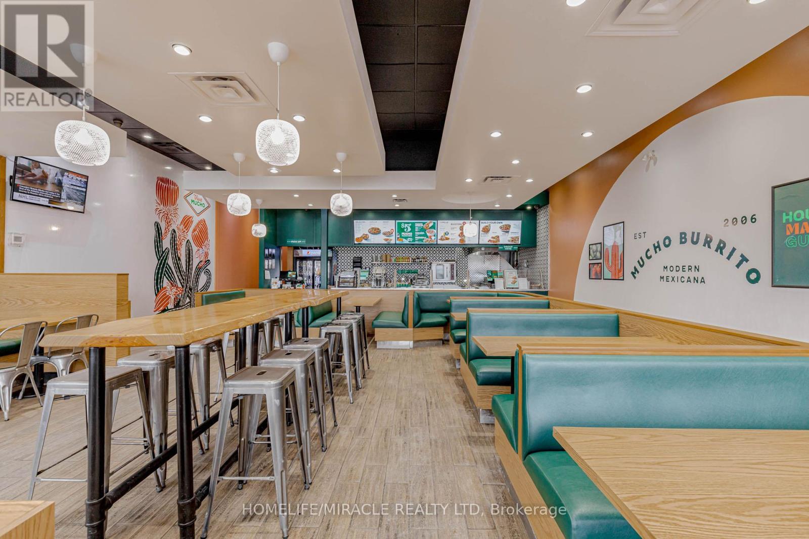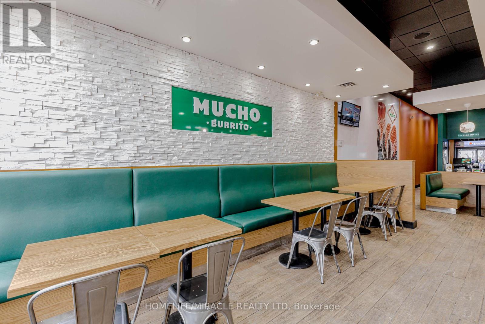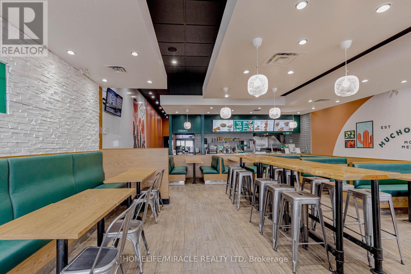 Mucho Burrito for Sale in Ajax, ON. Located at the busy intersection of Bayly St W / Harwood Ave S, surrounded by fully residential neighbourhoods. Close to schools, highways, offices, banks, and major big-box stores. Operating since 2014 with strong sales and growth potential. Avg. Monthly Sales: $53,650, Rent: $8721.71/m incl. TMI. Lease Term: Existing till May 2026 + 5 + 5 years option to renew, Royalty: 6%, Advertising: 4%, 68 seating with Turnkey operation. (id:64974)