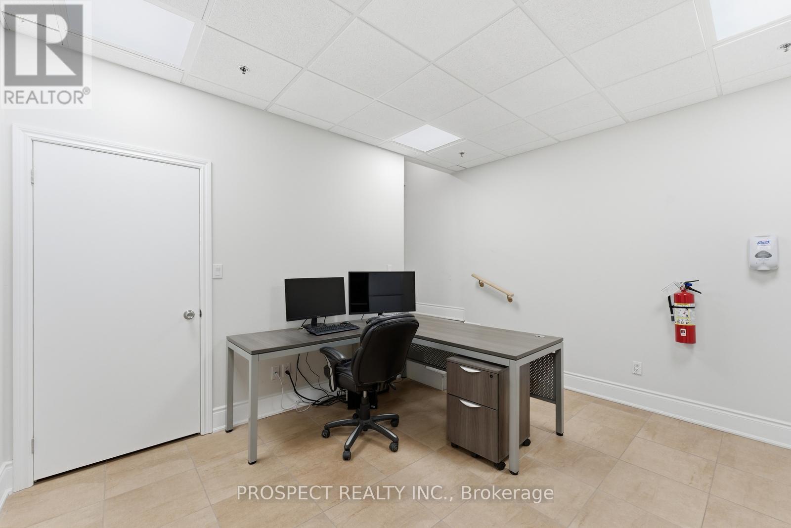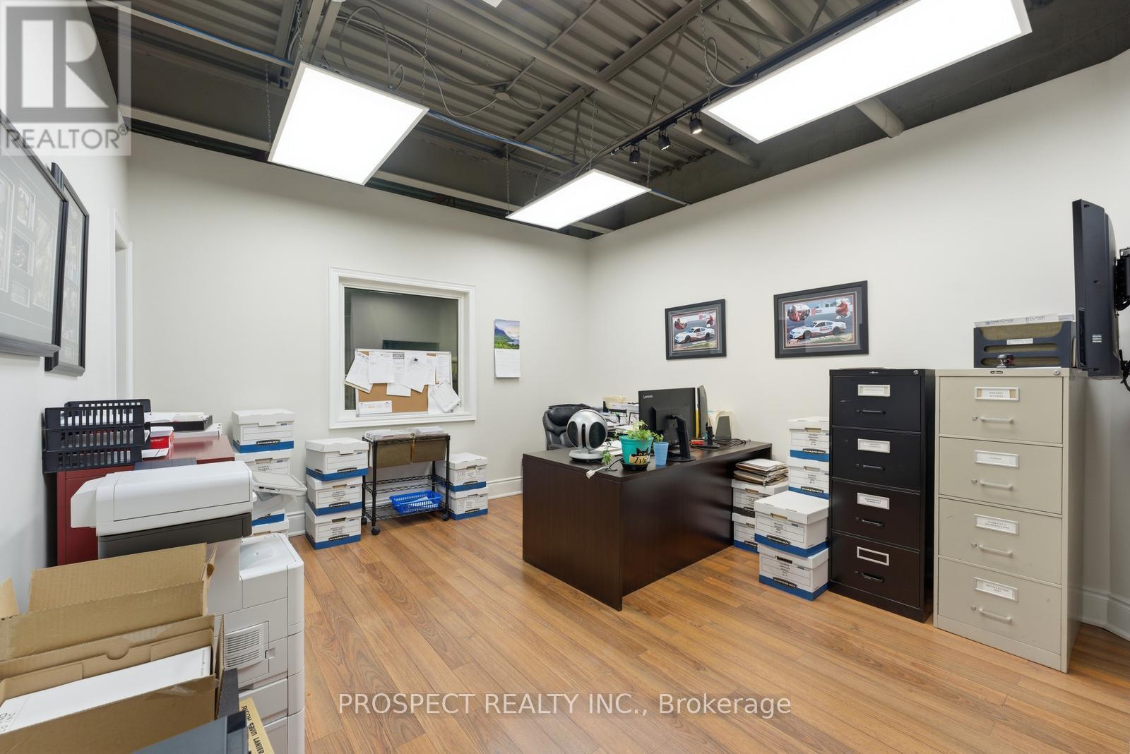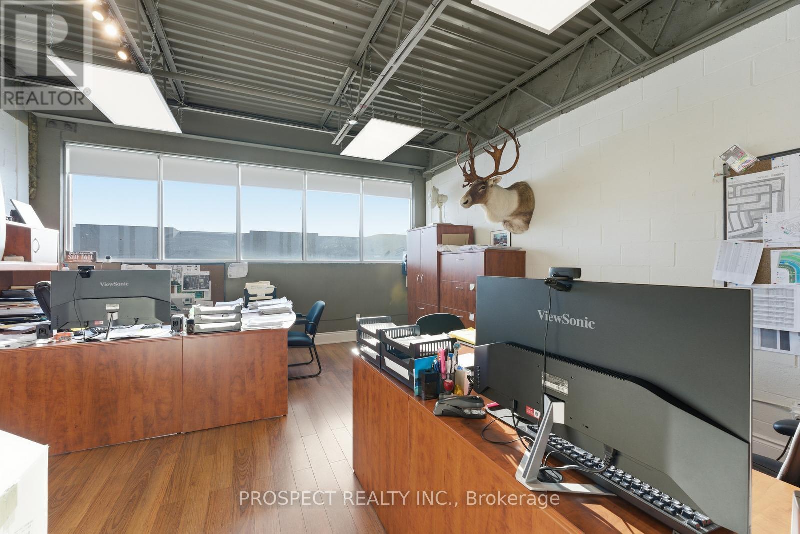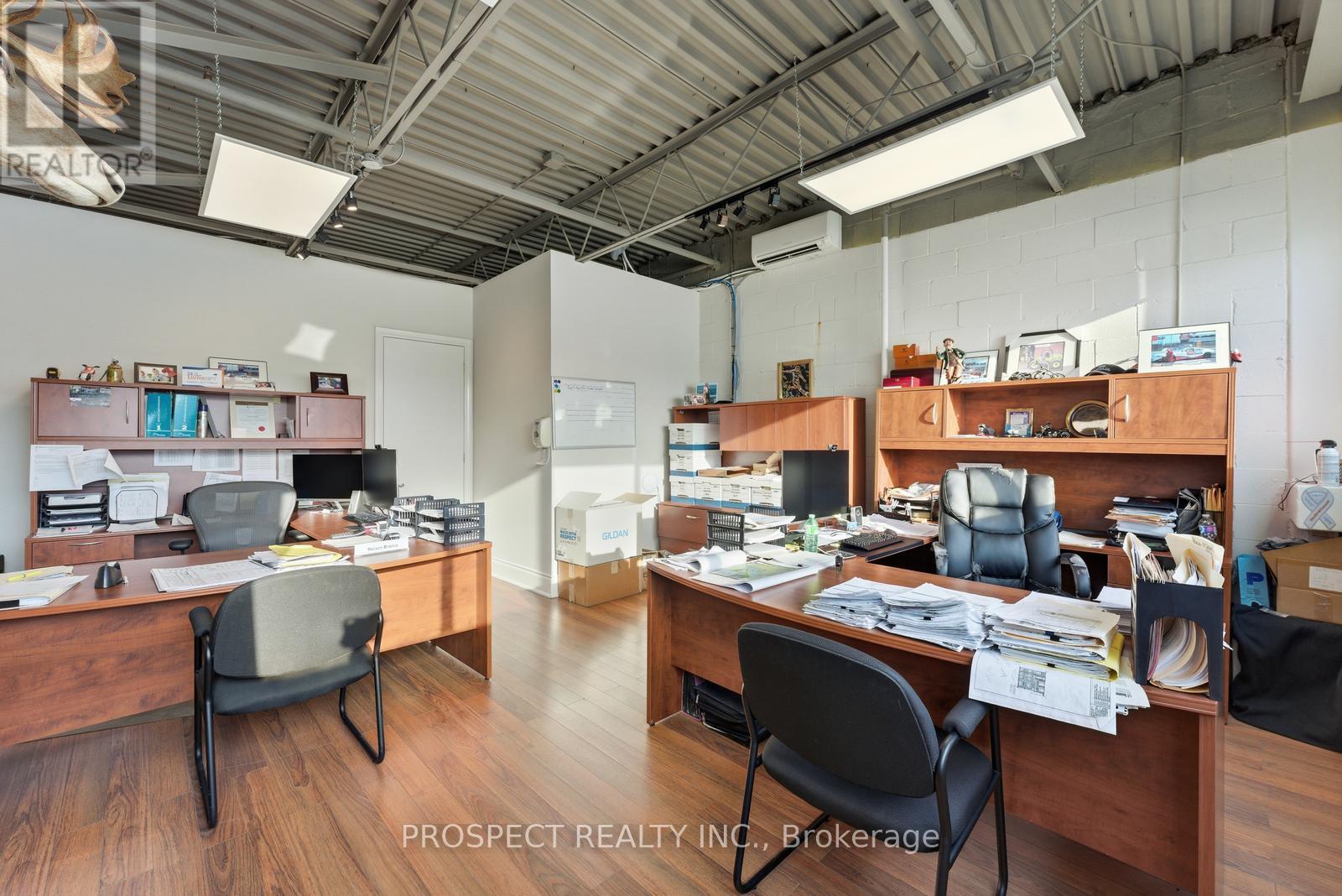 This unit is a rare opportunity to grow your business or start a new one. It is clean and well maintained and owned by the same company for almost 20 years. There is ample office space with a reception area and a board room. Equipped with two washrooms, one of which is accessible. The warehouse is 574 sq ft with 20 ft of clear height. 1 drive in door, 14 ft wide. The unit has 3 reserved parking spots in front of the unit. The complex is well maintained with many businesses surrounding the area. Close to main roads such as Hwy 50 and Coleraine and close to Hwy 427. 2nd floor windows allows lots of light in the unit on both first and second floor. Maintenance fees include: landscape, snow clearing, annual fire inspection, water. (id:64974)