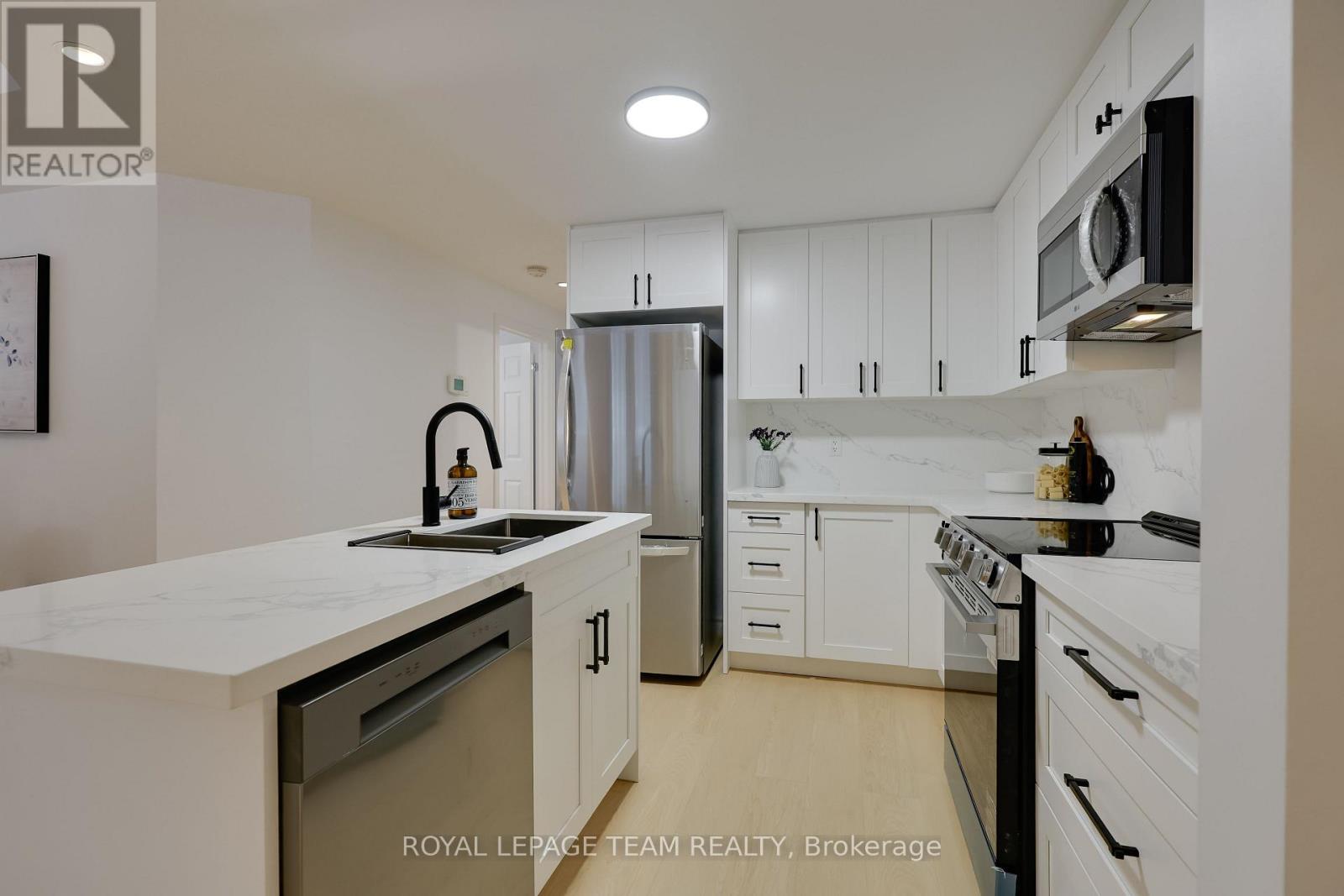 Welcome to this beautifully renovated condo located in the heart of Centrepointe, offering comfortable and convenient living in one of Ottawa's most desirable communities. This bright and modern unit features 2 spacious bedrooms plus a versatile office, along with 1.5 bathrooms and one assigned parking space, making it ideal for professionals, students, or small families. The home has been fully renovated from top to bottom, featuring a brand new kitchen with contemporary cabinetry, stainless steel appliances, and quartz countertops. Luxury vinyl flooring, fresh paint, and modern finishes create a clean and stylish interior, while the cozy gas fireplace adds warmth and character to the living area. Large windows bring in abundant natural light, and the private balcony with designated BBQ space provides a perfect spot for relaxing or entertaining outdoors.Located in a quiet end-unit setting backing onto green space, this condo offers both privacy and convenience. Residents enjoy easy access to parks, walking trails, and nearby amenities, with Centrepointe Park just steps away. The property is also minutes from Algonquin College and College Square shopping, with restaurants, grocery stores, and daily conveniences all close by. Public transit is extremely accessible with a bus stop nearby, making commuting around Ottawa simple and convenient. This move-in ready condo combines modern upgrades, a functional layout, and a prime location, offering a comfortable and low-maintenance lifestyle in the Centrepointe community. (id:64974)