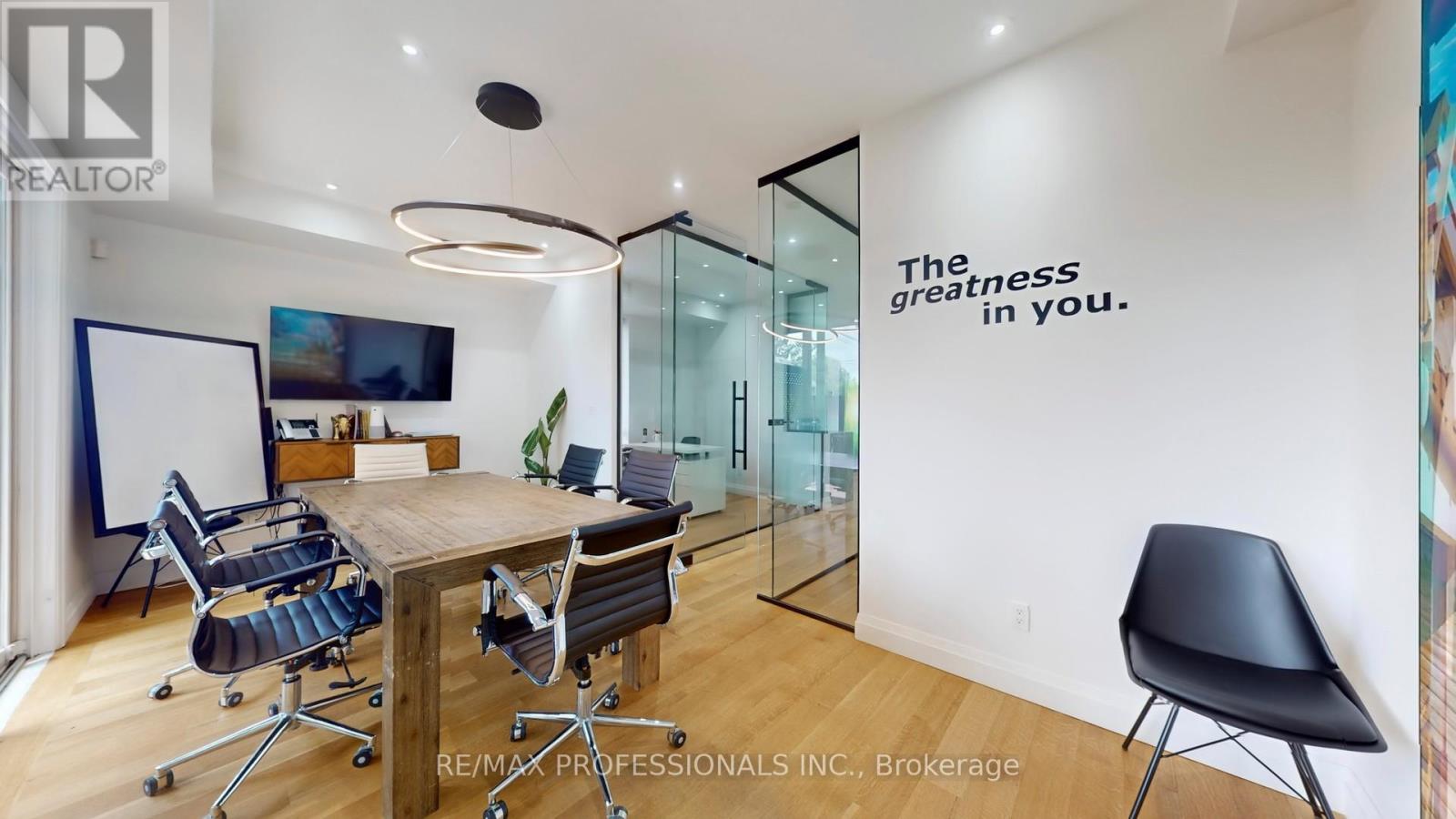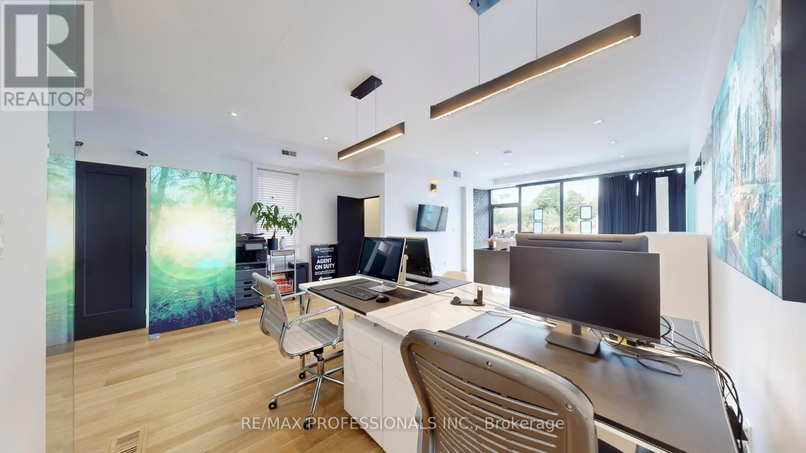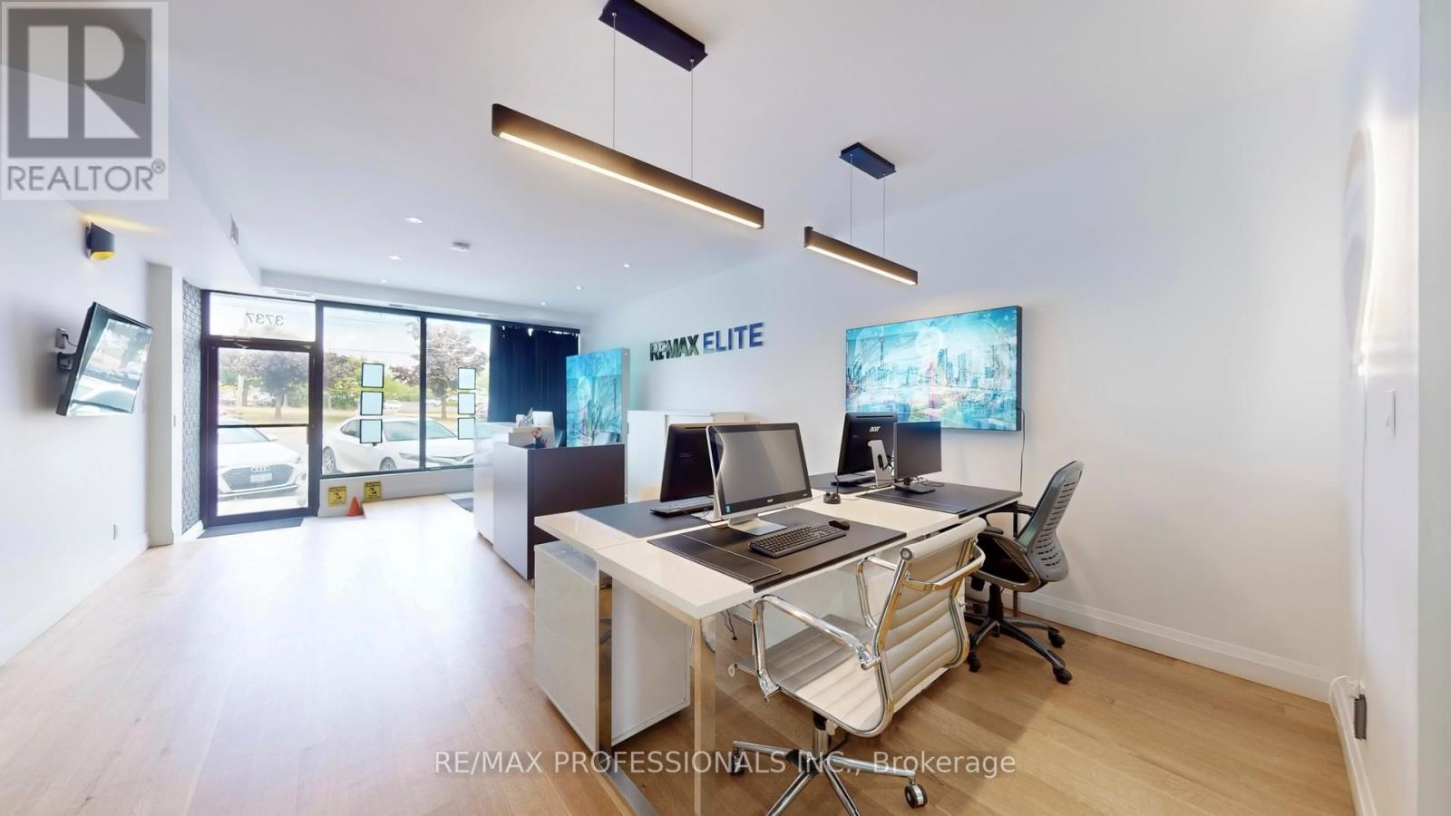 Modern, fully renovated office space available for lease in a prime, convenient location in Long Branch. This turnkey unit features a sleek, professional design with high-quality finishes throughout. Functional layout suitable for a variety of professional uses including real estate, legal, accounting, consulting, medical, and other office-based businesses. The space includes a kitchenette, two private washrooms, and a well-designed mix of private offices and open workspace. Bright, clean, and move-in ready. Office furniture can be negotiated for an additional cost, offering a seamless setup for tenants looking for a fully equipped solution. Located in the growing Long Branch community, this area continues to see strong residential development, increased foot traffic, and ongoing investment along the Lakeshore corridor. Its proximity to the waterfront, established neighborhoods, and new mixed-use developments creates a steady and diverse client base. Excellent connectivity with nearby GO Transit, TTC routes, and major highways makes it easily accessible for both clients and staff. Ample parking and easy access to surrounding amenities including cafes, restaurants, and retail services. (id:64974)