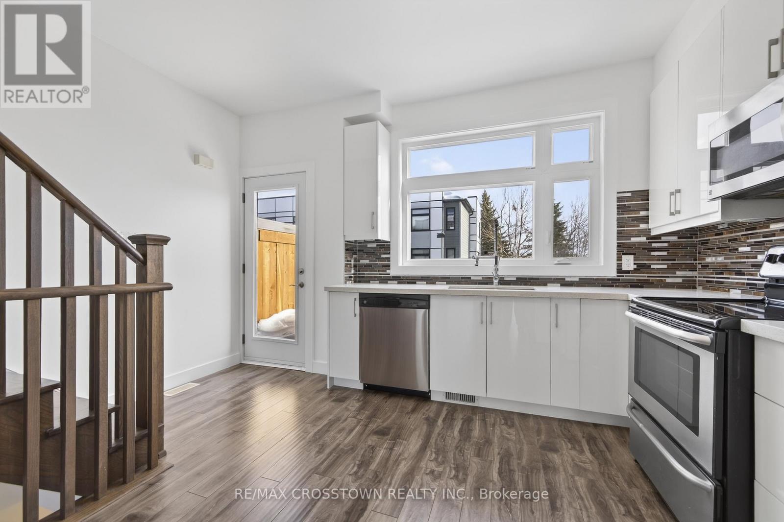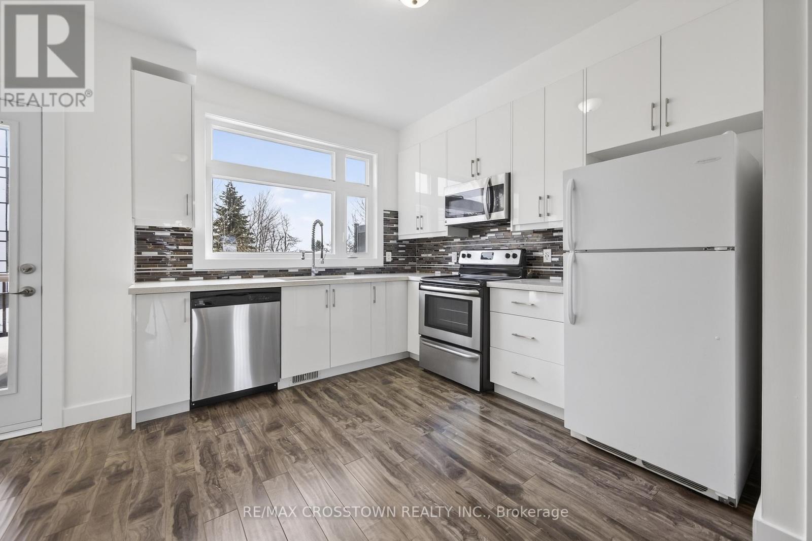 Must see for all buyers & investors! Modern 3 bedroom Townhouse with self-contained unit on ground floor that includes 2 separate entrances, a full kitchen and 3-pce. bath. 9Ft Ceilings on Main floor and features a Large Open Concept Kitchen W/Quartz Counter Tops, Tiled Backsplash & 4 S/S Appliances and a walkout to private balcony. This level also includes a generous sized Great room and a 2-pce. powder room. Laminate and tile floors and throughout (no carpets), oak railings and staircase. Convenient stacked Washer & dryer on top floor (with the bedrooms). The Primary Bedroom Boasts A Walk-In Closet And Ensuite Bathroom. Self-contained unit on the ground floor can be a secondary suite for extra income or an in-law suite in a quite self-contained unit - 3=pce. washroom & kitchenette included. The home has been fully freshly painted. Close Distance To Shops, Schools, Parks, Holly Rec Centre and minutes To Hwy 400, GO station and beach (id:64974)