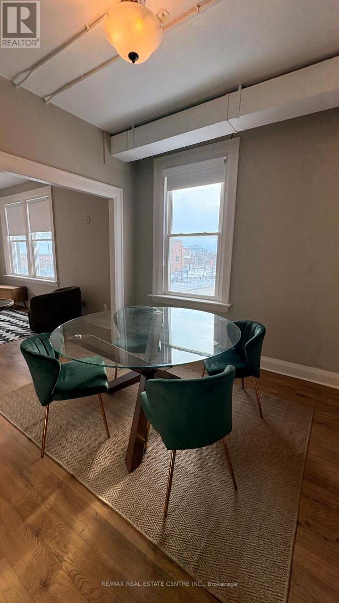 Welcome home to a sun-filled retreat in the heart of the city. This unique corner building features rare triple-exposure-South, West, and East-ensuring every room feels open and airy. Located in a prime central district, you are walking distance to local cafes, restaurants, and the downtown core, while enjoying the stability of a well-maintained, established building.Historic downtown Oshawa location. Beautifully renovated 1-bedroom unit with a soft loft feel Featuring a modern vintage aesthetic and offered fully furnished, with upscale appeal, this stylish space is move-in ready. An unbeatable location near Ontario Tech University, Durham College, and Trent University makes it ideal for students and young professionals alike. Unit comes fully furnished with beautiful brand new upscale furniture. (id:64974)