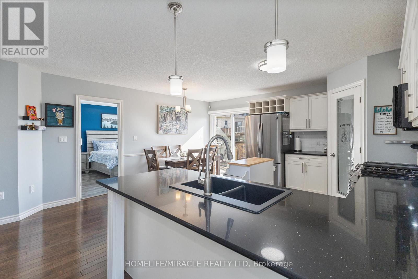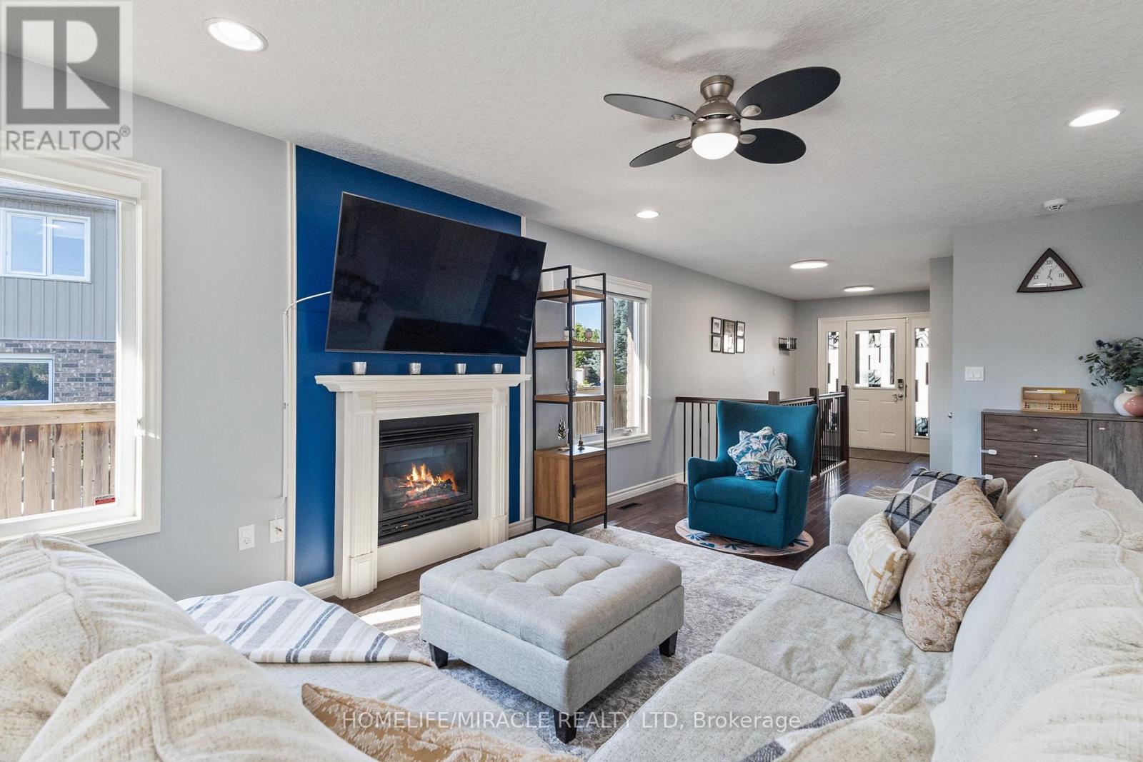 Welcome to one of North London's most desirable communities! This stunning home blends comfort, style, and thoughtful upgrades in every corner, offering plenty of space for both everyday living and entertaining. The main floor features a bright open-concept design with a cozy gas fireplace and a custom kitchen complete with quartz countertops, backsplash, custom cabinetry, stainless steel appliances, and an under-mount sink. From the dining area, step out to your private composite deck, fitted with a custom awning and overlooking quiet green space-perfect for morning coffee or evenings with friends. Upstairs, the primary suite is a true retreat with a tray ceiling, a large walk-in closet, and a spa-like 5-piece ensuite featuring a soaker tub and a glass-enclosed shower with custom tile. The fully finished lower level expands your living space with a spacious great room featuring a custom accent wall, a third bedroom, bathroom, laundry, and abundant storage. A dedicated fitness area and a generous recreation room provide endless flexibility, making it ideal for guests, hobbies, or family fun. Recent updates include professional paint throughout, hand-scraped hardwood and luxury flooring on both levels, upgraded easy-close cabinetry, intricate tile work, and professional landscaping. An oversized double garage with inside entry and a fenced yard add convenience and curb appeal. Ideally located just steps from excellent schools, parks, trails, and shopping, this home combines elegance, functionality, and a low-maintenance lifestyle in one of London's premier neighborhoods. Whether you're hosting a dinner party, relaxing in your backyard oasis, or exploring nearby amenities, this property truly has it all and is move-in ready for its next owner. Don't miss the chance to call this gorgeous home your own schedule your showing today! (id:64974)