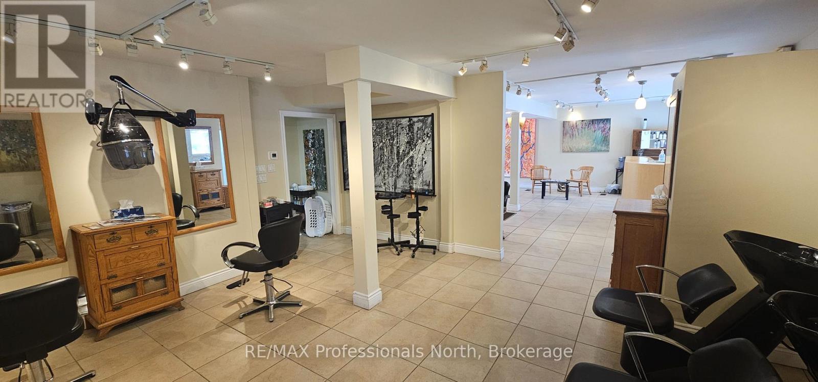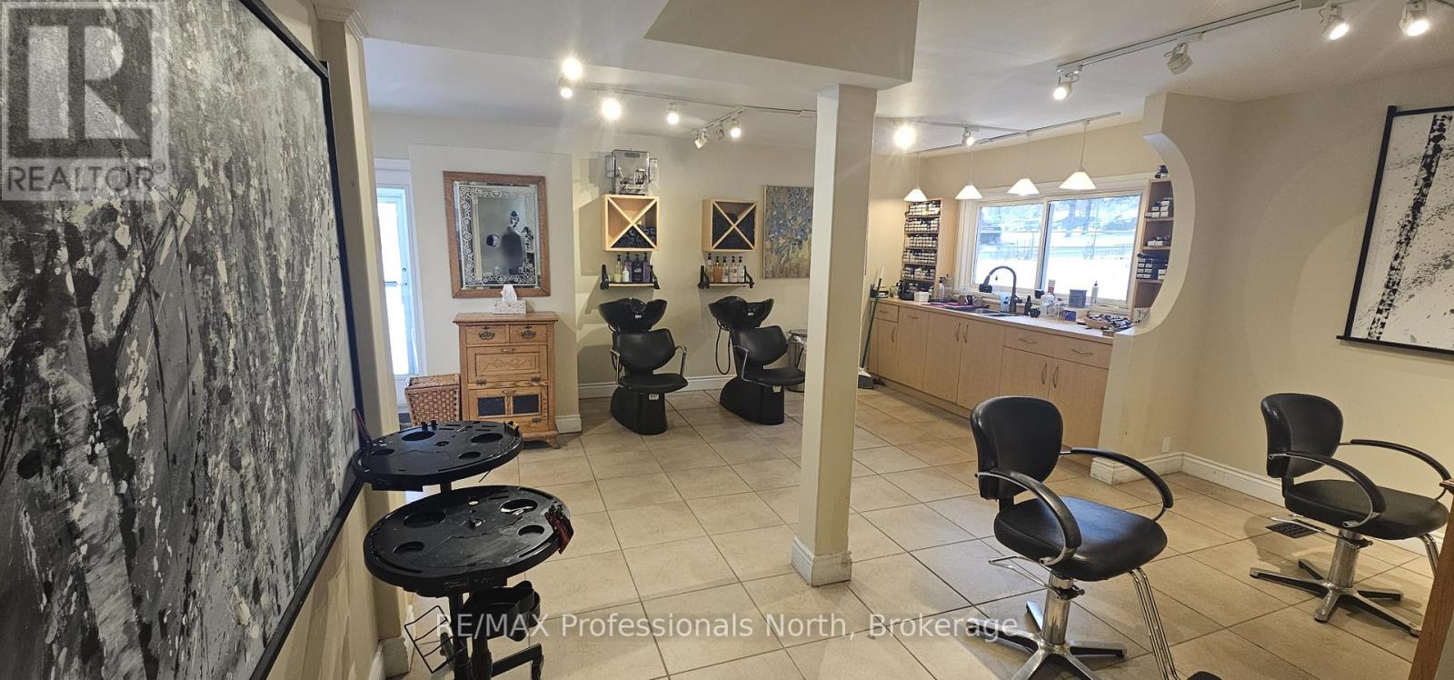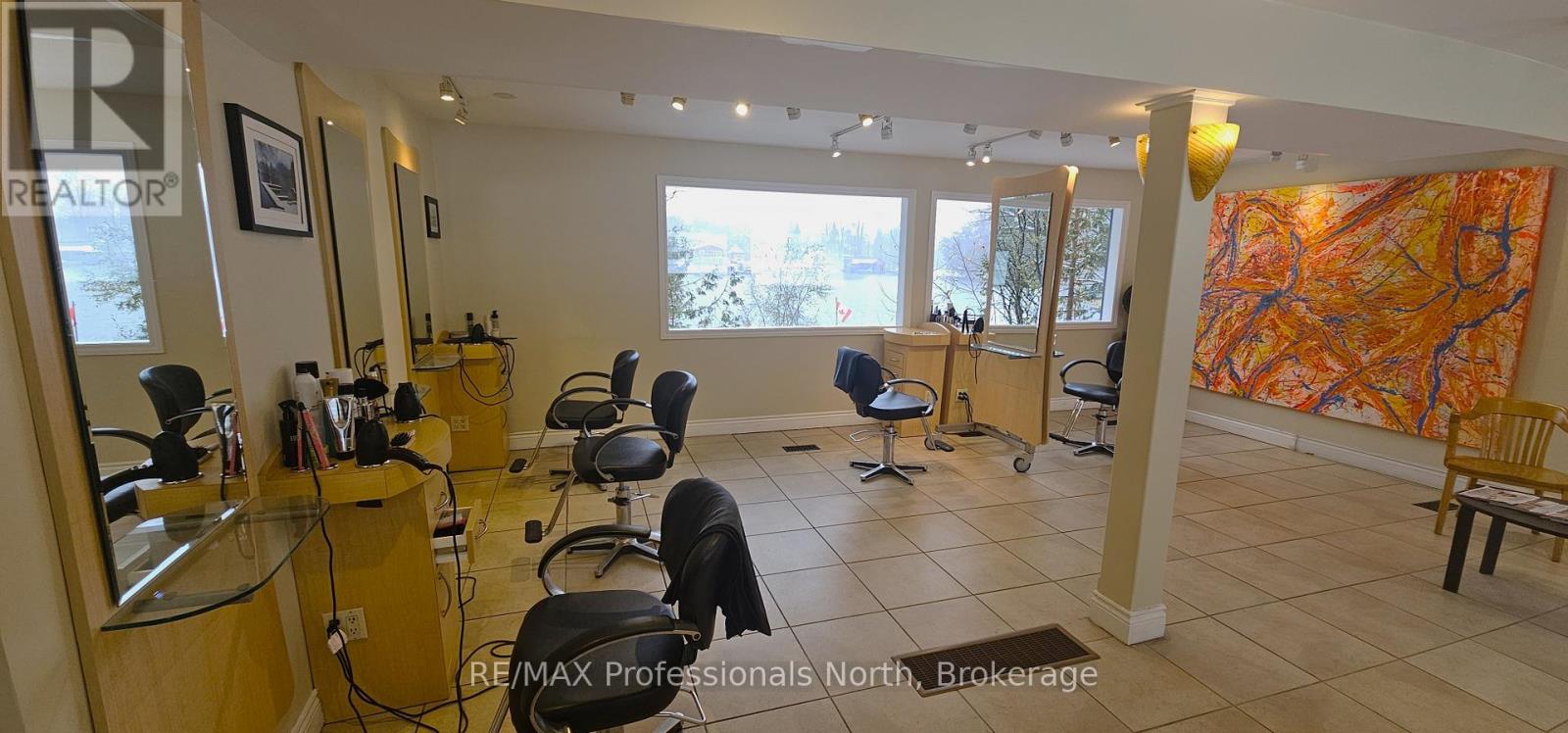 Unique opportunity to run your own salon and spa on the shores of the Muskoka River in downtown Huntsville. For Lease is approximately 800 square feet of space on the main floor with additional space for use in the basement. Currently operating as "Alberto Salon and Spa", the opportunity exists for a new operator to take over and bring their own creative style to the location, or explore other ventures. Situated conveniently beside the Huntsville Summit Centre and Huntsville High School, there is no shortage of foot and vehicular traffic, not to mention boat traffic in the Summer. Ample parking, great exposure, and a one-of-a-kind location make this memorable piece of Huntsville's past a rare opportunity. Price is for space only, and is "net" of HST, proportionate share of utilities, and maintenance. Most chattels are negotiable. Per Town of Huntsville Zoning by-law amendment C3-1772, the only permitted use shall be a hairdressing salon and spa, with a restaurant (excluding drive-through) being an additional permitted use within the existing commercial space. Potential Tenant(s) to conduct their own due diligence regarding existing and additional uses. Seeking minimum 3 year term. (id:64974)