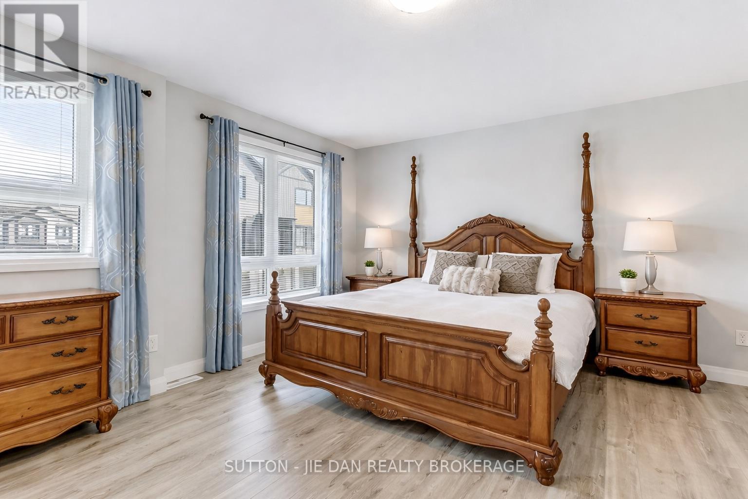 Newer townhouse North London Walk Out! Sought-after Sunningdale community with minutes drive to Masonville Mall, Western university. This stunning three-bedroom, two-and-a-half bath end-unit townhome offers one of the very best views in Applewood. The main level features an inviting open-concept layout with a bright living room and a modern kitchen complete with stainless steel appliances and quartz countertops. Step out onto your oversized deck to enjoy breathtaking views, perfect for relaxing or entertaining.Upstairs, youll find three spacious bedrooms, a convenient laundry area, a four-piece main bath, and a private ensuite. The fully finished lower level adds even more living space with a generous family room that walks out to your backyard. Tankless water heater. End Unit! Ideally located close to the Stoney Creek Community Centre, Masonville Mall, and countless other amenities, this home also has school bus to Centennial P.S, St Catherine Catholic Elementary school, St John French catholic Elementary school and Medway High School. (id:64974)