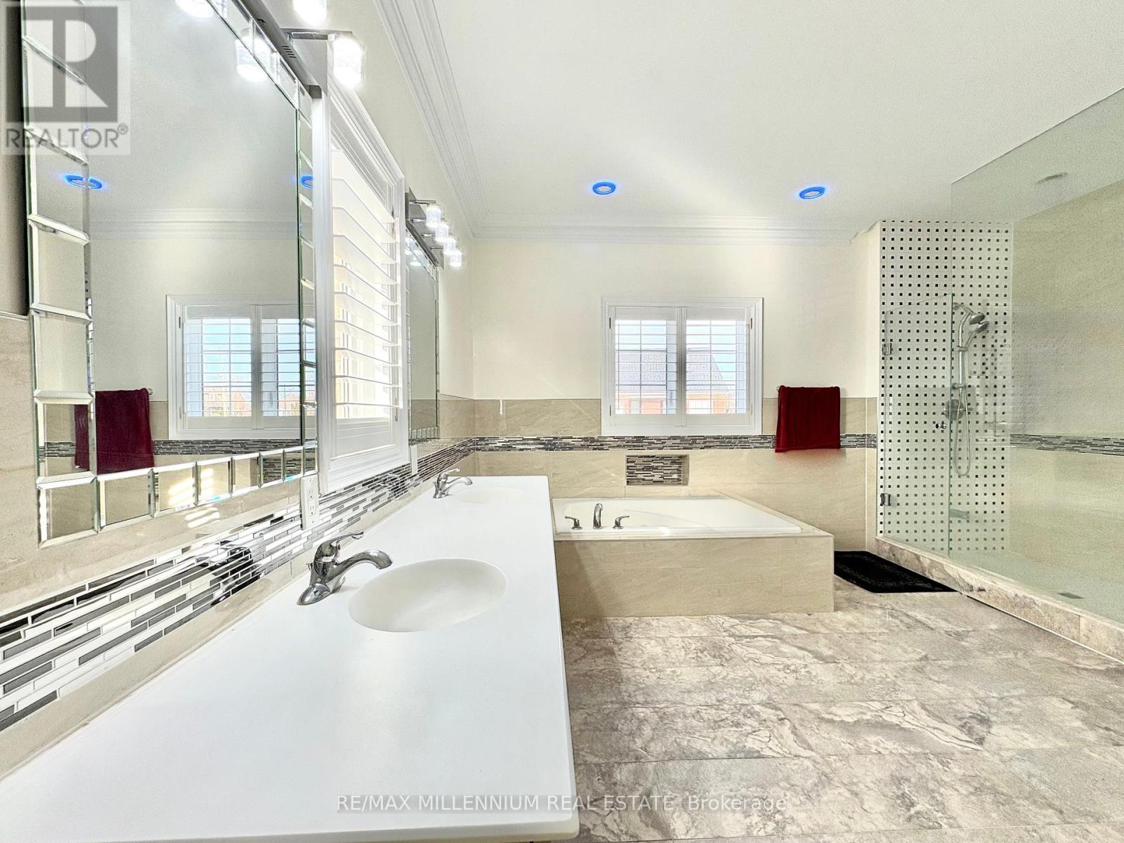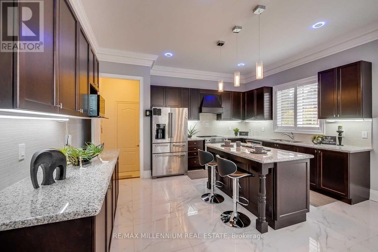 Welcome To 2 Anderson Ave! Executive corner home on a premium lot with no sidewalk, featuring a wide driveway with parking for up to 8 cars and a 3-car garage. This beautifully upgraded home offers 10 ft ceilings, 4 spacious bedrooms, 5 bathrooms, and a finished legal basement with separate entrance and 2 additional bedrooms. The primary suite includes 2 walk-in closets, and the basement offers rough-ins for a wet bar/kitchen and sauna.Loaded with high-end upgrades, including European-style crown moulding throughout, upgraded kitchen with granite countertops, backsplash and centre island, coffered ceiling in the family room, pot lights throughout, California shutters, heated floors in the primary ensuite, upgraded baseboards, high-end light fixtures, and 2 electrical panels.Large backyard and exceptional finishes throughout. almost 5000 square feet of living space!! A must see! (id:64974)