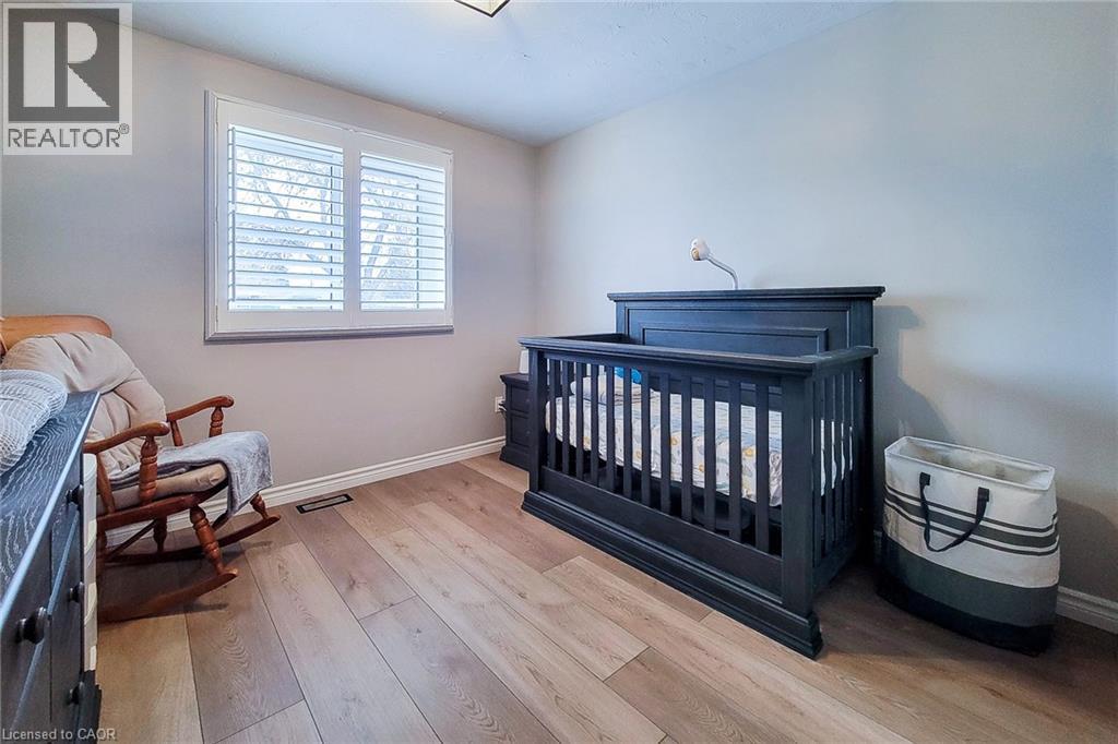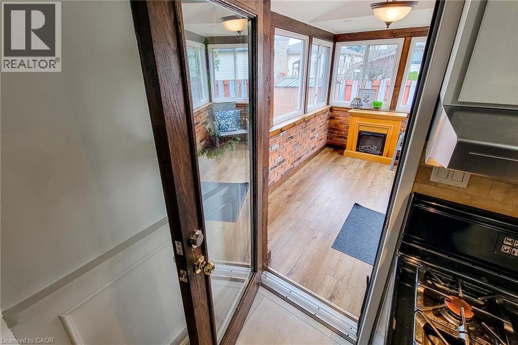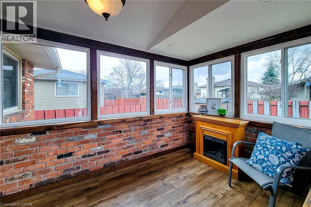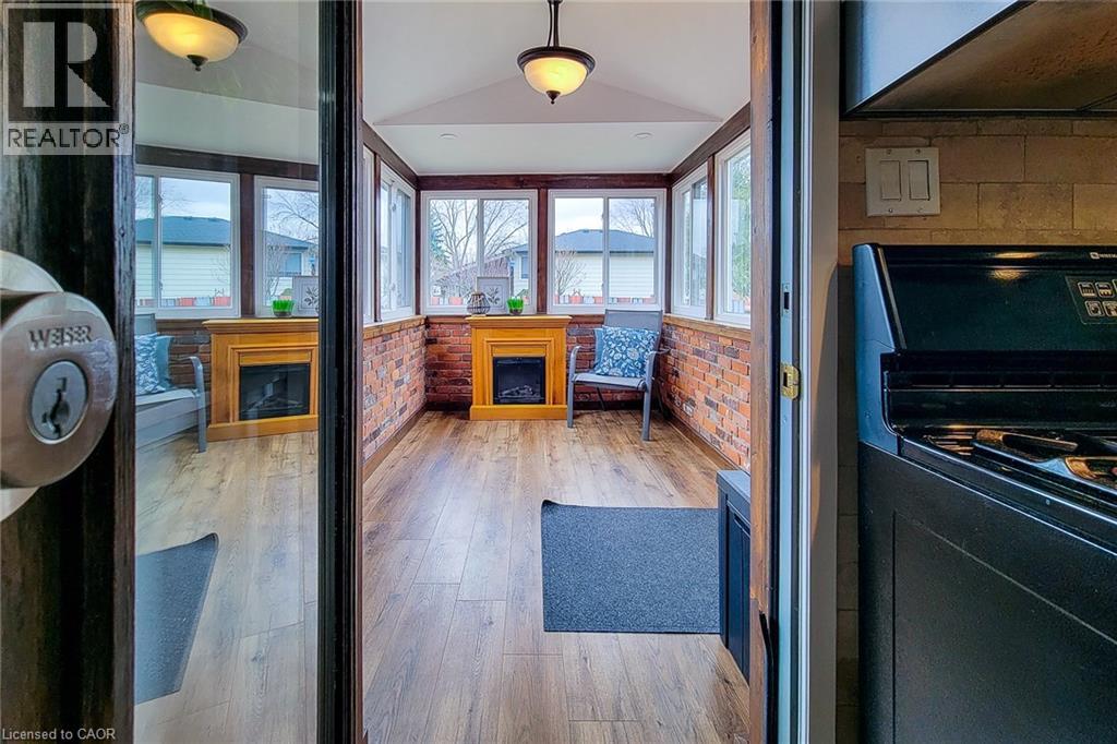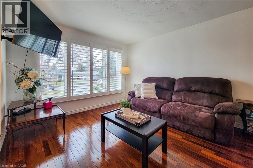 Welcome to this beautifully maintained raised ranch bungalow nestled in a quiet, family-friendly court in desirable Stoney Creek—where kids play, neighbours connect, and lasting memories are made. Offering just over 1,150 sq ft of bright, functional living space, this home features gleaming hardwood floors, California shutters, and a spacious open-concept living and dining area filled with natural light from large windows. The updated kitchen includes a brand new dishwasher and flows seamlessly into a sunroom addition, creating the perfect space to relax and enjoy views of the backyard. The main level offers three generously sized bedrooms and beautifully updated bathrooms finished in a modern white palette with stylish black accents. The raised ranch design provides a bright, fully finished lower level featuring a cozy family room with a wood-burning fireplace, an additional bedroom or office space, laundry, and ample storage. The lower level bedroom offers flexibility and can be converted back to a garage if desired. Step outside to your fully fenced backyard retreat, complete with a gazebo, updated deck, and two storage sheds—perfect for entertaining or relaxing. This home also boasts excellent curb appeal with a durable metal roof, new eavestroughs, and a furnace updated in 2025 for added peace of mind. Located within walking distance to schools, parks, and public transit, and just minutes from highway access, this home offers the perfect blend of comfort, convenience, and community. (id:64974)