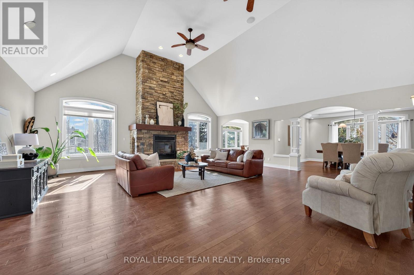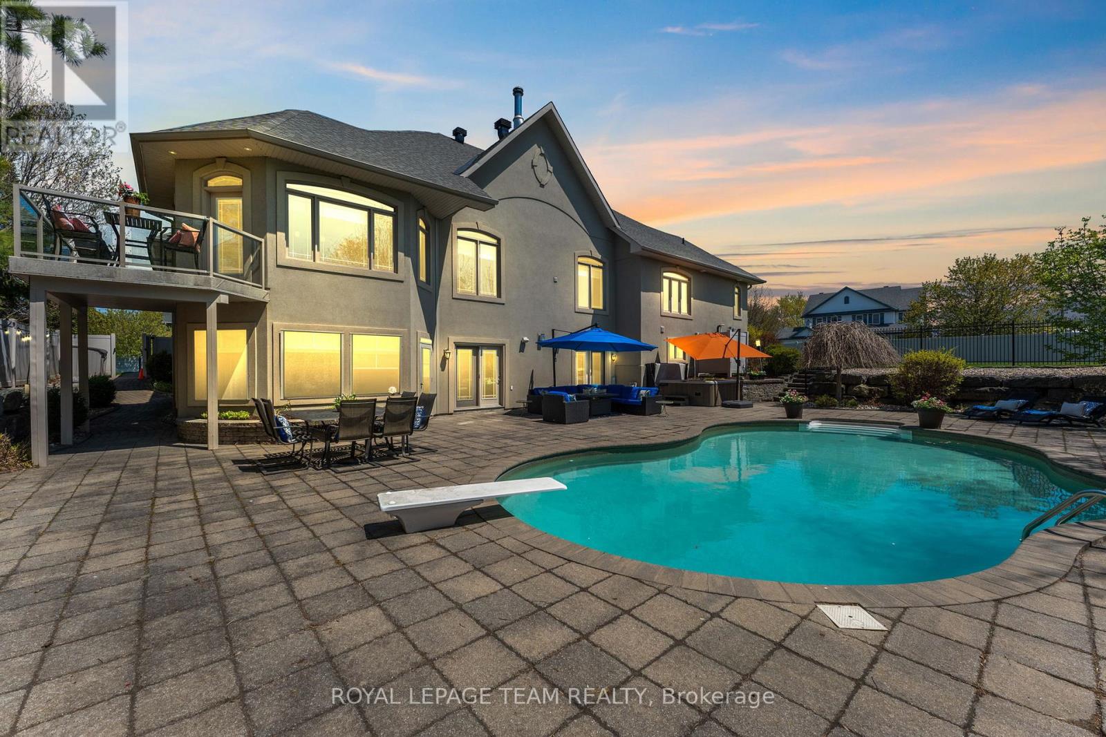WELCOME to 2 Beechgrove Gardens, an executive, majestic residence on a rare double lot in the heart of Stittsville. Beautifully landscaped front gardens & a charming brick walkway to the backyard create a warm, inviting setting for quiet mornings, evening strolls & outdoor living. Grand entrance opens to a sun-filled great room with soaring 16-ft ceilings & a striking brick fireplace anchoring the space. Offering nearly 6,000 sq ft of finished living space, this home blends comfort, function & timeless elegance. The kitchen features granite counters, S/S appliances, built-in oven & walkout to a deck overlooking the pool & backyard-ideal for summer dining & entertaining. Over $85,000 in recent updates include fully renovated primary bathroom, upgraded LED lighting & tasteful kitchen enhancements including backsplash, hardware, faucet & lighting. Main level offers a beautifully appointed primary suite with a bespoke renovated ensuite and grand walk-in closet, two well-appointed bedrooms with a Jack & Jill bath, an elegant formal dining room, a light-filled front-facing home office, and a thoughtfully designed laundry/mudroom. Finished walk-out lower level with 9-ft ceilings is ideal for entertaining & everyday living, featuring a wet bar, golf simulator, gym, flexible living spaces, 3-piece bath, 3-season room & workshop/mudroom with direct access to the backyard & pool. Built with a solid ICF foundation for energy efficiency. Fenced backyard is a private retreat with a saltwater inground pool, hot tub & irrigated landscaping-perfect for relaxing, hosting & creating lasting memories. Oversized triple garage with access to both levels including LL shop with high ceilings for storage or lifts. Close to top-rated schools, parks, trails, shopping & all Stittsville amenities. Masterfully designed home where luxury meets versatility, offering expansive spaces tailored for entertaining, wellness, work, and everyday living. Your luxury lifestyle starts here. (id:64974)