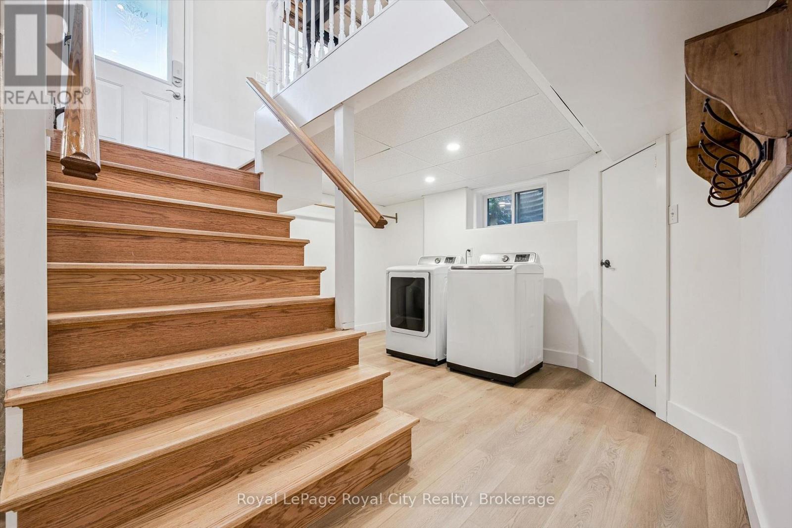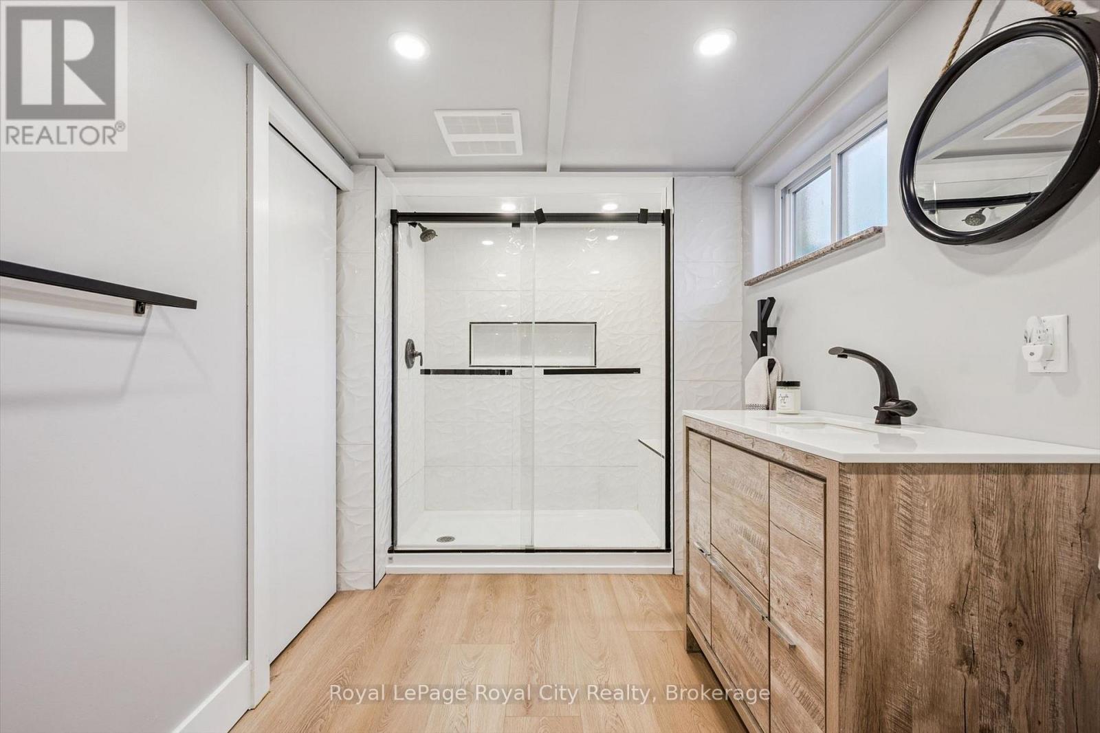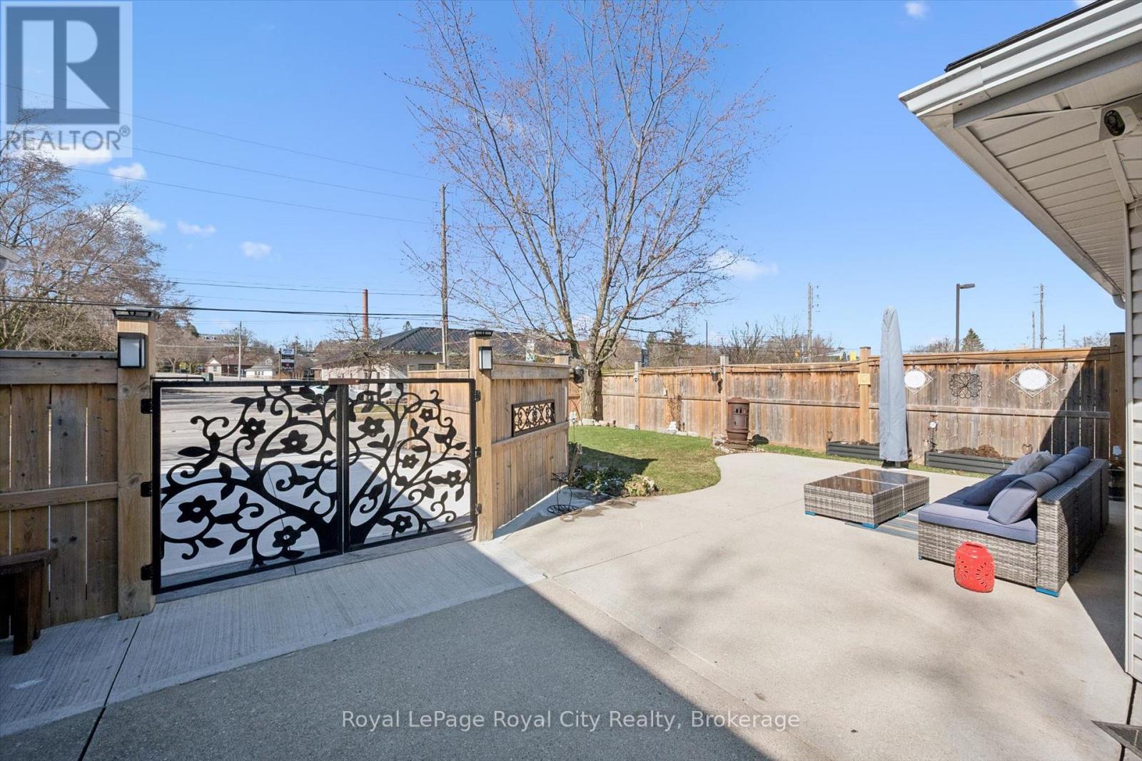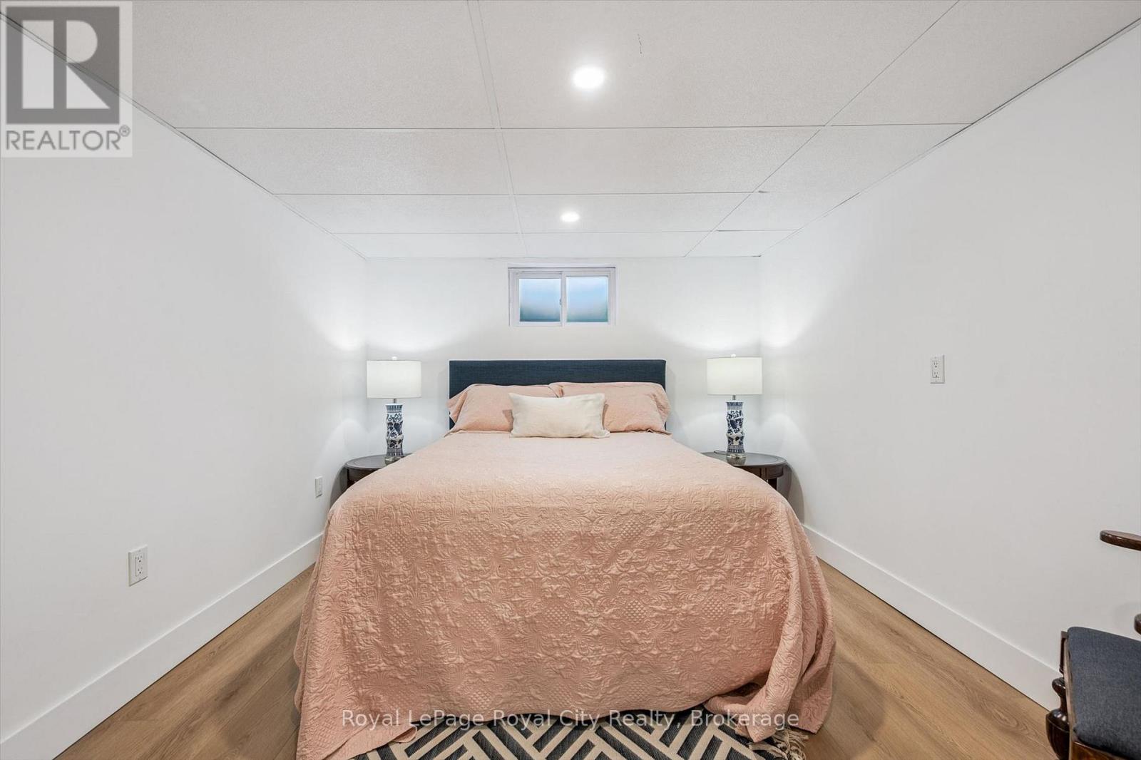 Welcome to this beautifully renovated bungalow, where modern updates meet comfortable family living in a prime location. Step inside to a bright and inviting living room and dining room, featuring elegant hardwood flooring and a large window that fills the space with natural light- perfect for both everyday living and entertaining.The functional kitchen offers ample cabinetry and workspace, making meal preparation a breeze. The main level is thoughtfully laid out with three spacious bedrooms and a well-appointed 4-piece bathroom, ideal for families or those seeking convenient one-level living. Downstairs, the fully finished basement expands your living space with stylish luxury vinyl flooring throughout. The cozy recreation room is anchored by a gas fireplace, creating the perfect setting for relaxing evenings. This level also includes two additional bedrooms and an updated 3-piece bathroom complete with a sleek glass shower- perfect for guests, extended family, or a home office setup. Outside, you will find a double wide concrete driveway, a private concrete patio, and a fully fenced backyard that is perfect for outdoor enjoyment. The detached workshop with hydro offers excellent potential for hobbies, storage, or creative use. Additional highlights include updated plumbing, a 200 Amp electrical service, and a furnace that is ~4 years old, providing added peace of mind. Located within walking distance to excellent schools, St. George's Park, downtown Guelph, Guelph General Hospital, and all essential amenities, this home truly combines style, function, and an unbeatable location. (id:64974)