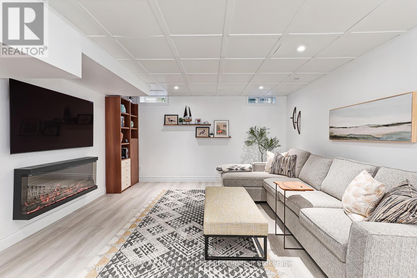 Chic & Coveted in Olde Towne Collingwood! Timeless Charm meets Modern Luxury in Prime Downtown Location~ Tastefully renovated detached brick home (2465 sf of finished living space ) in the heart of one of Collingwood's most sought-after neighbourhoods. Enjoy small-town charm with top-tier urban amenities and year-round walkability to downtown dining, boutique shopping, waterfront trails, and cultural attractions. This versatile bungaloft floor plan offers ideal MAIN-FLOOR living, perfect for a range of lifestyles. The chef's kitchen (appliances 2023) features a peninsula island, breakfast bar, and spacious dining area-ideal for both daily life and entertaining. The open-concept Great Room is flooded with natural light, featuring vaulted ceilings and a cozy gas fireplace. Outside, enjoy a private, south-facing low maintenance courtyard for al fresco dining or quiet relaxation. The covered front porch (west-facing) offers the perfect place to enjoy a glass of wine and the Georgian Bay breeze! Main-floor primary suite is a true retreat and includes a walk in closet and a spa-inspired ensuite with double vanity, walk-in shower, and elegant soaker tub. Upstairs, find two generous bedrooms, spacious loft area (office/library or flex Space) and a renovated 4-pc bath with heated floors and glass walk-in shower-ideal for guests or family. Step inside from the attached garage (19.62 X 10.93 ft ) into a stylish mudroom/laundry area and convenient powder room. The finished lower level offers a bright rec room (gym/craft room) with fireplace, plus a storage/workshop area. Meticulously updated throughout-just move in and enjoy! Additional Highlights~ A/C (2023), 3 Bathrooms Beautifully Renovated, Kitchen Backsplash, New Patio Door (2023) to Garden, Walk in Closet Enhancement (2026)~ Loft Bedroom, Designer Lighting, Washer/ Dryer (2020), Eave trough/ Gutter System (2022), Driveway Interlocking Stone, Custom Cabinets in Storage Room, Utility Sink in Storage Room. (id:64974)