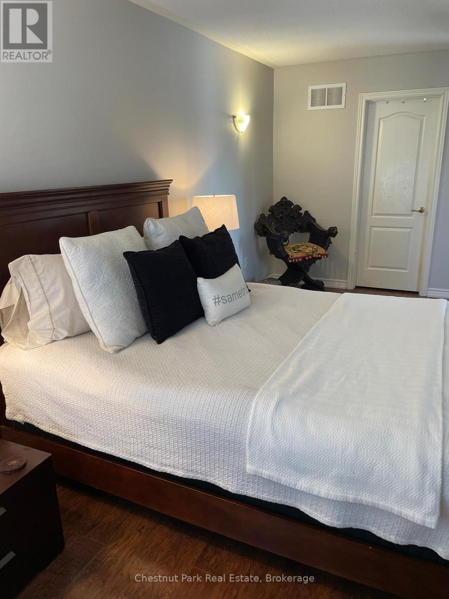LONG TERM FURNISHED RENTAL at Cranberry Quay. Just a short drive to Blue Mountain and local ski clubs. 3 bedroom and 3.5 bath townhouse located within walking and biking distance to all amenities. End unit townhouse featuring open concept main floor with gas fireplace and walk out to south facing deck. Upper level offers the primary bedroom with 5 piece ensuite plus a 2nd bedroom with 4 piece ensuite. Lower level walkout offers 3rd bedroom and 4 piece bath. Enjoy this active and vibrant community via the local trail system, Georgian Bay and Cranberry Golf Club. Just steps to Georgian Bay, Cranberry Marina and the PRIVATE COMMUNITY SALT WATER POOL. $3200 per month plus utilities depending upon length of rental term. SEASONAL RENTAL CONSIDERED - monthly rate will depend upon the length of the rental term. Available April 1, 2026. (id:64974)