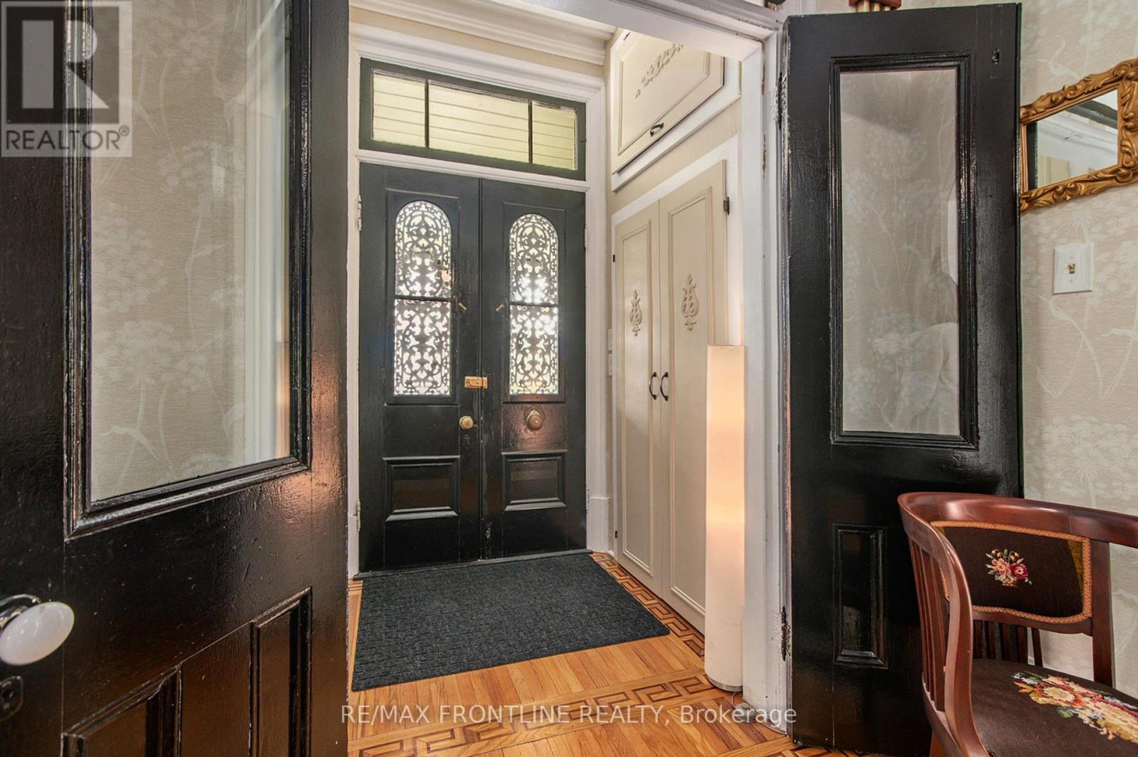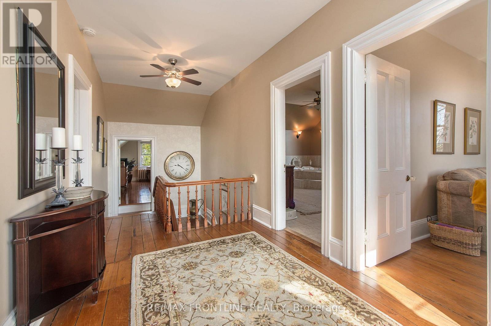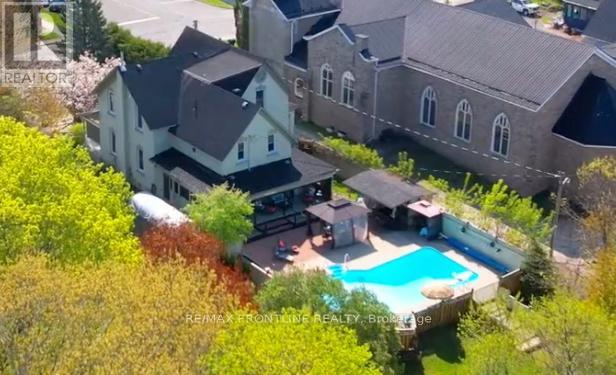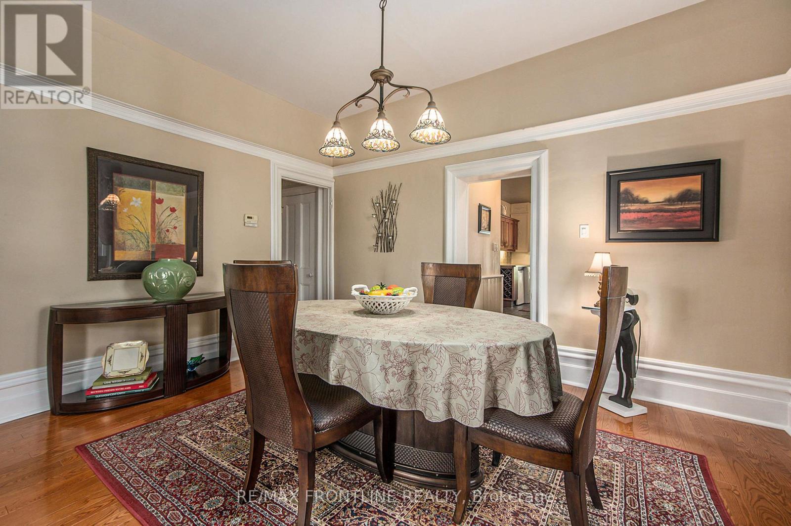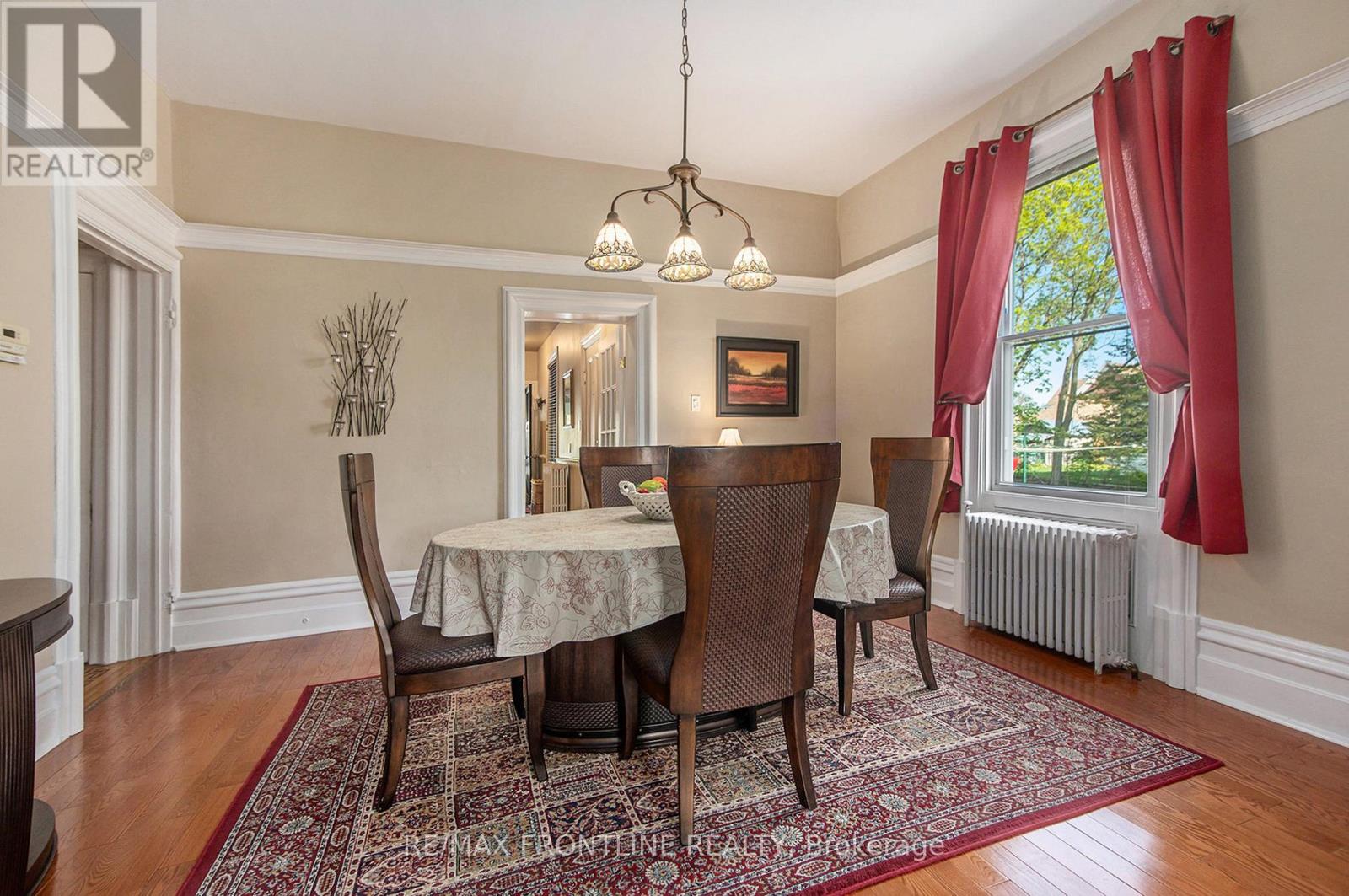 Victorian & First class. A rare find on about a 1/2 acre in town, a few minutes walk to the canal, all amenities and more. This home is set in the midst of award winning gardens with all entertainment essentials imaginable inside fenced and private grounds. This 4 bed, 2 bath home has been meticulously maintained and is also modernized for today's comforts. Enter the oversized foyer with formal living room, separate dining room, breakfast room, family room, laundry and powder room, all on main floor. From the formal dining room enjoy the 'Advent' season with lighting and choirs ringing out from St. John the Evangelist church. Kitchen is grand, a chef's delight. Cabinetry was custom designed with all S/S appliances, looks out to large verandah which opens to private grounds finished with interlock and a small area of lawn. Enjoy the beauty of nature or a symphony of bird songs while right at home. Welcome to a residence where Sir Wilfred Laurier (we are told) was once an invited guest. With new metal 1-car garage built 2025. (id:64974)