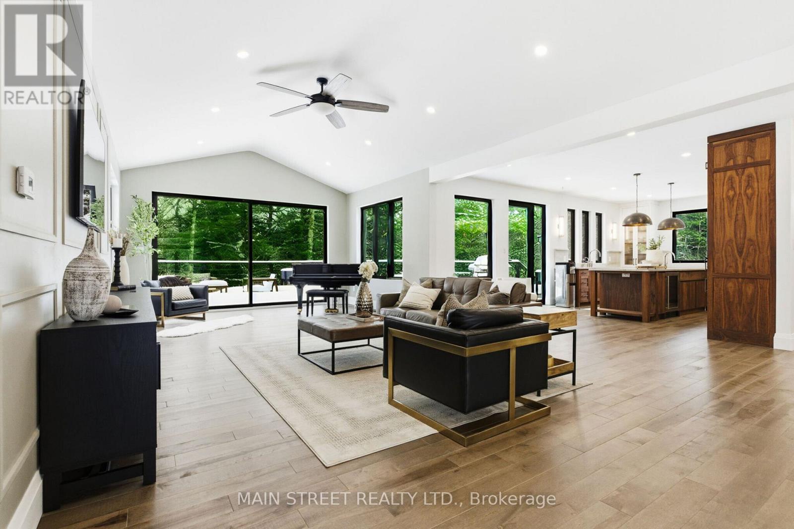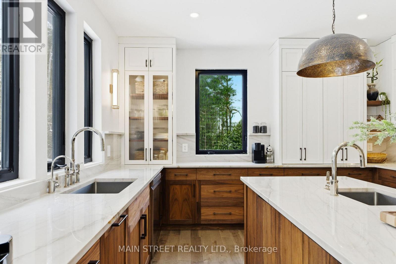 Welcome to 2 Gooseberry Lane, an exceptional turnkey estate offering modern luxury and remarkable flexibility, all on a coveted 1.5-acre lot in town. Completely reimagined inside and out, every surface of the home has been meticulously renovated. A large foyer introduces the vaulted living room with a custom "sliding glass wall" opening to the new deck. At the heart of the home is a custom kitchen, beautifully appointed with walnut cabinetry, quartzite countertops, an appliance garage, a professional-grade gas range, and handcrafted pendant lighting - 1 of 3 full kitchens thoughtfully integrated into the home. Hardwood flooring spans the main level, while the lower level features durable luxury laminate, complemented by two fireplaces that add warmth and ambiance. Every bathroom has been fully redesigned with elevated, modern finishes. The main floor master has a luxury ensuite and private deck. The home's versatile layout includes a beautifully finished in-law/guest suite, easily adaptable as a recreation or entertaining space. There is another separate entrance apartment featuring designer finishes - ideal for extended family or income potential. Two brand new laundry rooms enhance everyday convenience, alongside a top-of-the-line water treatment system. Outdoors, the meticulously transformed grounds are complete with a massive interlock patio and grand front staircase (2025), newly cleared trees, a sweeping lawn of fresh grass, and two new rear decks (2025). A new roof (2025) and new driveway (2025) complete this exceptional offering. Blending timeless craftsmanship with state-of-the-art upgrades in an unbeatable in-town location, 2 Gooseberry Lane delivers elevated living defined by comfort, elegance, and exceptional functionality. (id:64974)