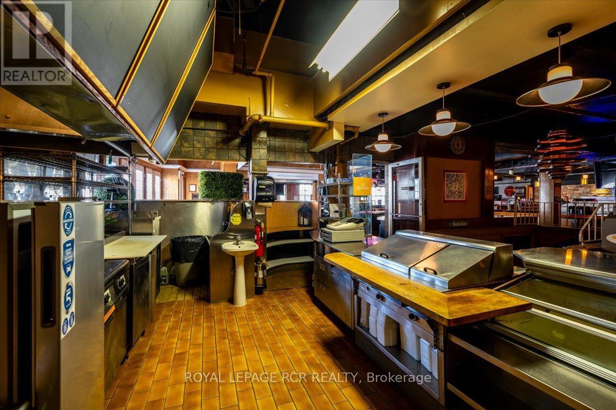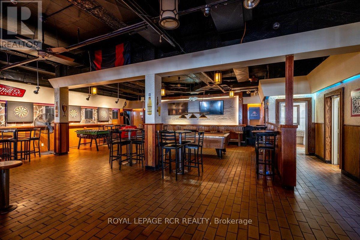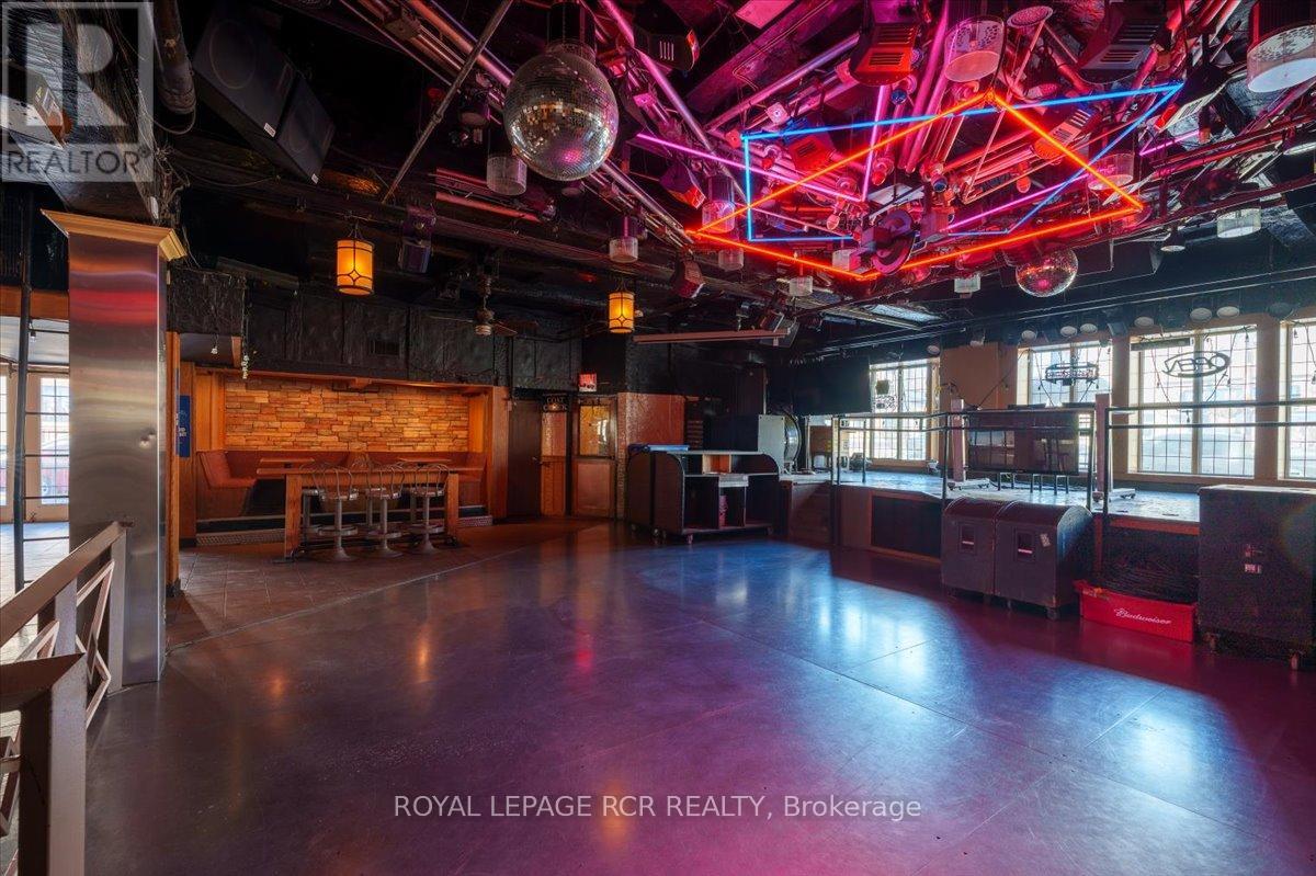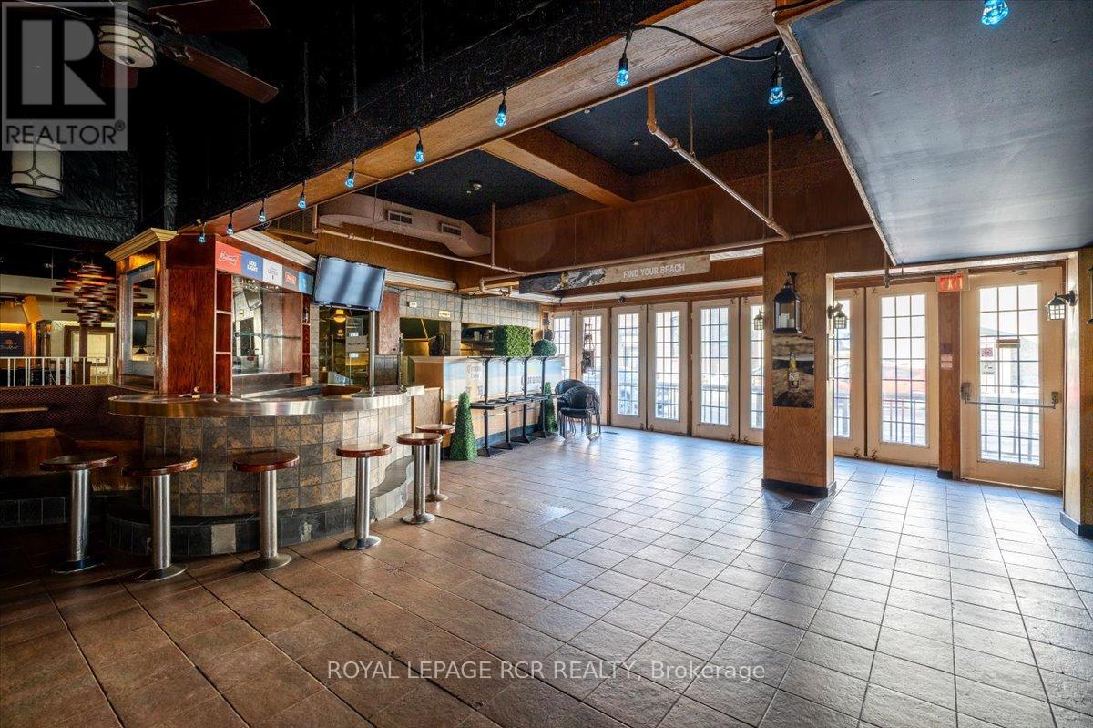 The Landmark building of Bradford! Located at the "Four Corners" centre of downtown. Bring your business to this booming municipality! Tremendous signage opportunities. Close to the future redevelopment site for the new Town Hall complex. Free municipal parking across the road. BONUS large drive-in door to indoor heated loading / storage area (or covered future patio!). 8,517 sq.ft. main floor fitted out as restaurant / entertainment space with full kitchen + coolers + freezers + multiple washrooms, PLUS 5,262 sq.ft. basement of finished space (bar, washrooms, kitchen, cooler, freezer, offices). Flexible zoning. Permitted uses include: Fitness Centre; Medical Office; Place of Worship; Event Centre; Restaurant; Retail Store; Private School; Specialty Food Store; Offices; Supermarket, or a trendy Marketeria with main level market with lower level cafeteria! (id:64974)